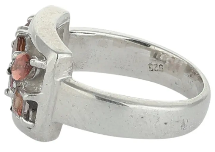 A striking and sophisticated piece of jewelry, the multicolored tourmaline stones set in a sterling silver ring give your finger a splash of color and refinement. This sterling silver ring is the ideal example of how to seamlessly blend current design elements with a splash of color and refinement. Acknowledge the unique beauty of the multicolored tourmaline stones that have been skillfully set in sterling silver to give your outfit more flair and refinement.
