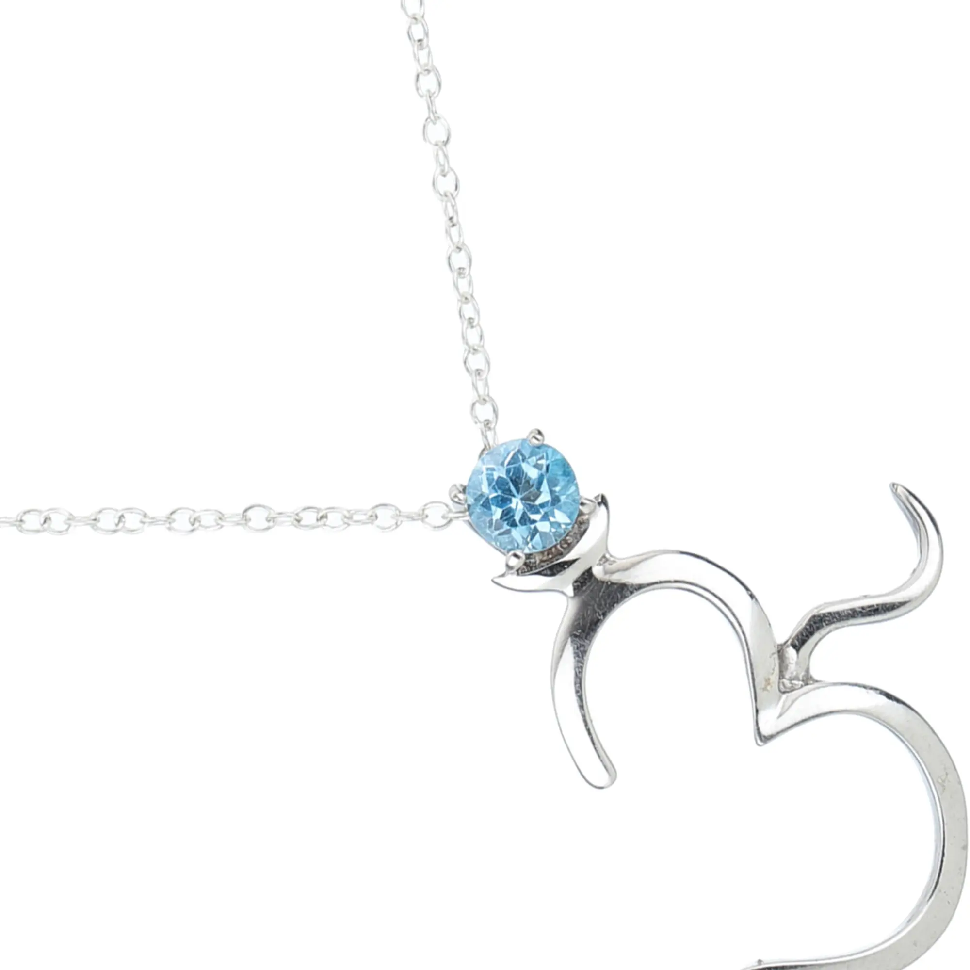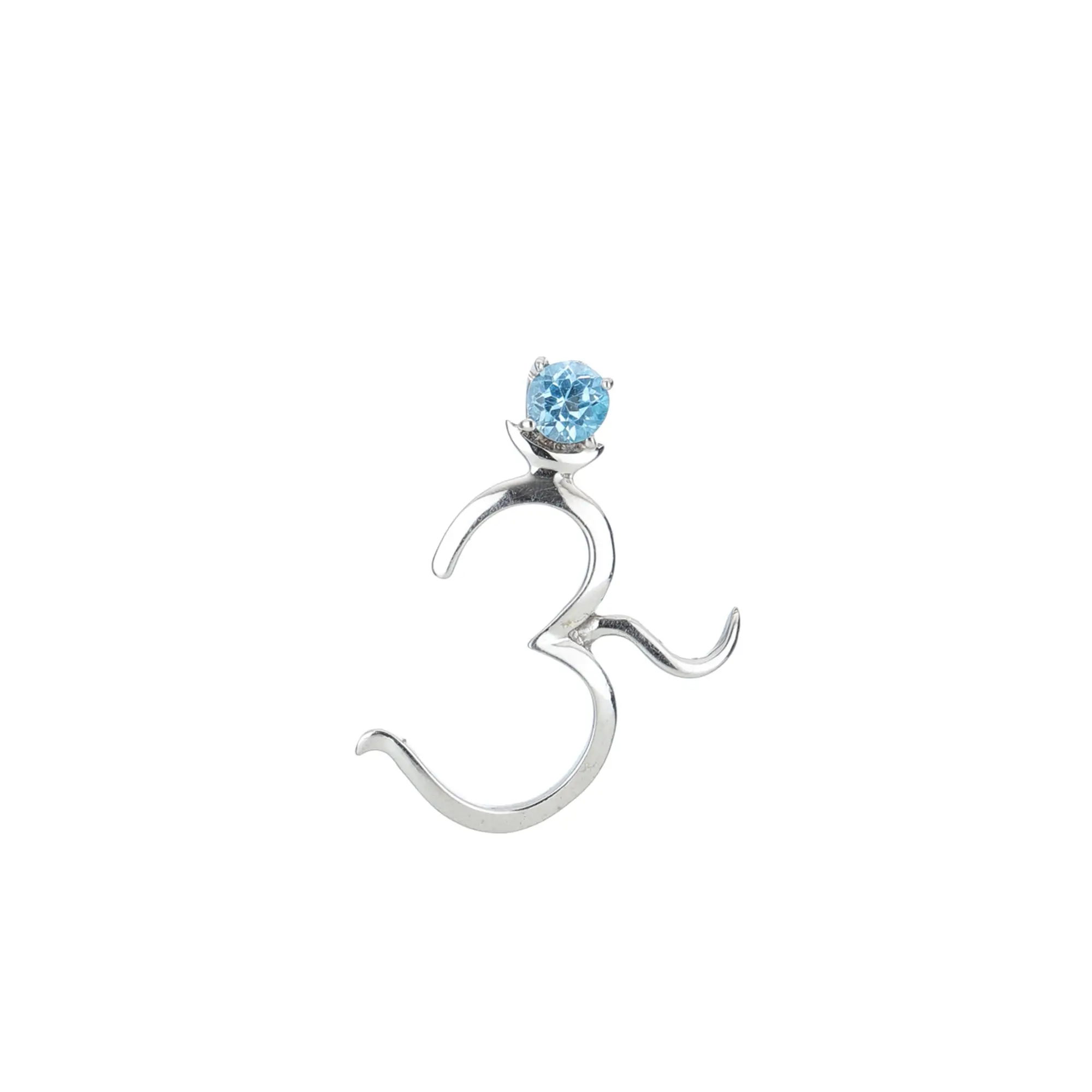 Adding a touch of tranquil beauty, a vibrant blue topaz gemstone is nestled atop the Om symbol. The gemstone's brilliant sparkle catches the light with every movement, creating a subtle yet eye-catching shimmer. Blue topaz is known for its calming and soothing properties, making this pendant not only a beautiful accessory but also a meaningful talisman for peace and clarity.