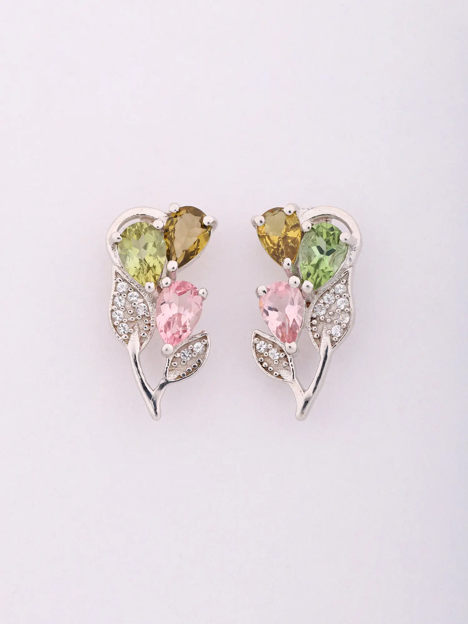 Tourmaline Floral Sterling Silver Stud Earrings - Multi-Color
