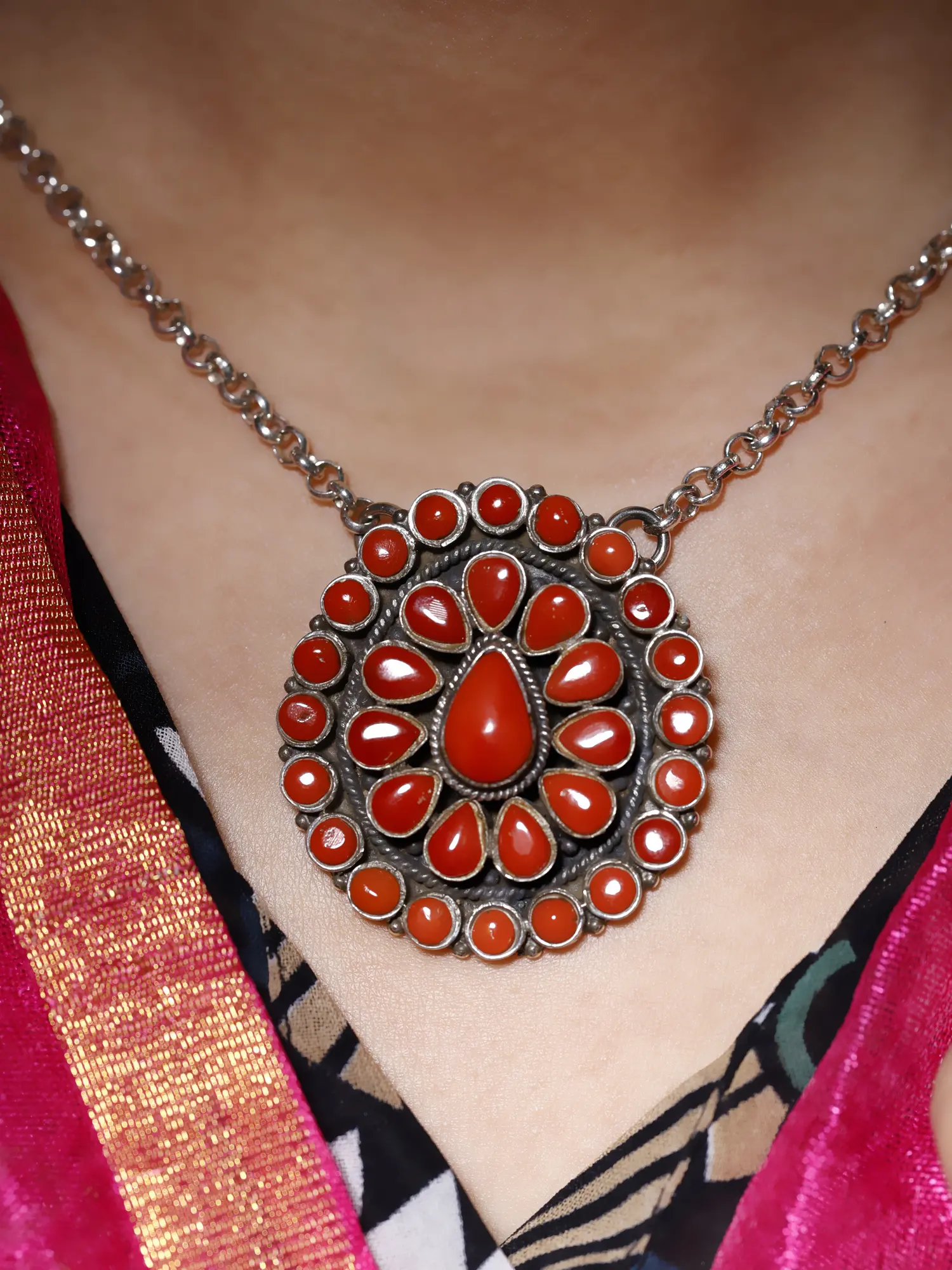 Sterling Silver Pendant with Round Cut Coral | Sterling Silver Jewelry