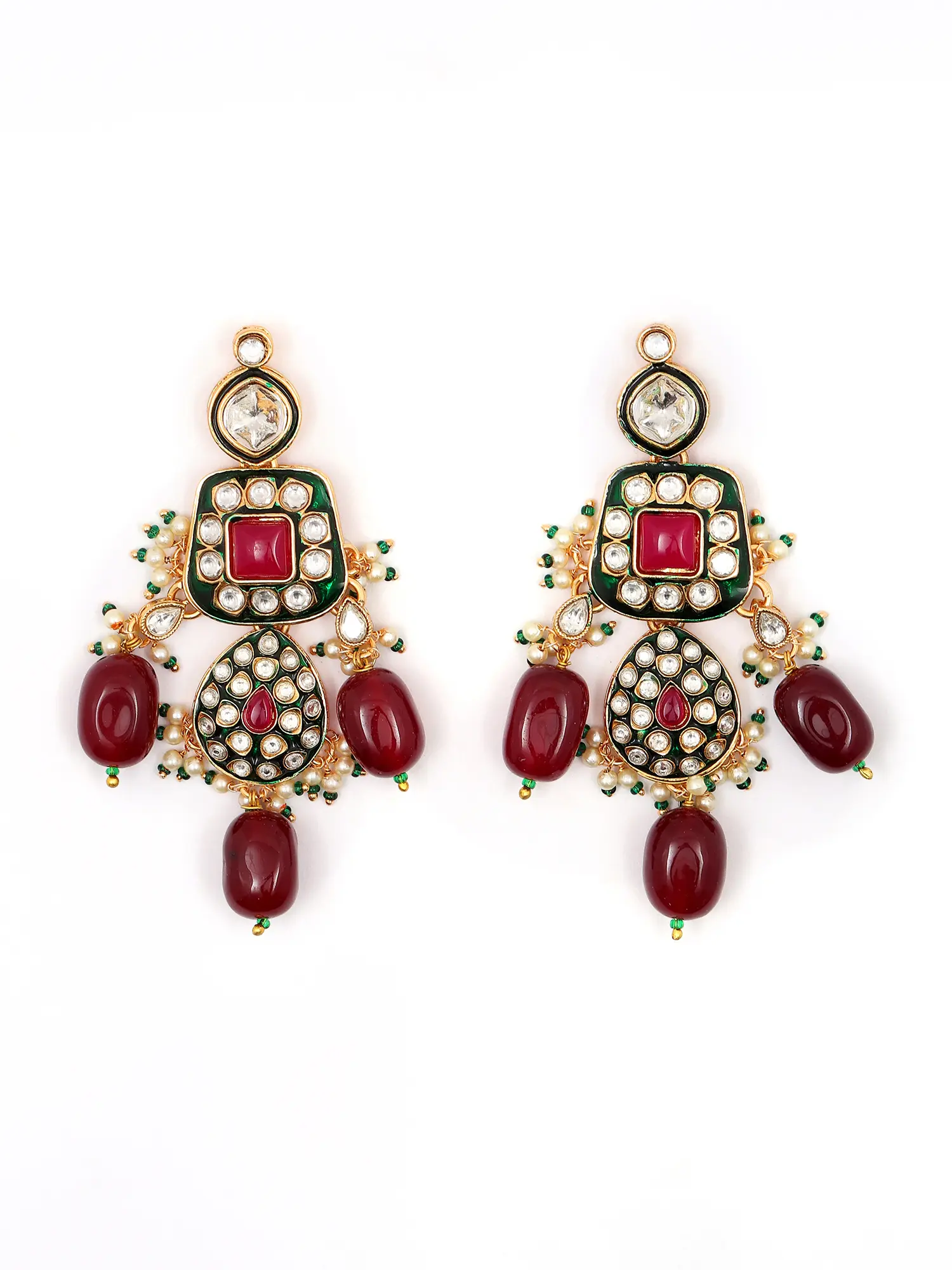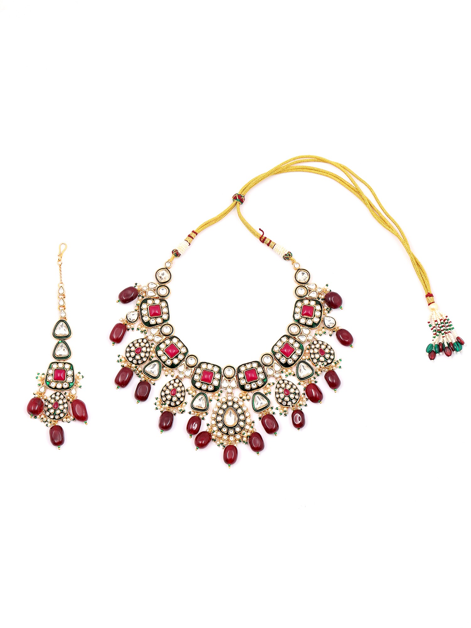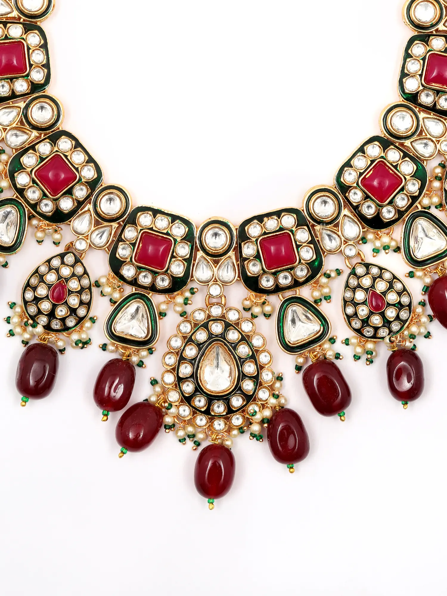 Designer Stone Studded Embellished Necklace Set with Earrings
