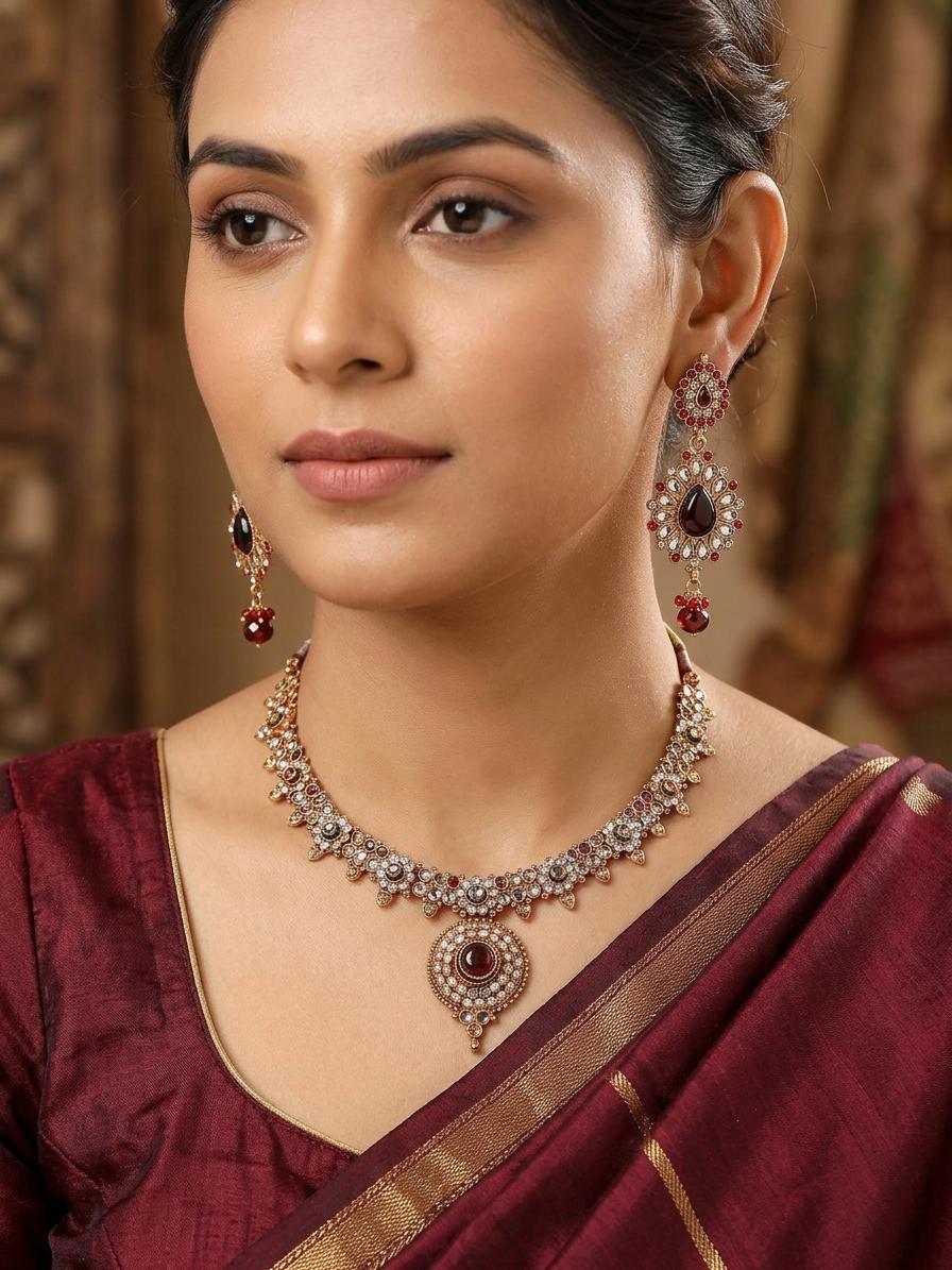 Elevate your style with our Stone Designer Necklace with Earring Set, a striking ensemble that adds a touch of glamor to your look. The intricately designed necklace features carefully placed stones, creating a captivating and elegant piece. The coordinating earrings complete the set, enhancing your overall ensemble with sophistication. Grace the allure of the stones, each contributing to the refined beauty of this stunning necklace and earring set.