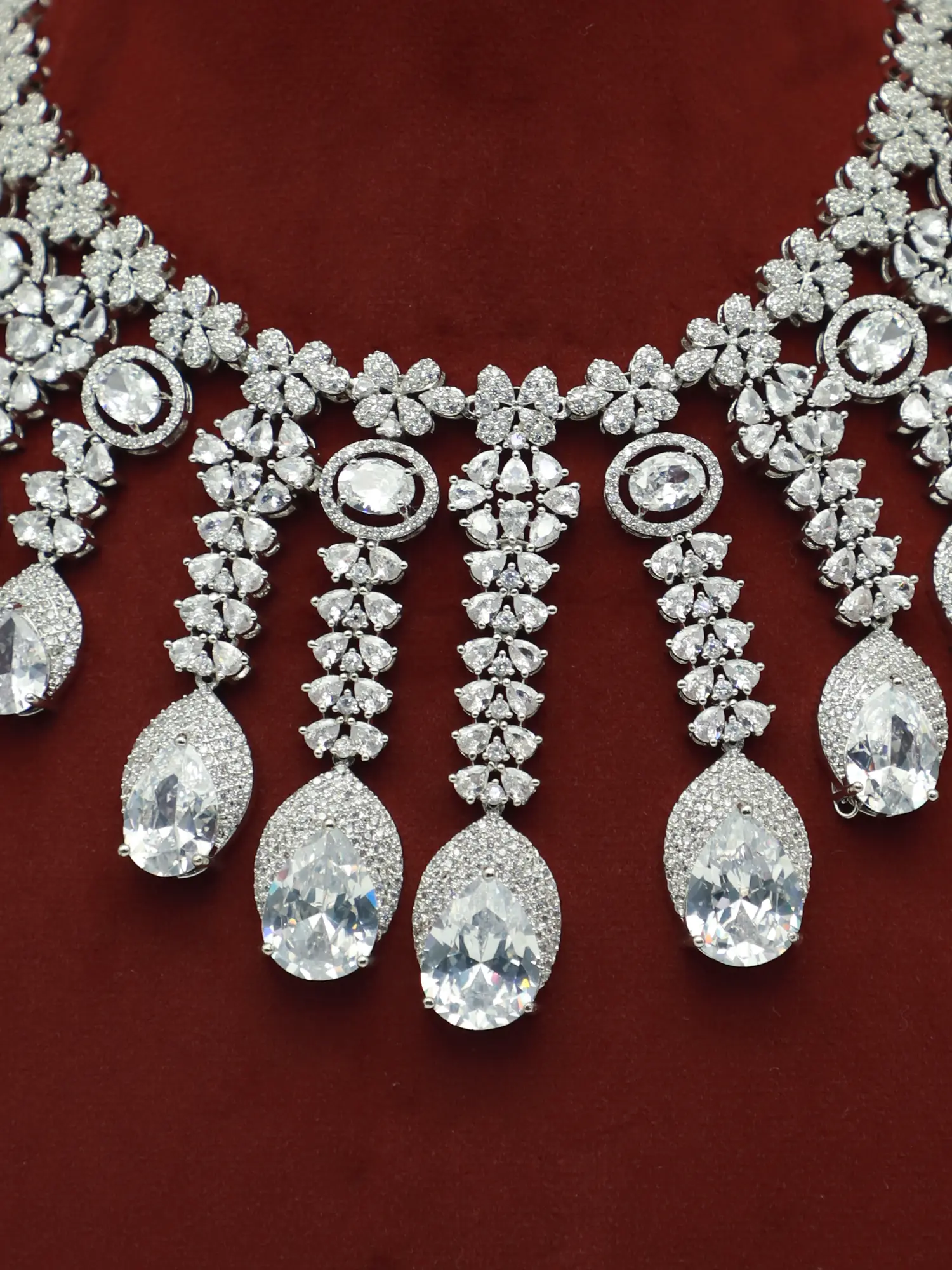 Stone Studded American Diamond Attractive Necklace With Matching Earrings