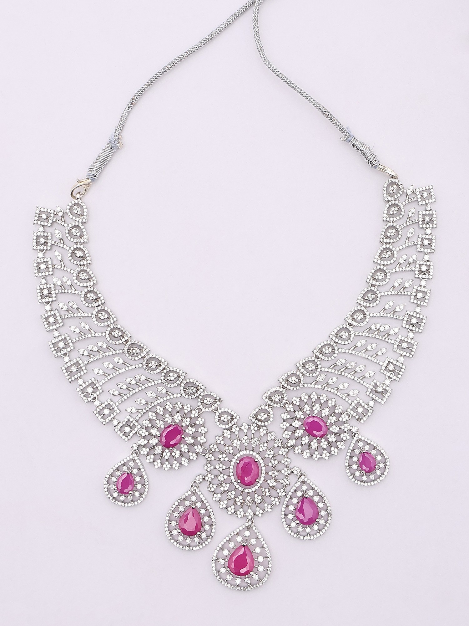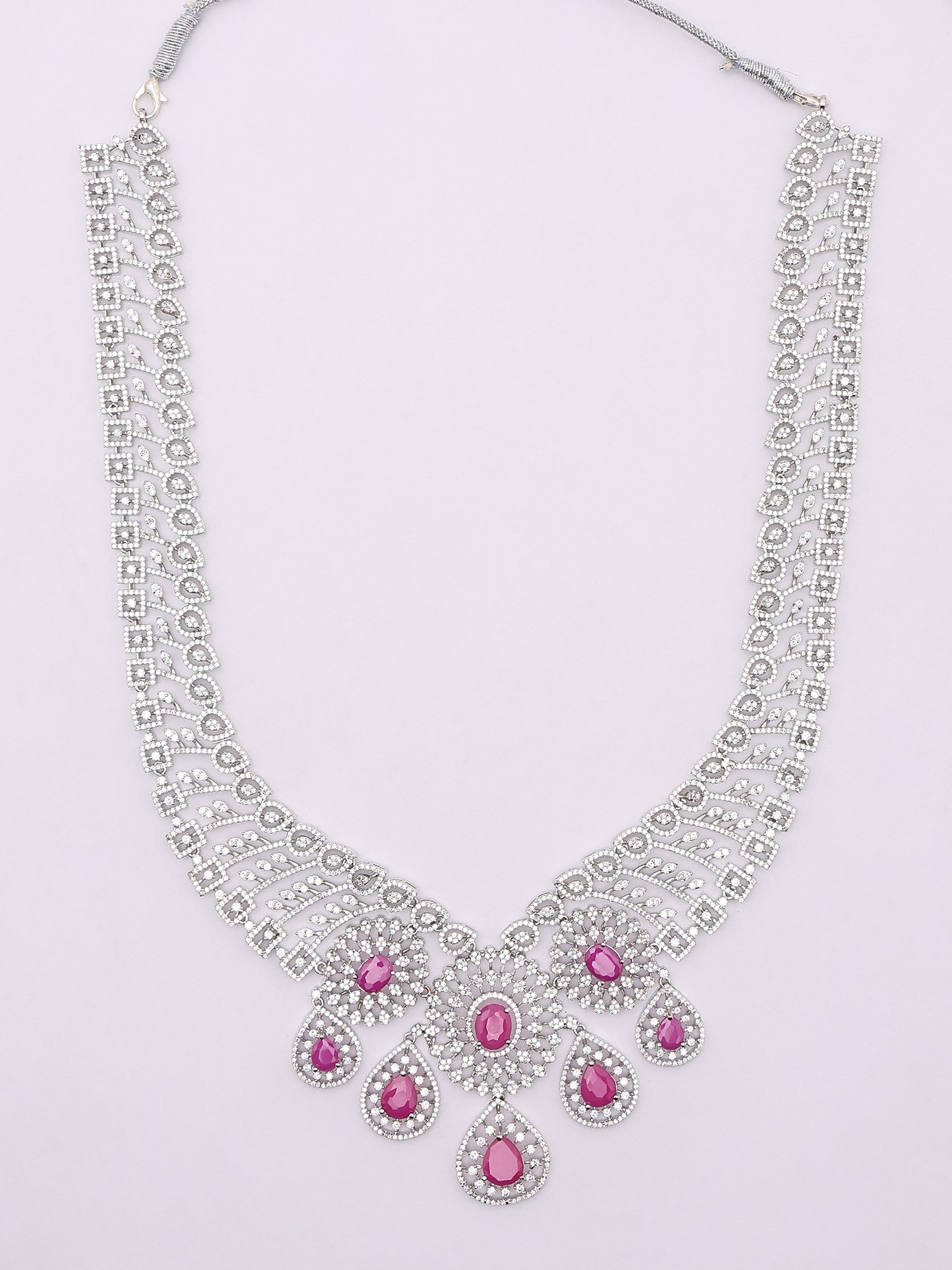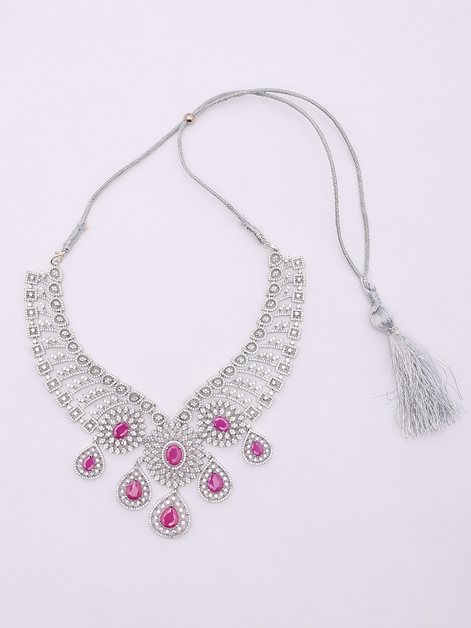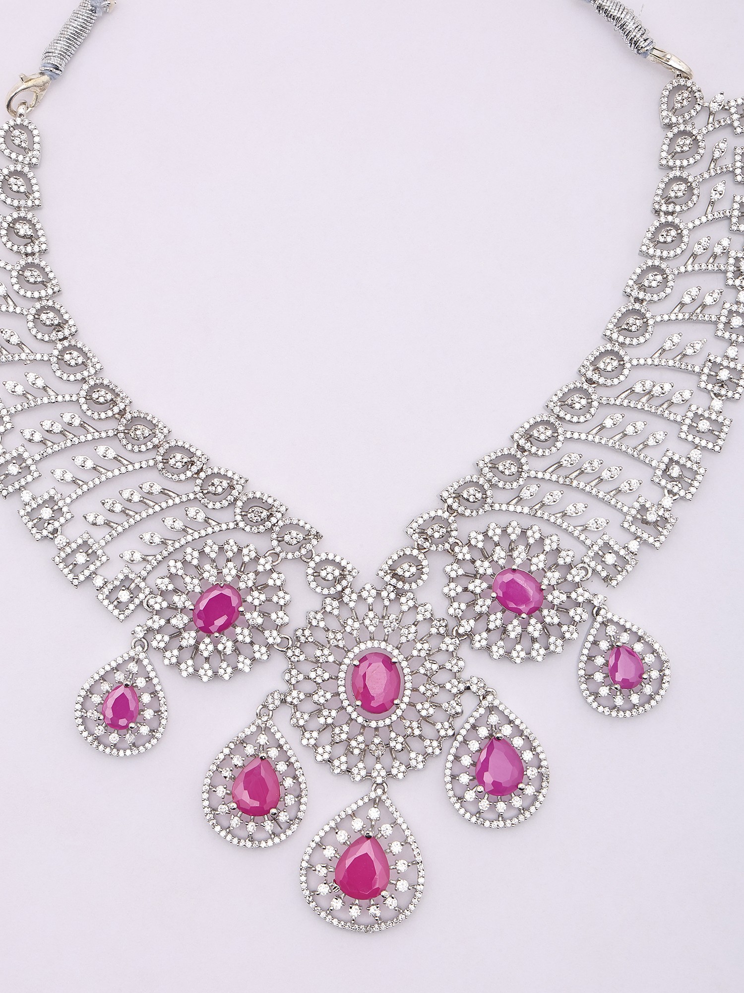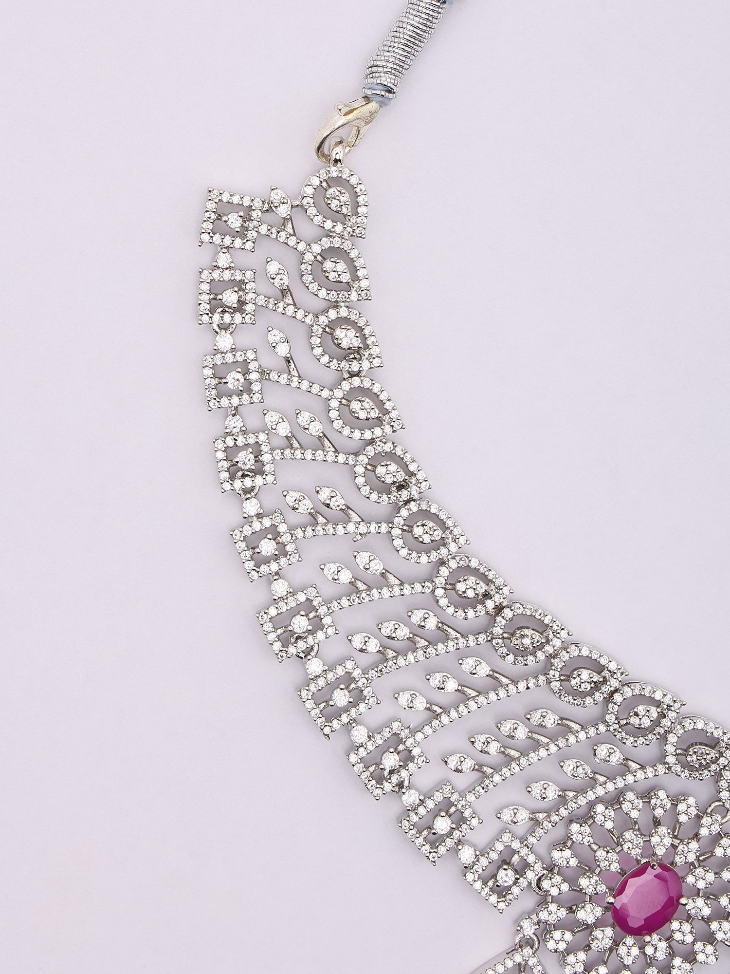 Stone Studded American Diamond Necklace Set with Matching Earrings