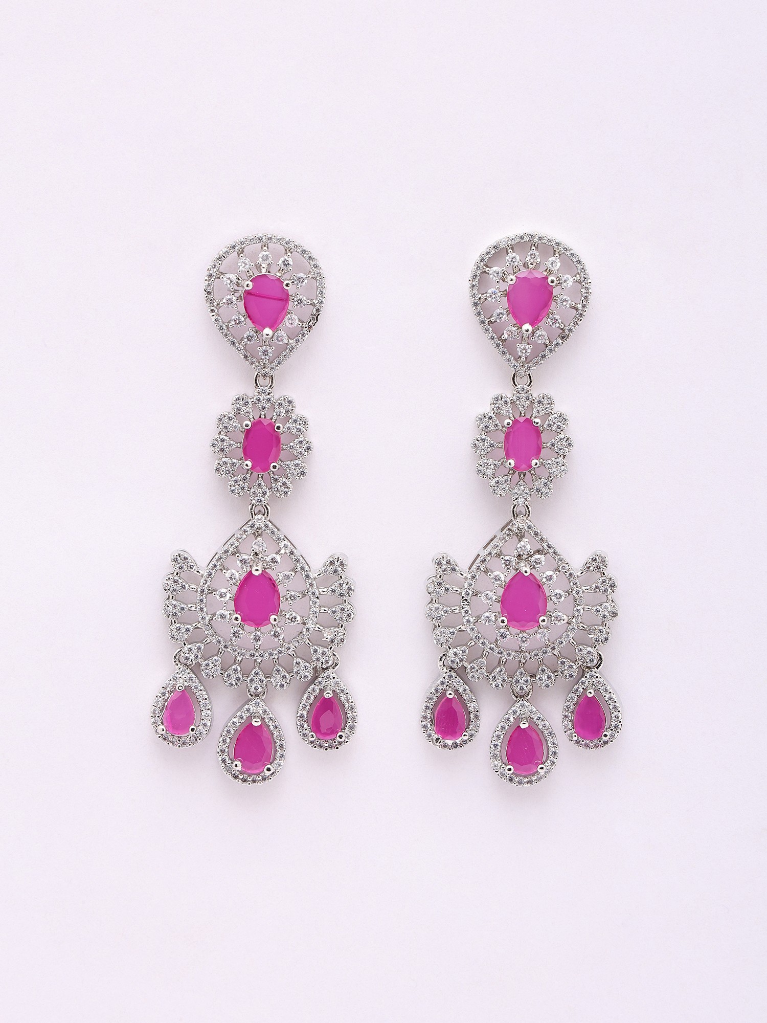 Sparkling Diamond Necklace Set with Blush Pink Stone Drop Earrings