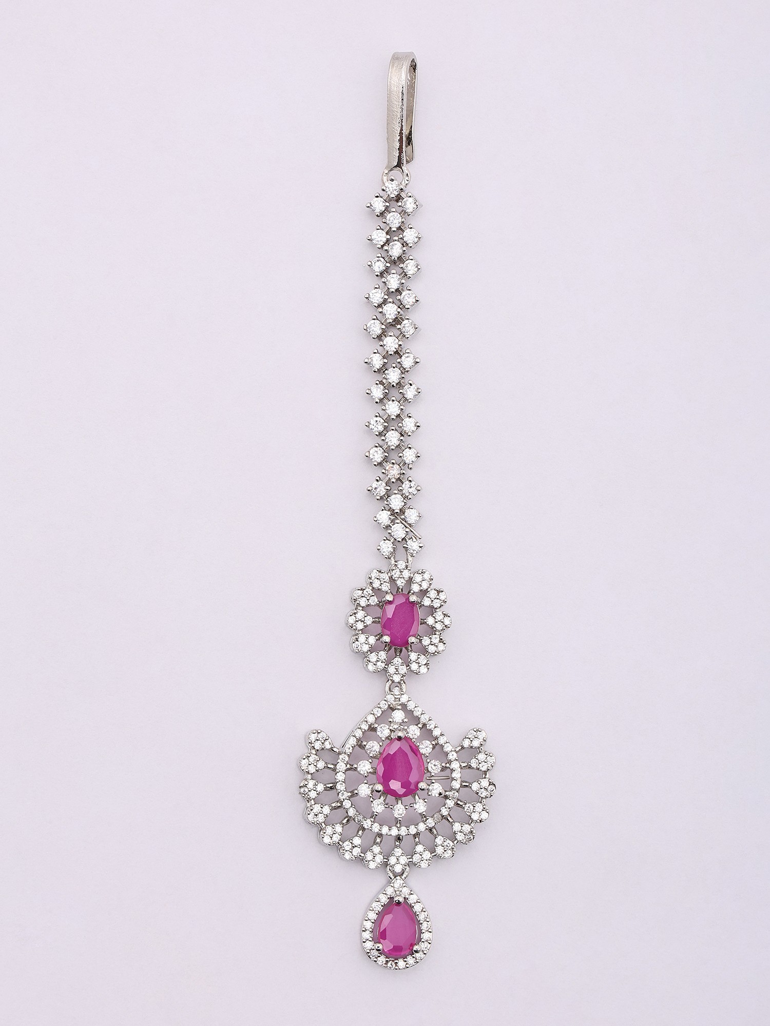 Stone Studded American Diamond Bridal Necklace Set with Matching Earrings and Maang Tikka