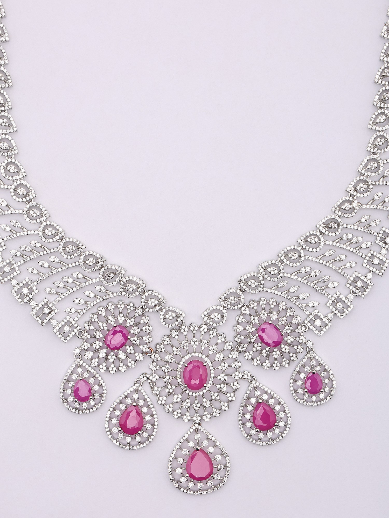 Floral Design Multi Strand American Diamond Bridal Necklace Set