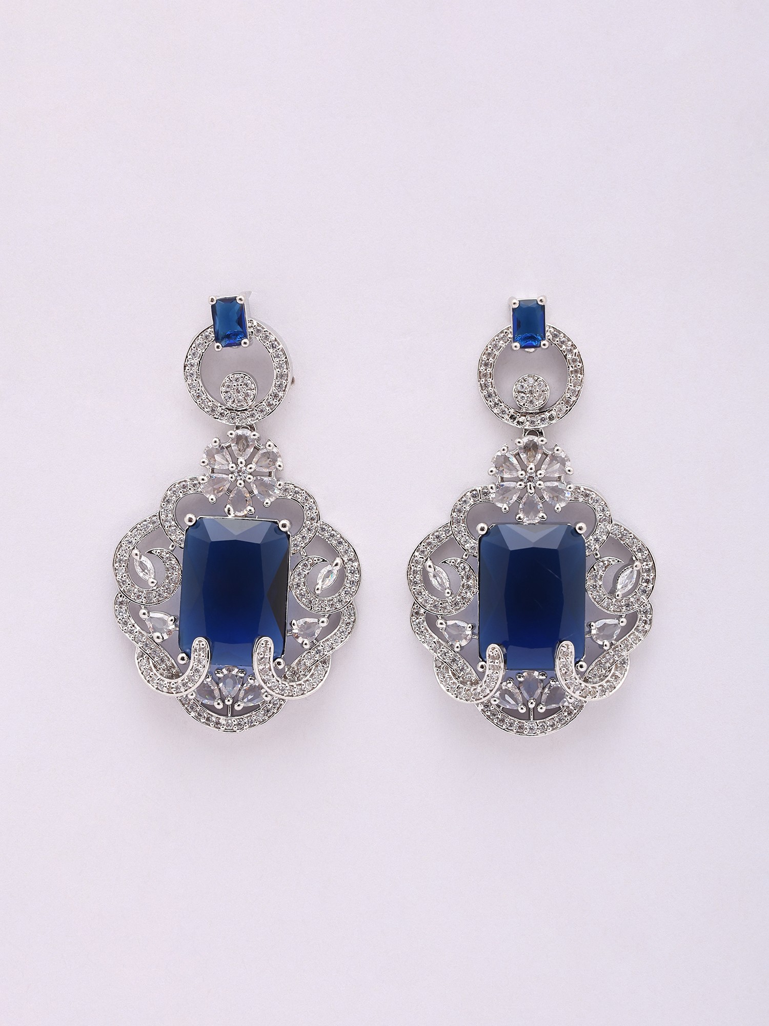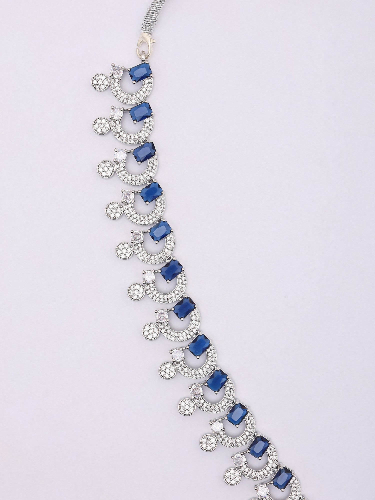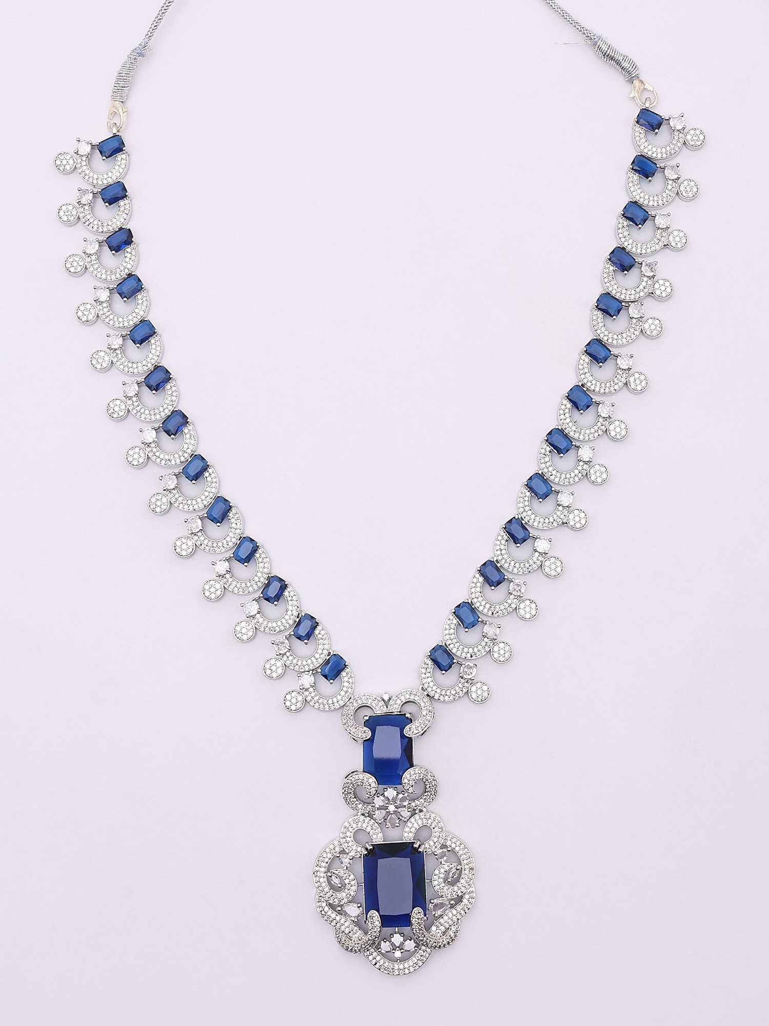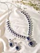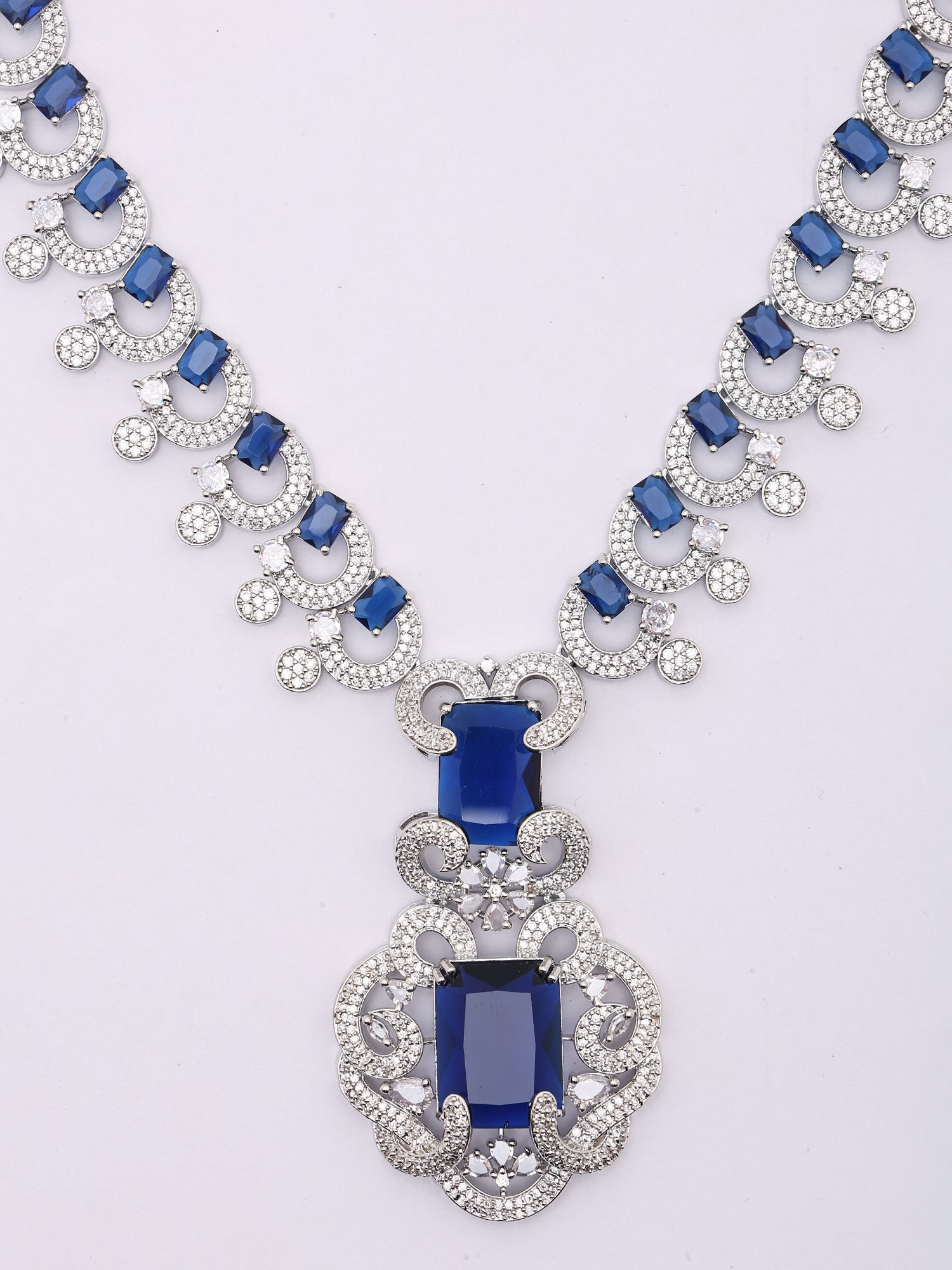 Sparkling CZ and Blue Sapphire Necklace Set with Drop Earrings
