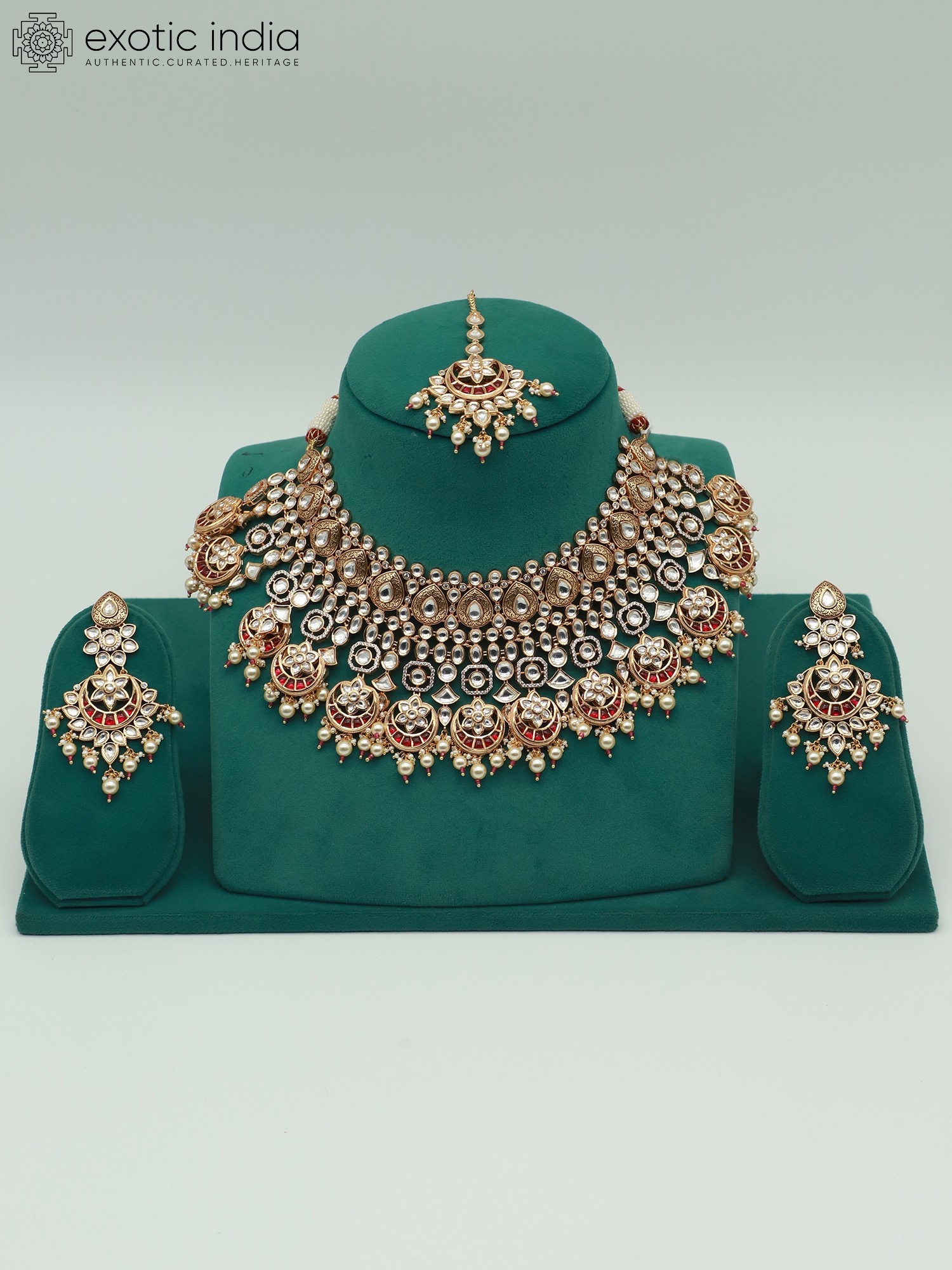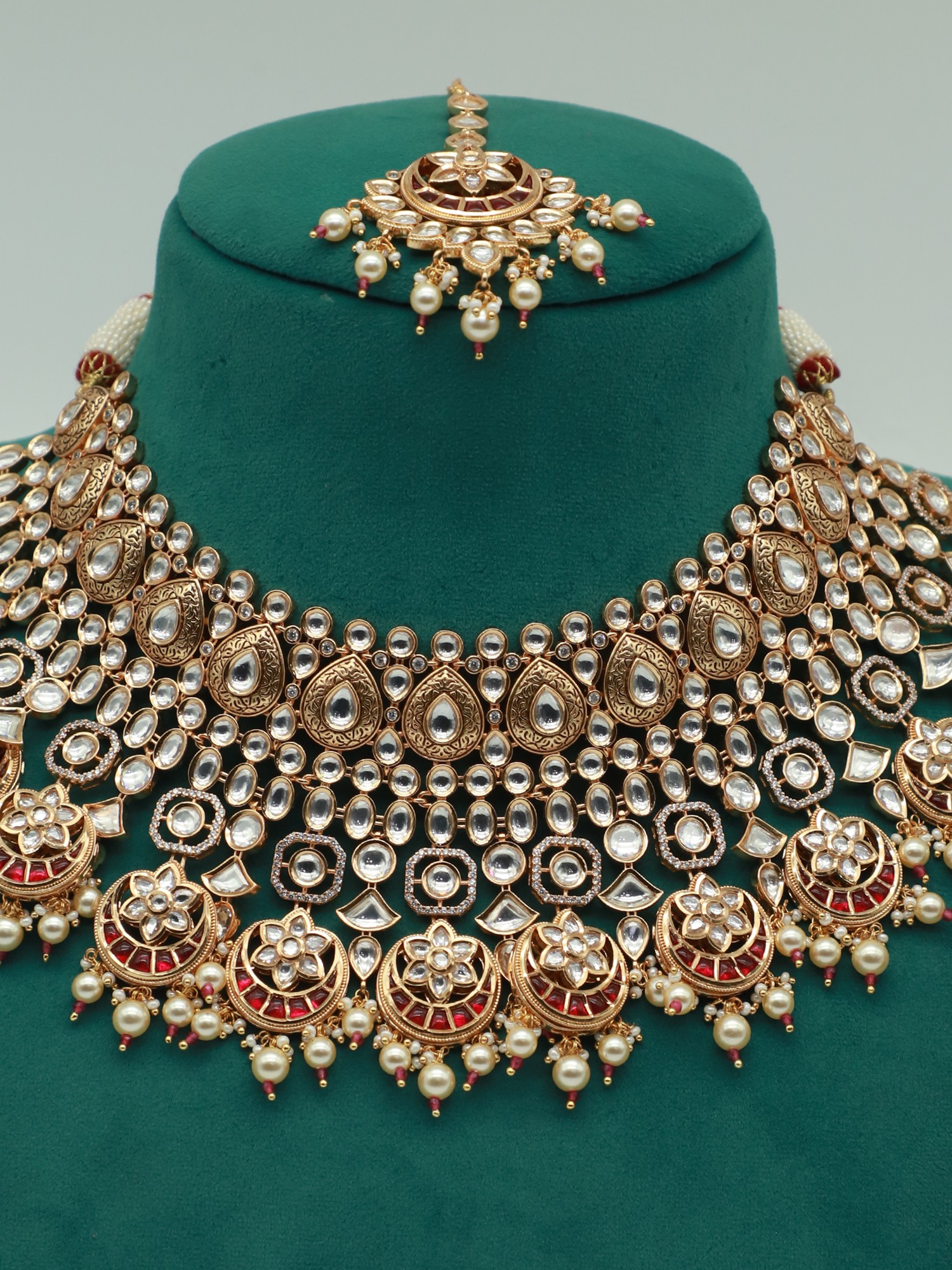 Necklace: 16.2 inch Length Earrings 2.06 inch Height x 1.1 inch Width Mangtika: 5 inch Length