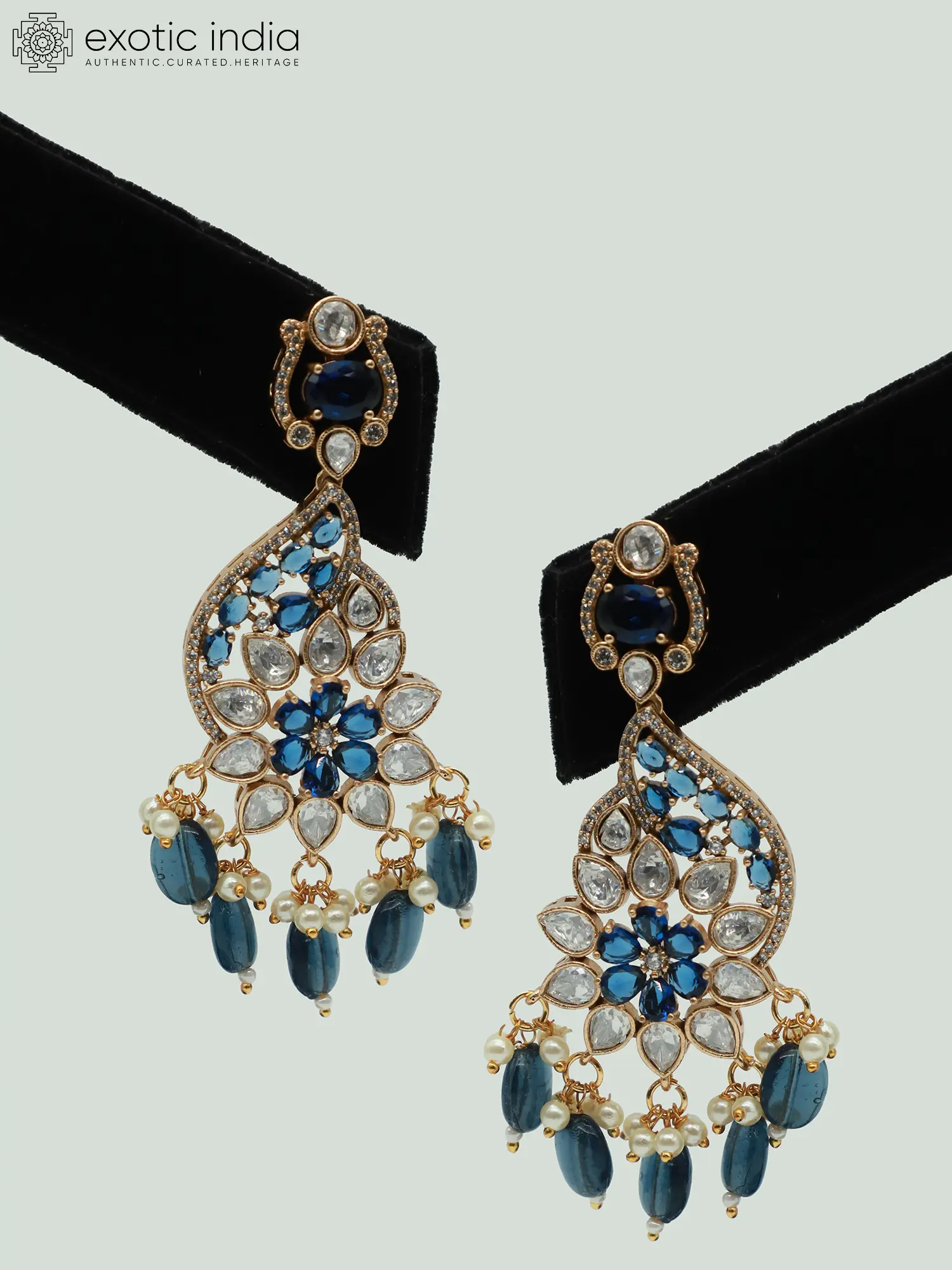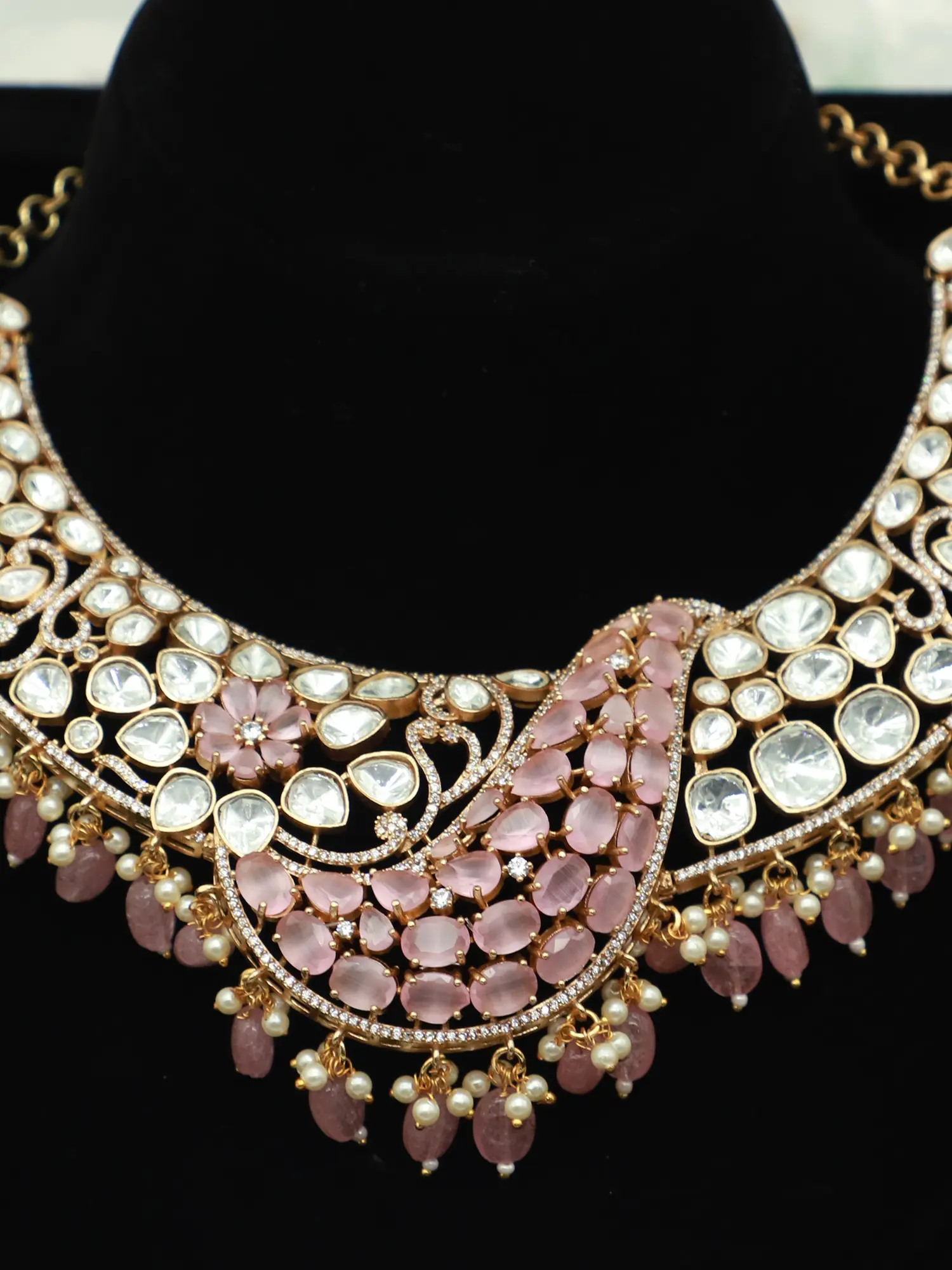 Attractive Moissanite Kundan With Matt Polish Stone Studded Necklace With Beaded Earrings