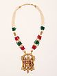 Red and White Stone Studded Necklace Set with Earrings and Mangtika