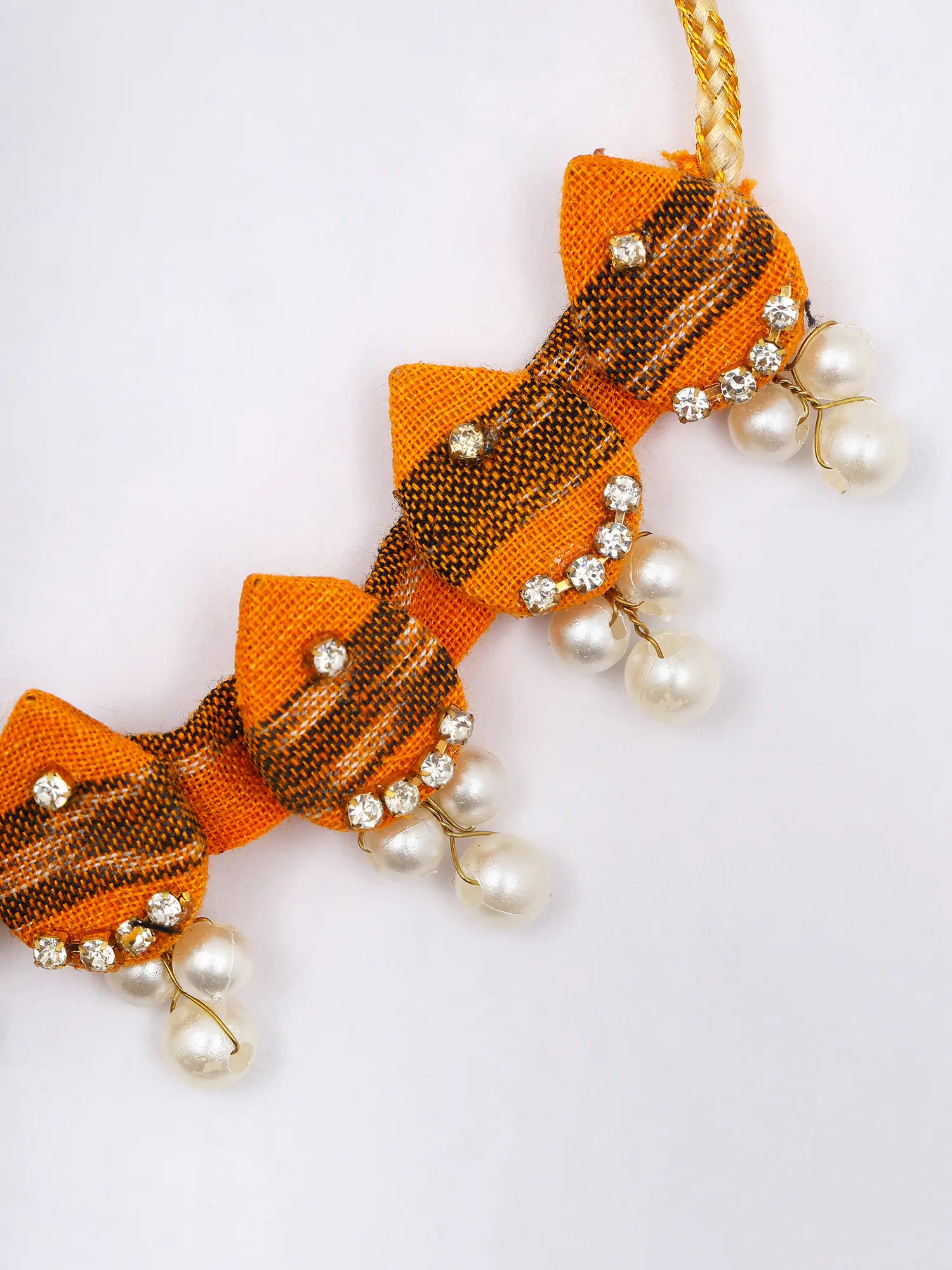 Elevate your style with this breathtaking choker necklace and earrings set, a true testament to handcrafted artistry. This piece seamlessly blends traditional Sambalpuri fabric with contemporary design, creating a unique and captivating accessory perfect for adding a touch of elegance to any occasion. The rich, deep blue of the Sambalpuri fabric is beautifully accented by delicate gold detailing and lustrous pearls, creating a mesmerizing play of textures and light. The handcrafted nature of this piece ensures each set is unique, a reflection of the rich cultural heritage of Sambalpuri weaving.