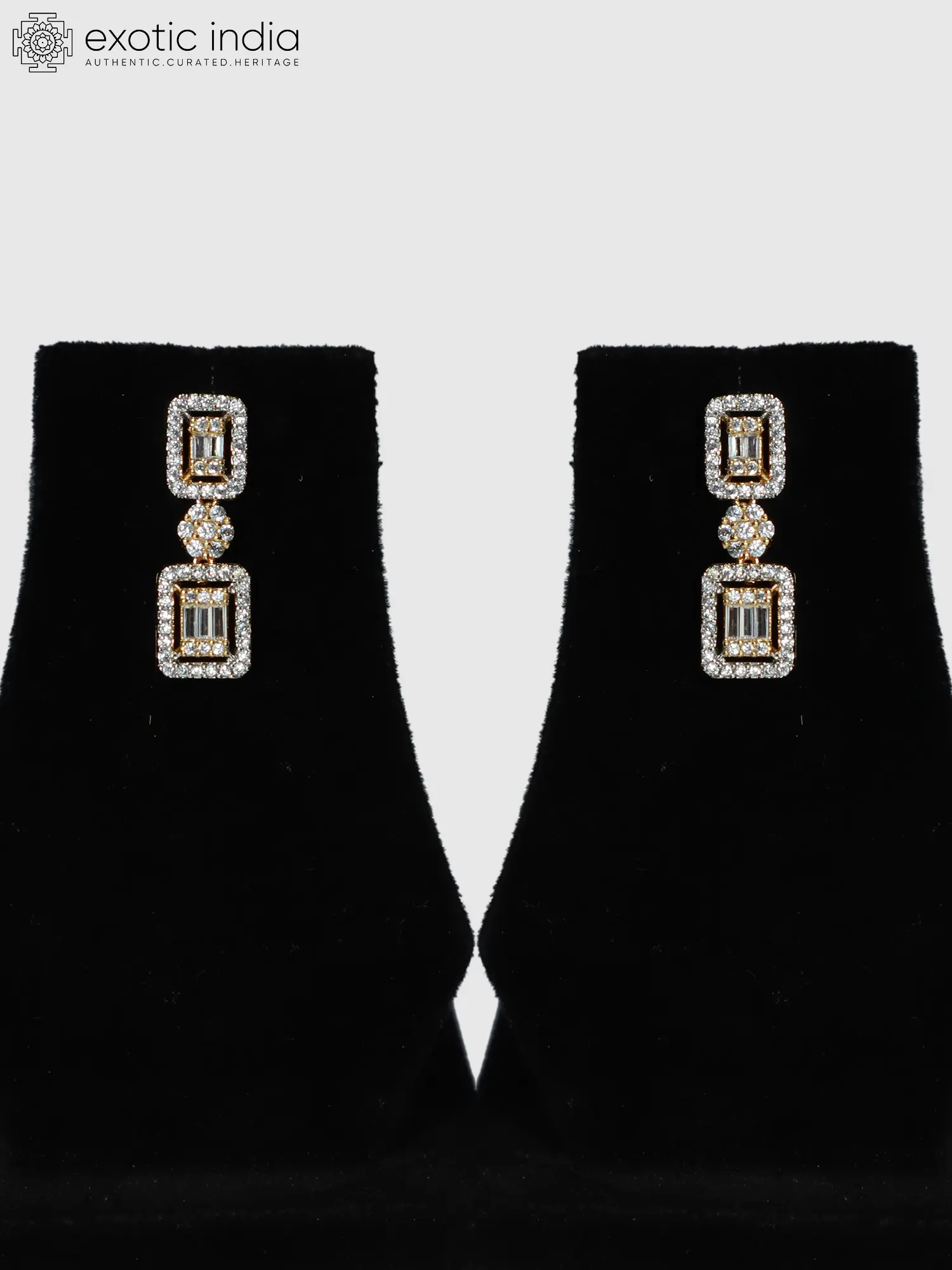 Gold-Tone Stone Studded Elegant American Diamond Necklace Set With Earrings