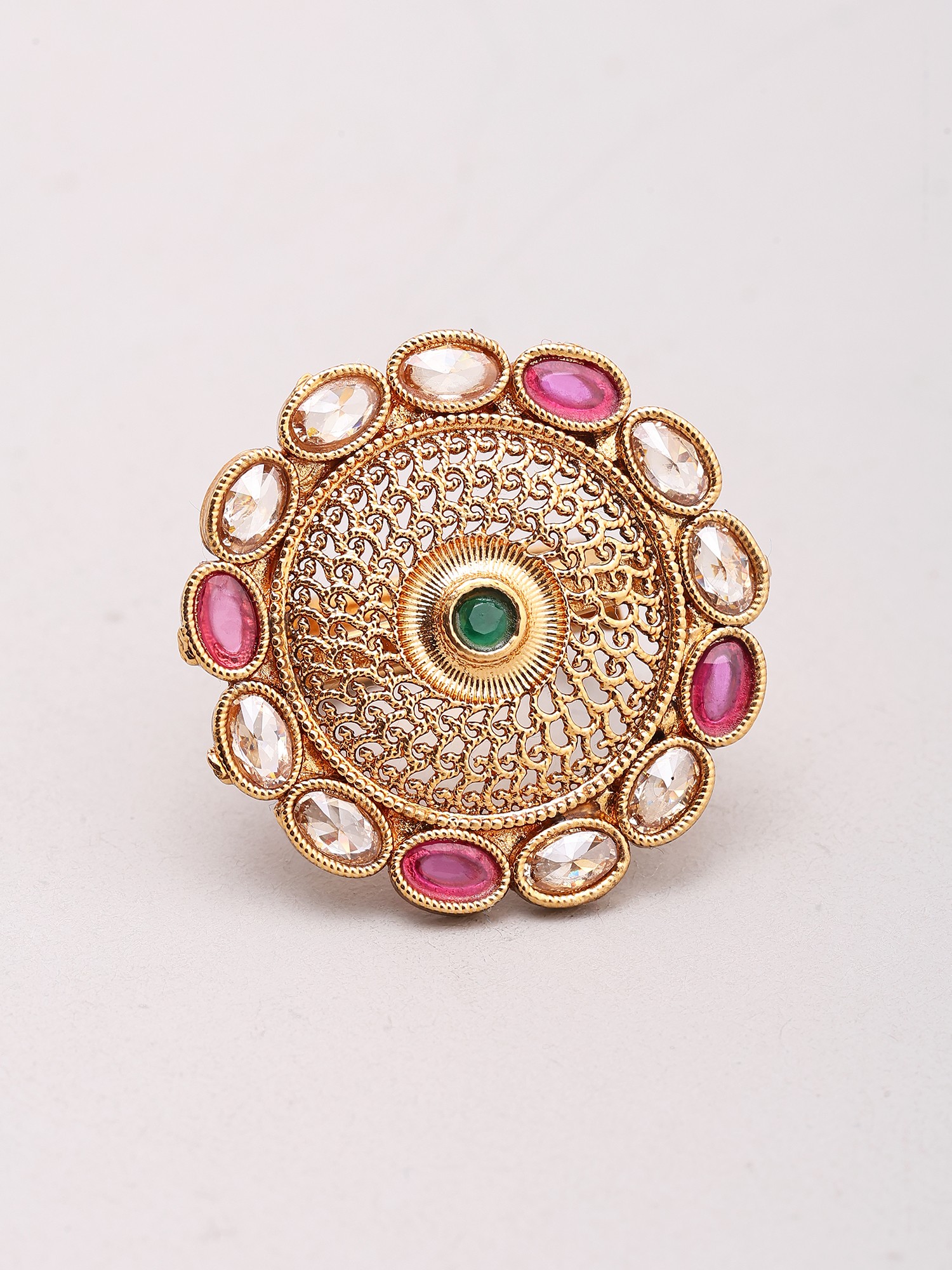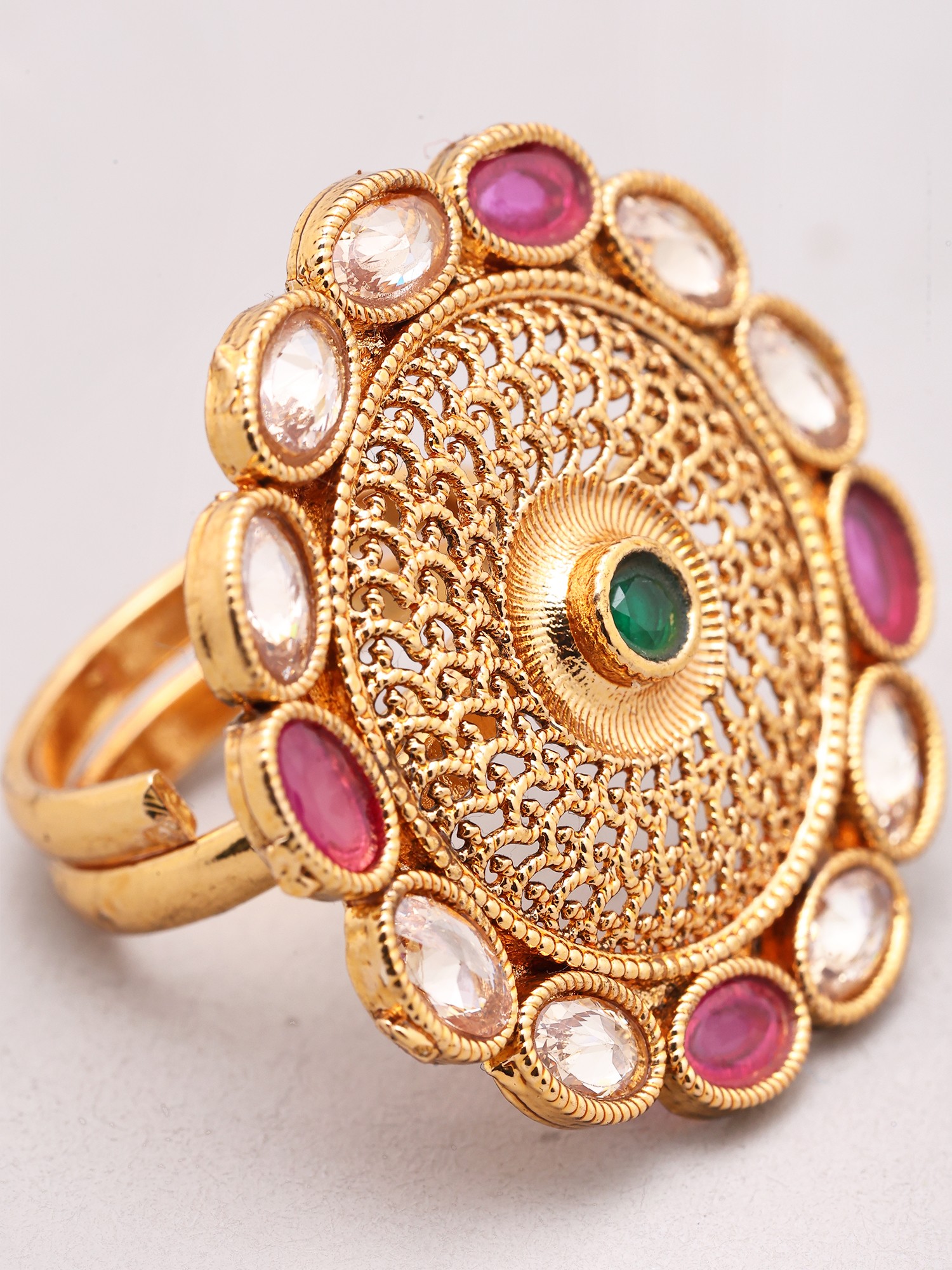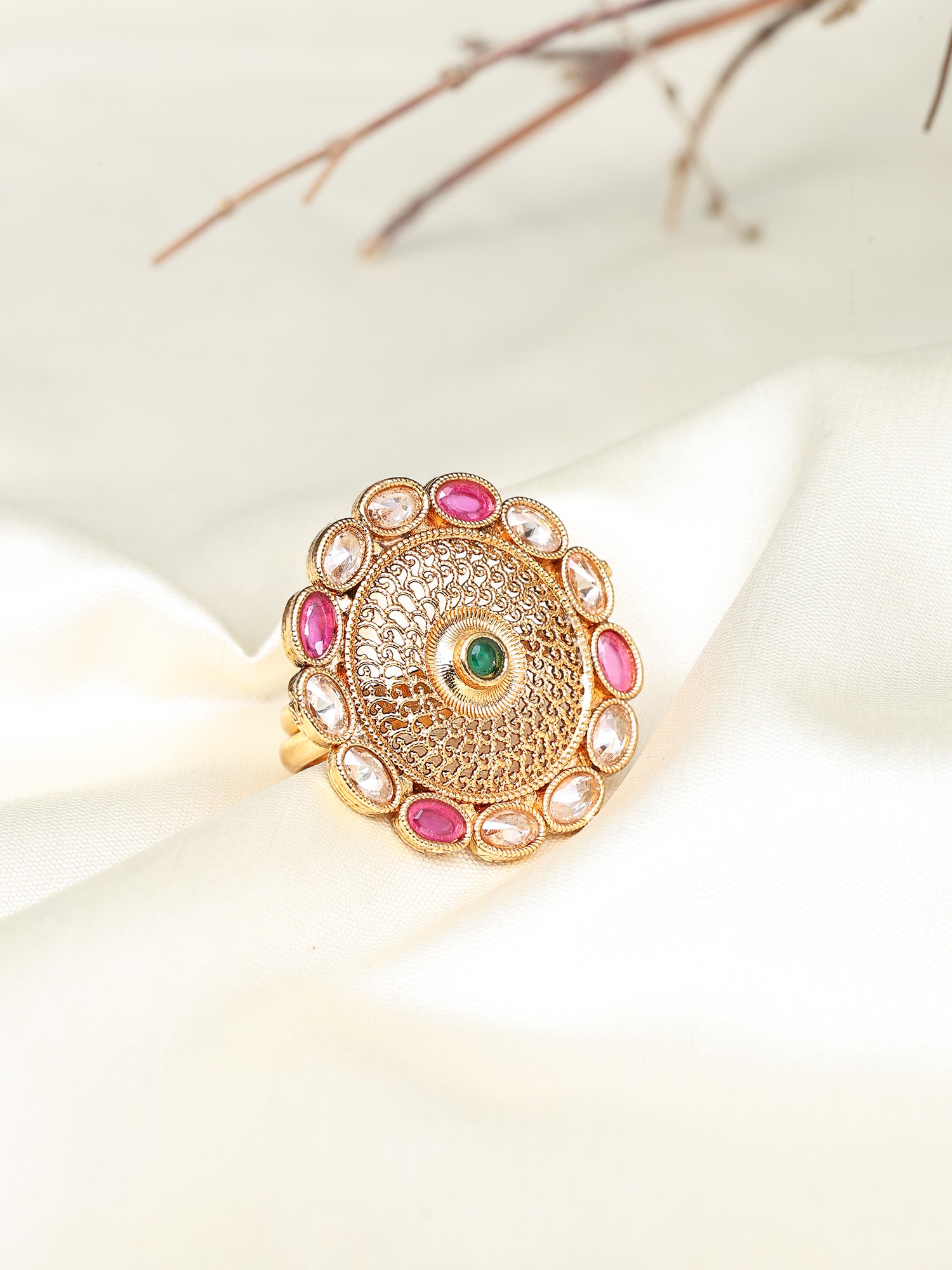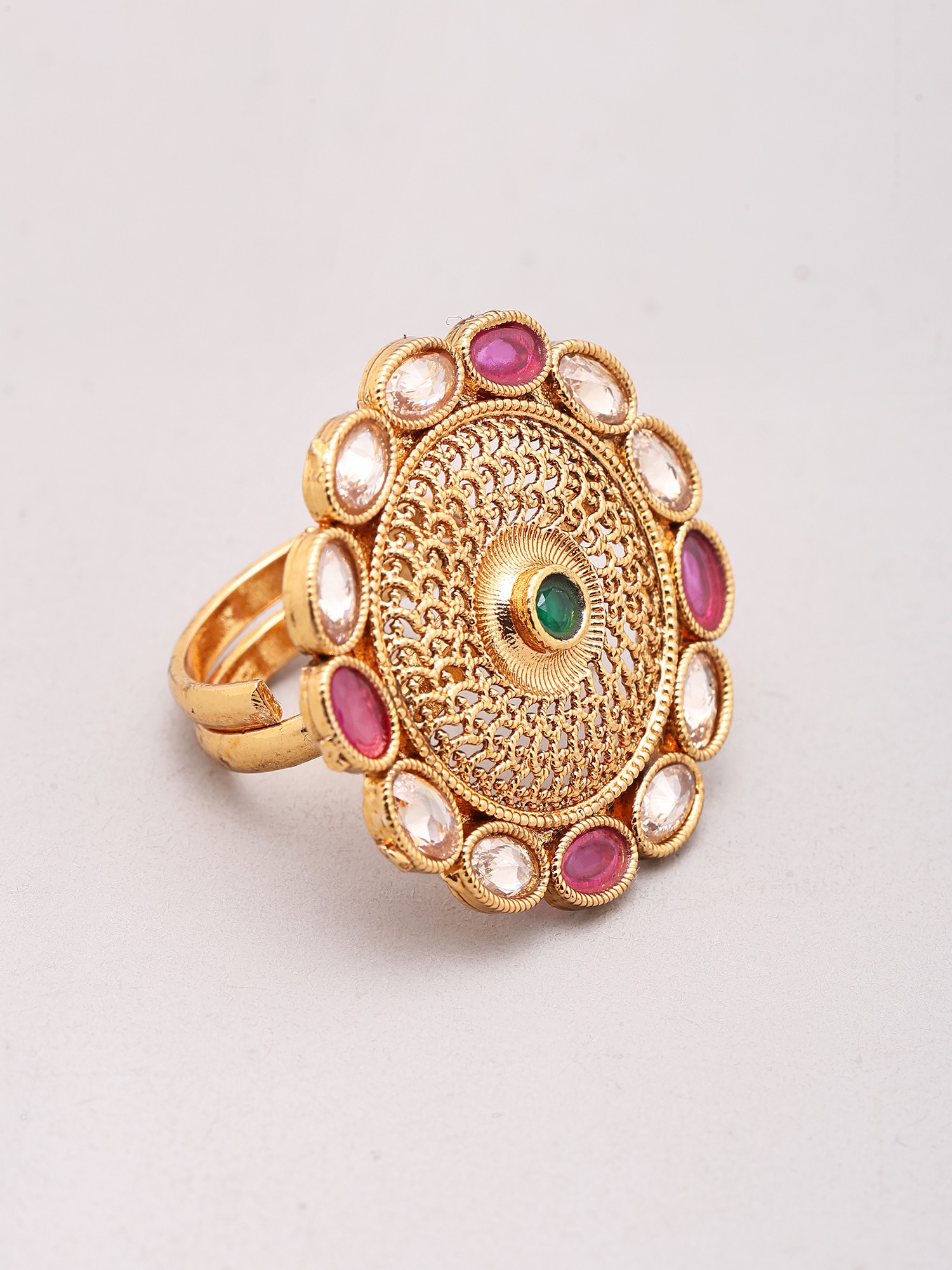 Floral Design Multi Stone Studded Adjustable Ring