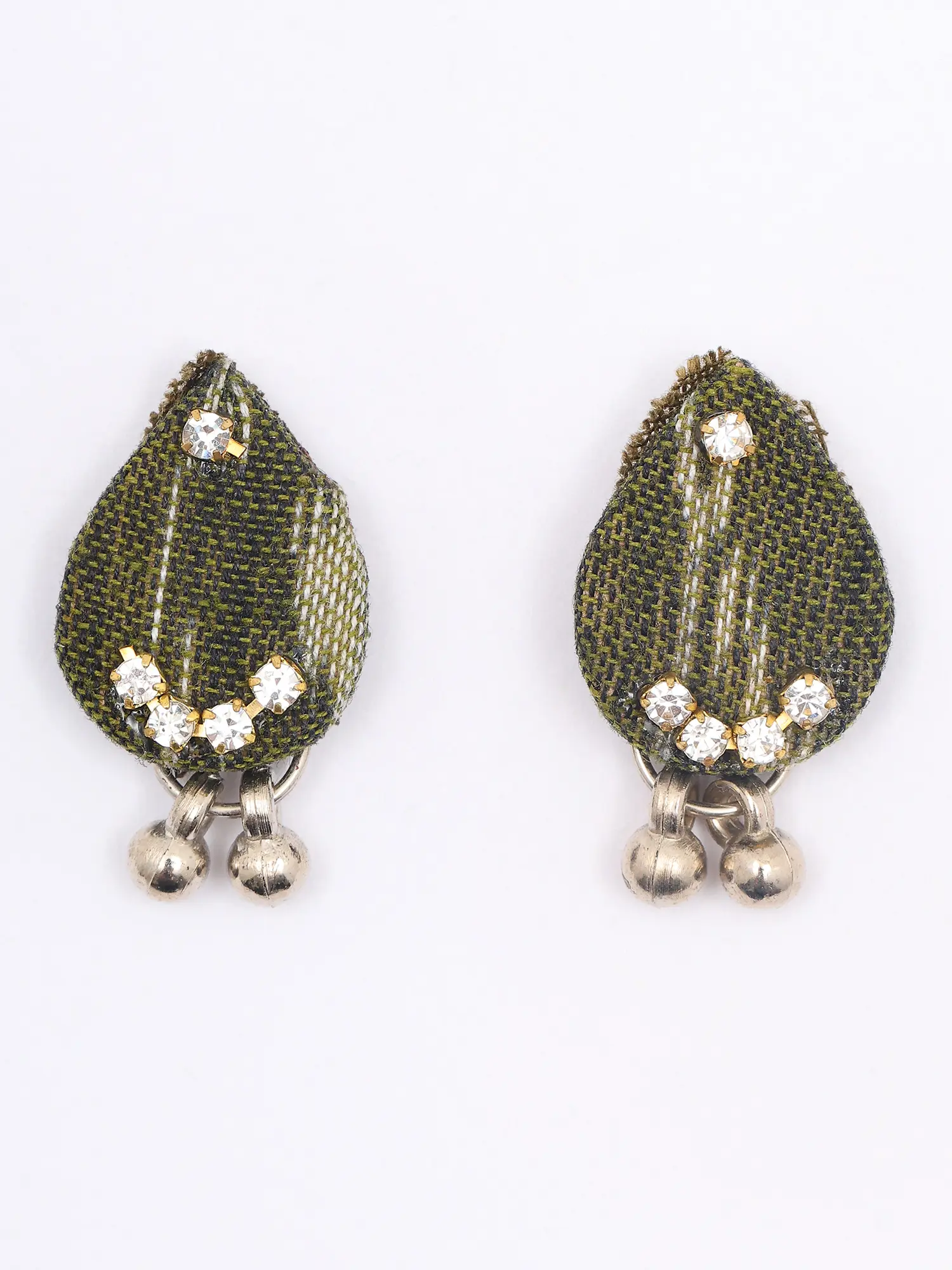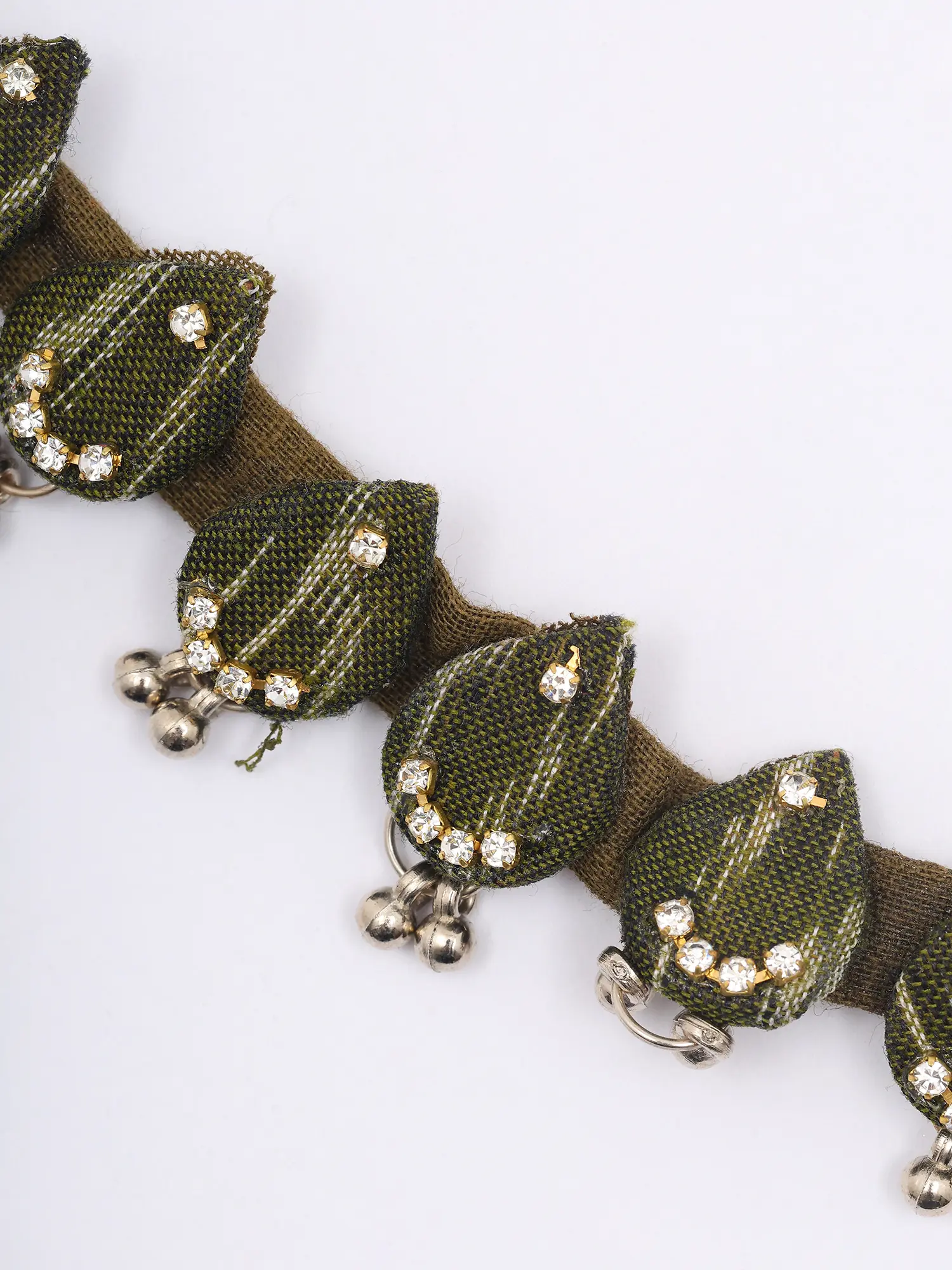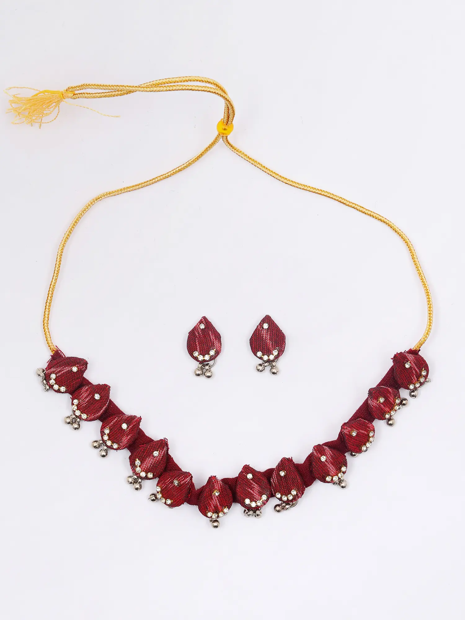 Handloom Sambalpuri Fabric Necklace and Earrings Set with Dangling Tumbled Stone