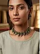 Meenakari Necklace Set In Leaf Design With Hanging Beads And Earrings