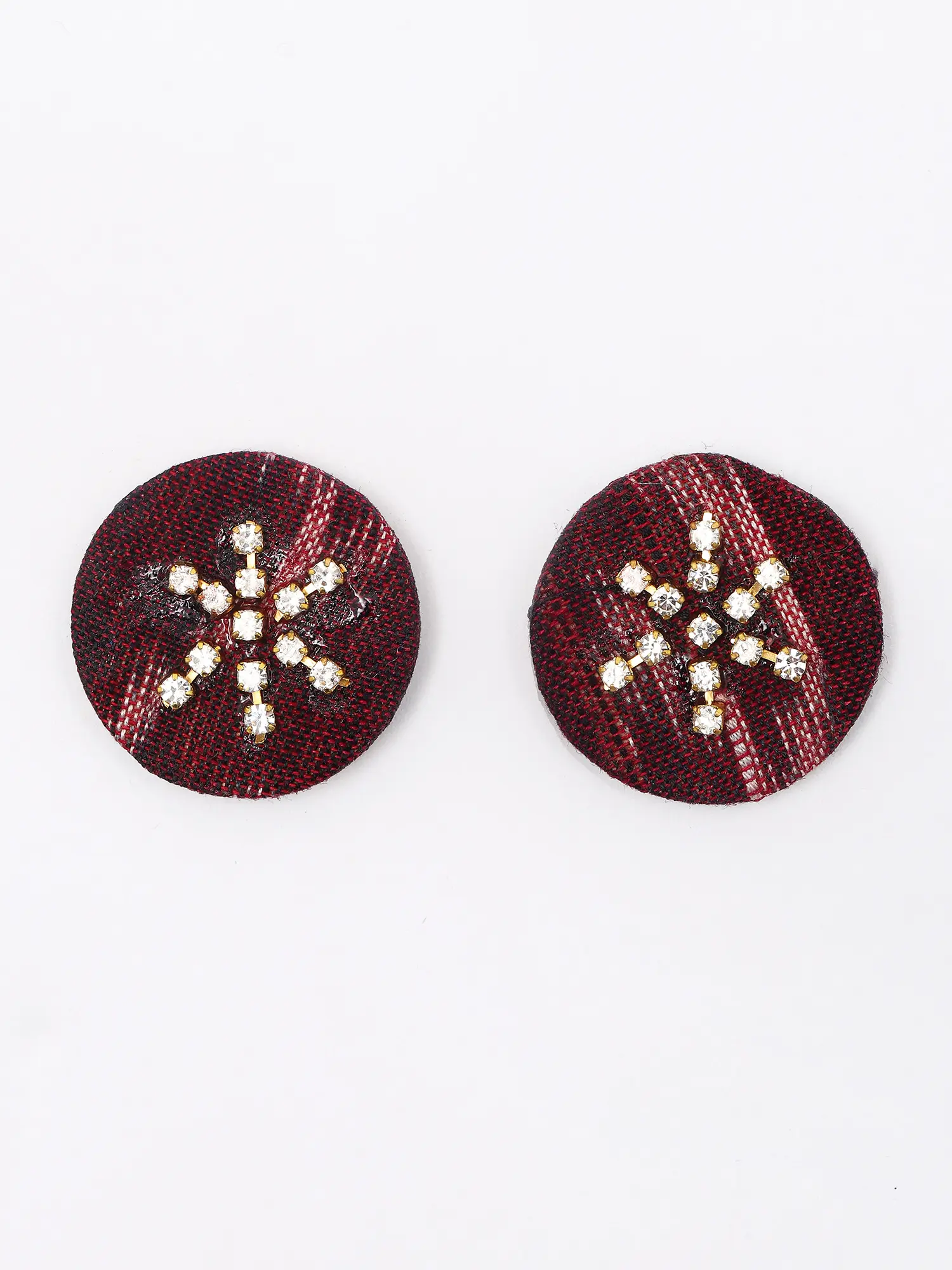 Red Handloom Sambalpuri Fabric Necklace and Earrings Set with Mirror Work