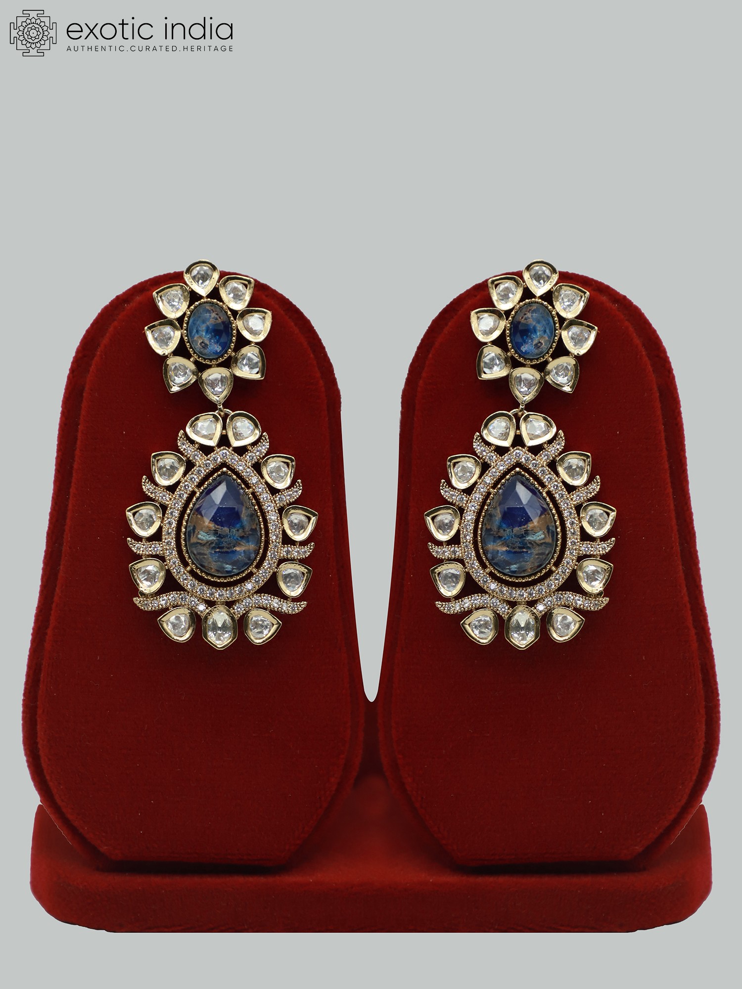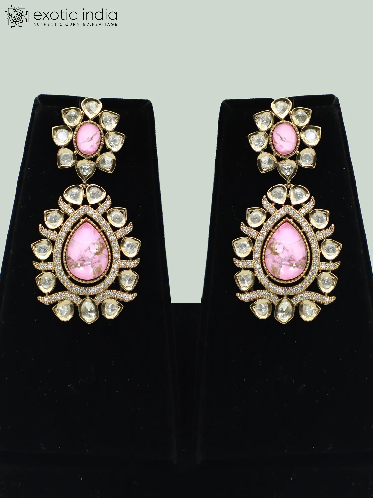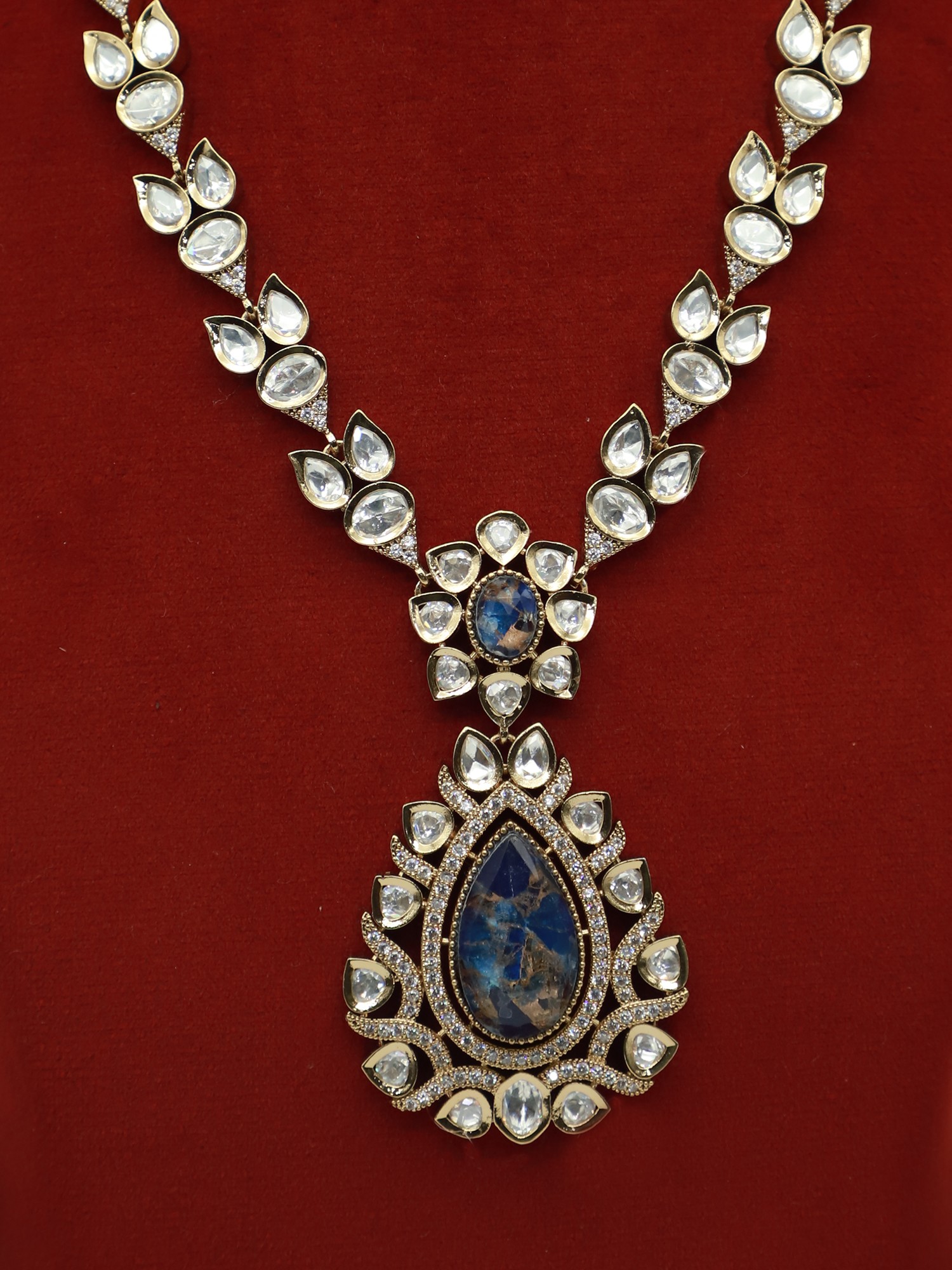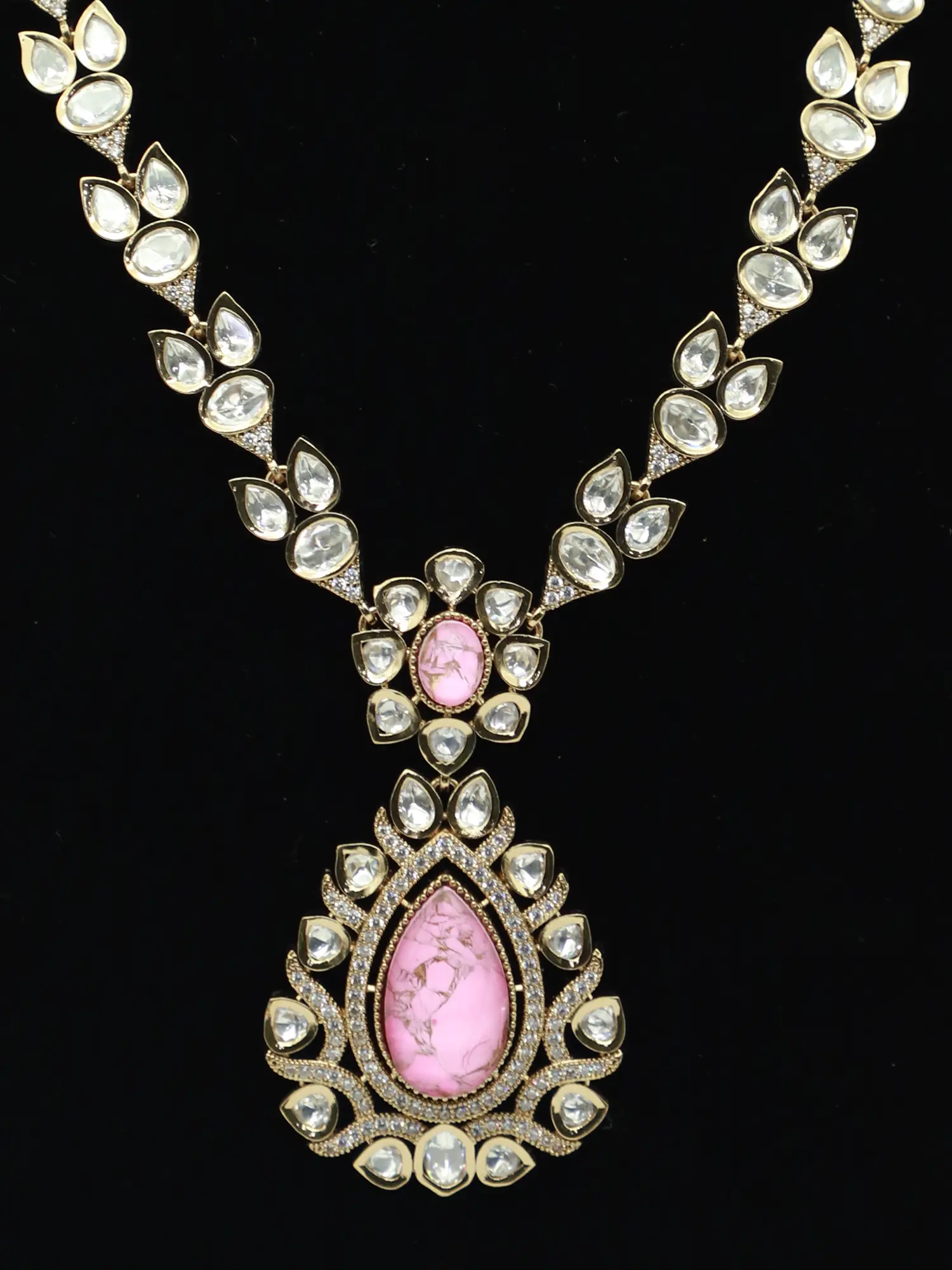Elegant Designer Stone Studded Copper And Kundan Necklace Set With Earrings