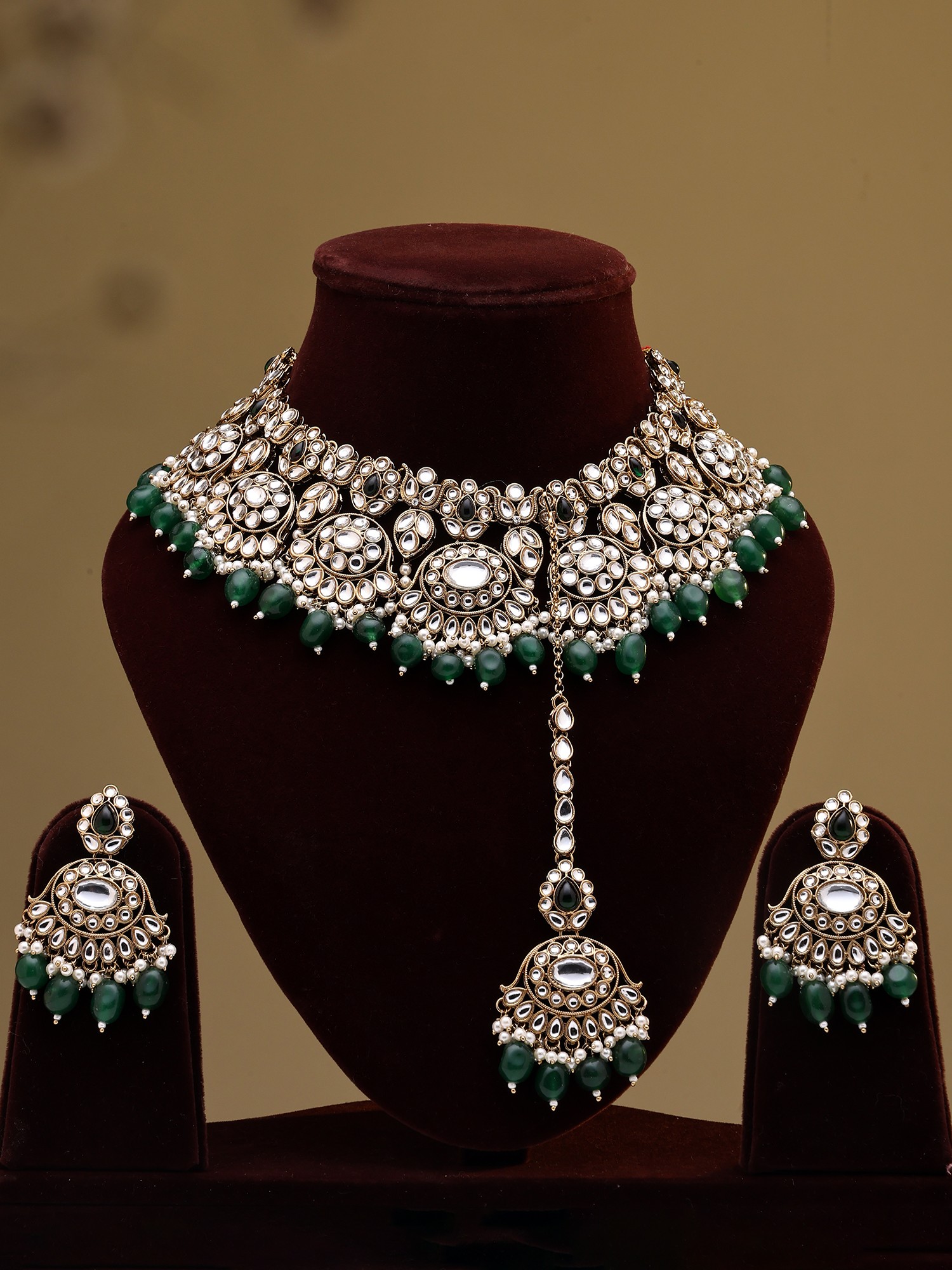 Mint Green Kundan Necklace Set with Earrings and Mangtika