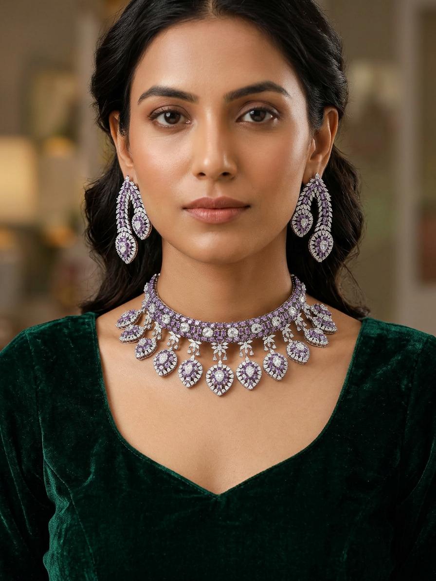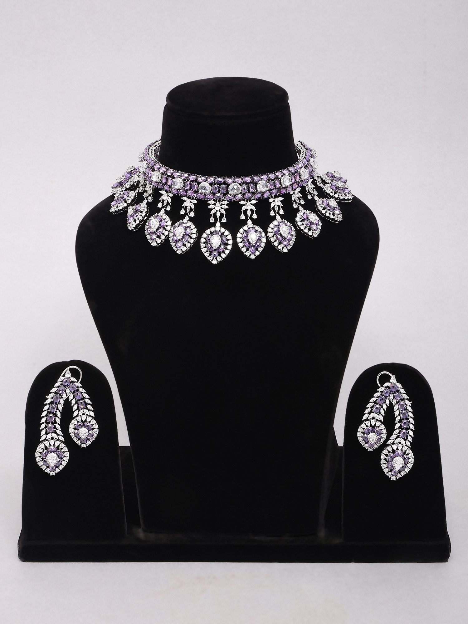 Vine Design American Diamond Necklace Set with Dangle Earrings