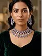 Multi-Strand American Diamond Bridal Necklace Set with Pink Stone Earrings