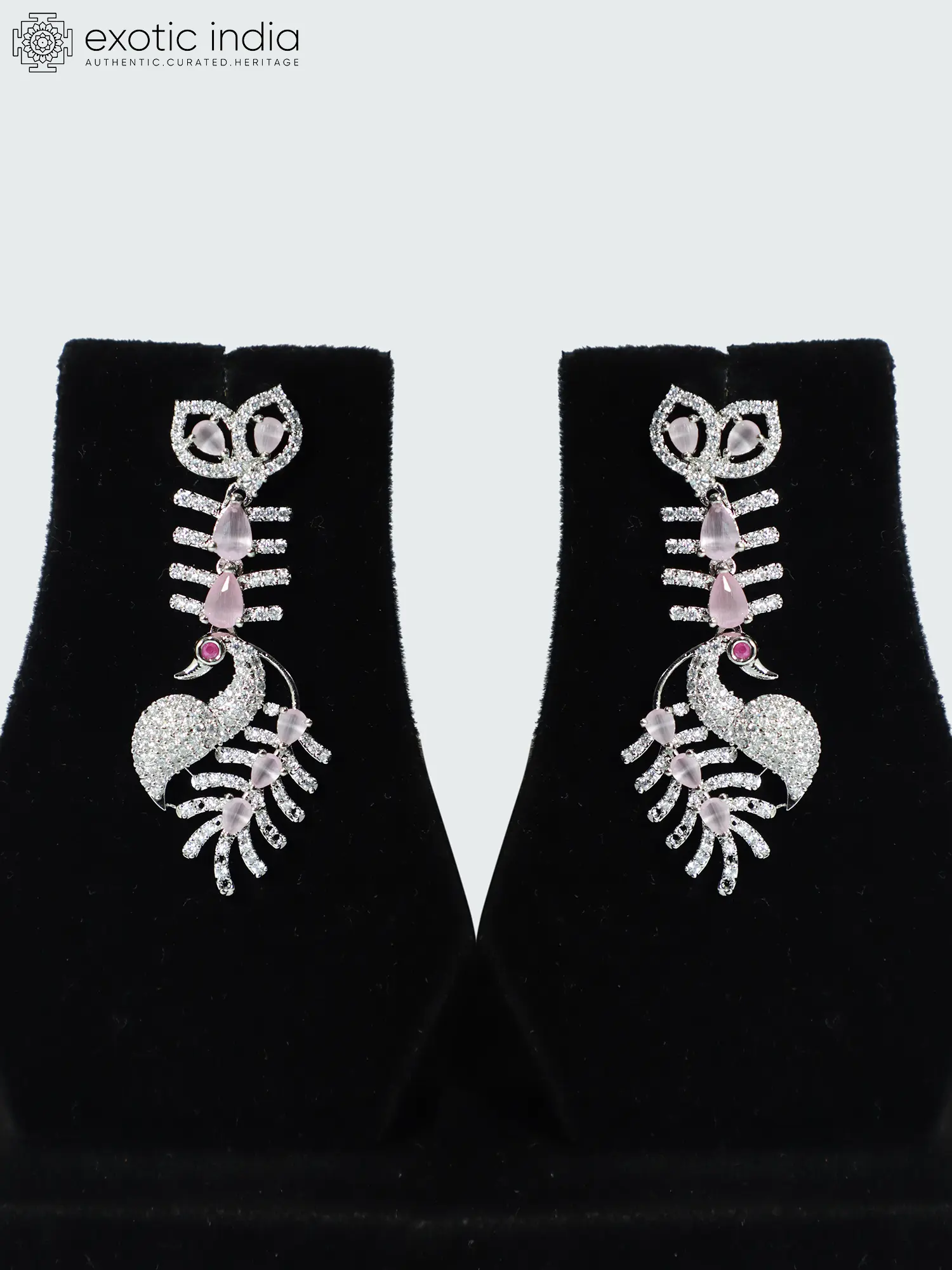 Designer Peacock Pendant and Earrings Set with Cubic Zirconia