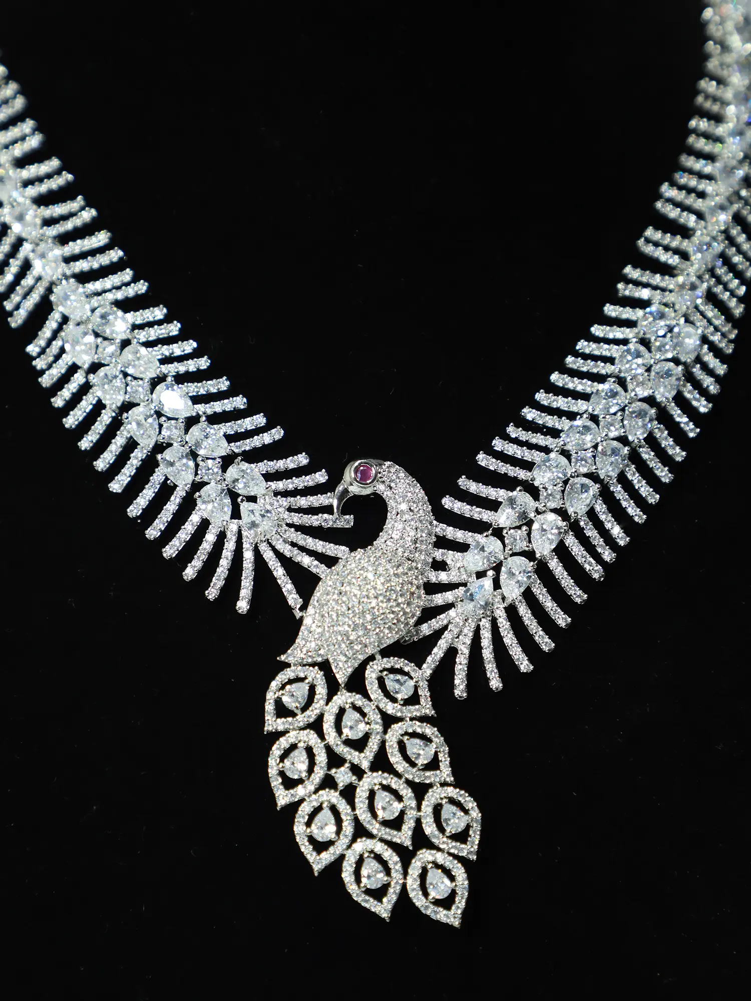 Elegance Redefined: A Peacock's Grace in American Diamonds