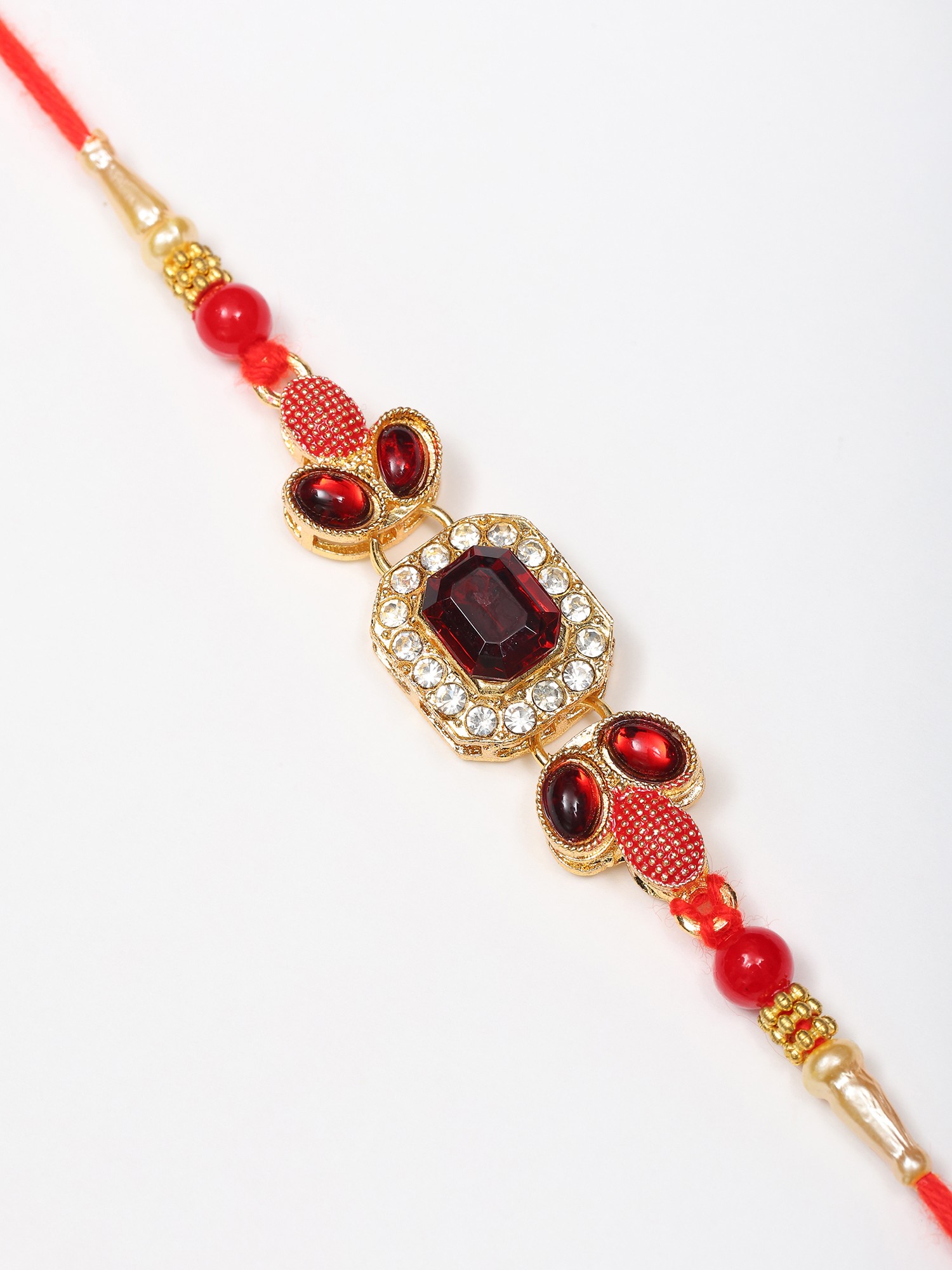 Kundan Studded and Beaded Rakhi with Thread Work Latkan