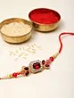 This Rakhi is more than just an accessory; it is a cherished symbol of love, protection, and the sacred bond between siblings. Tie this beautiful Rakhi on your brother's wrist and watch his face light up with joy and gratitude. Its design makes it a memorable keepsake that he can treasure long after the festivities are over. It is an exquisite piece of fashion jewelry that will truly make the special day memorable for years to come. It is an emblem of the cherished bond you share, a reminder of your love, and a wish for his prosperity and well-being.
