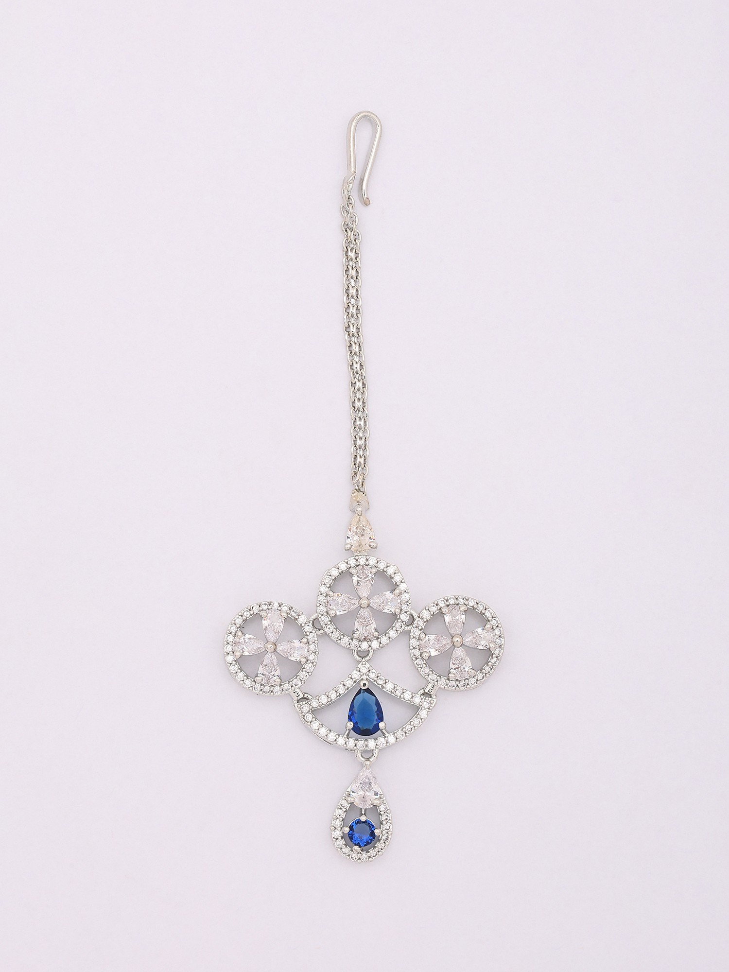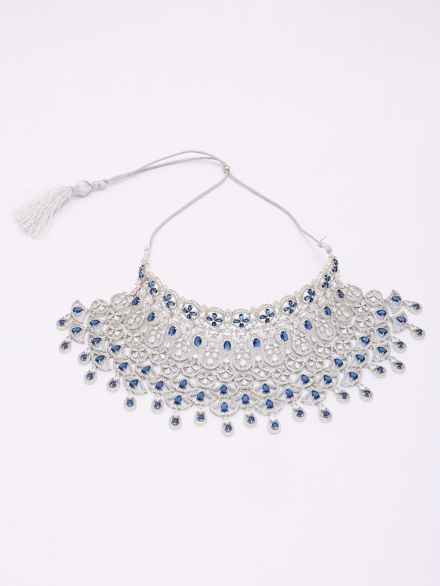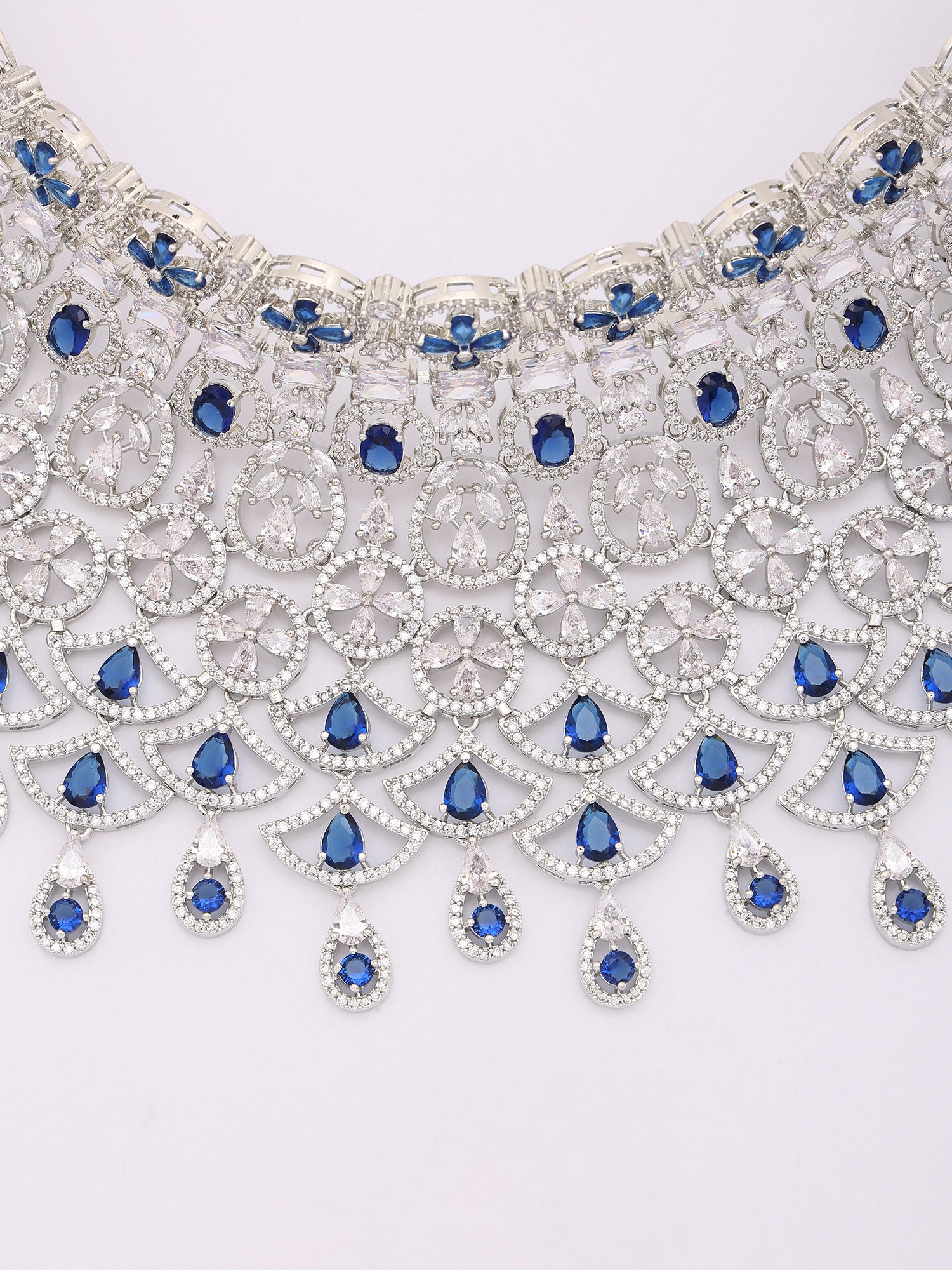 Royal Blue American Diamond Bridal Necklace Set with Maang Tikka