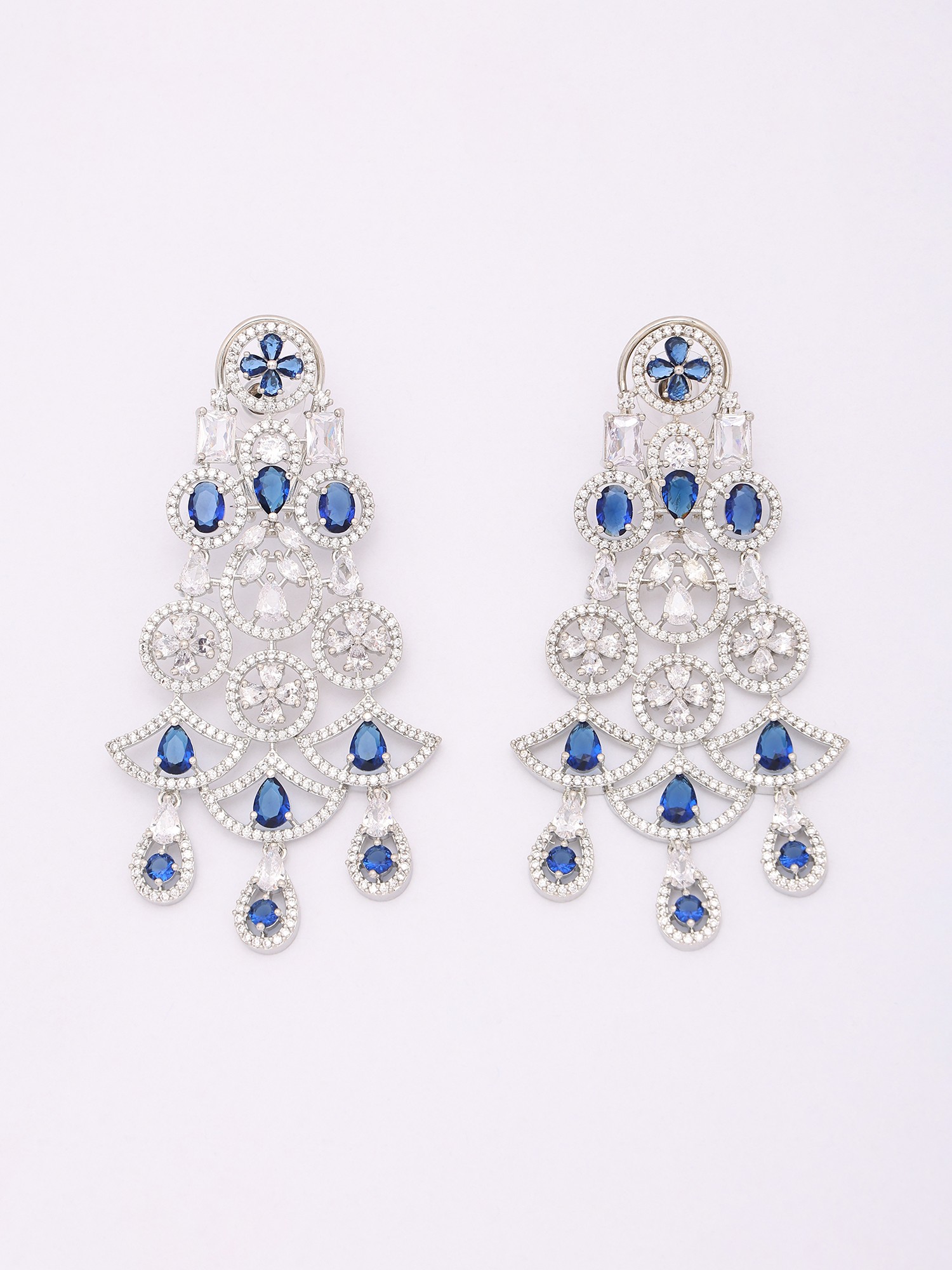 Sparkling CZ and Blue Sapphire Necklace Set with Drop Earrings