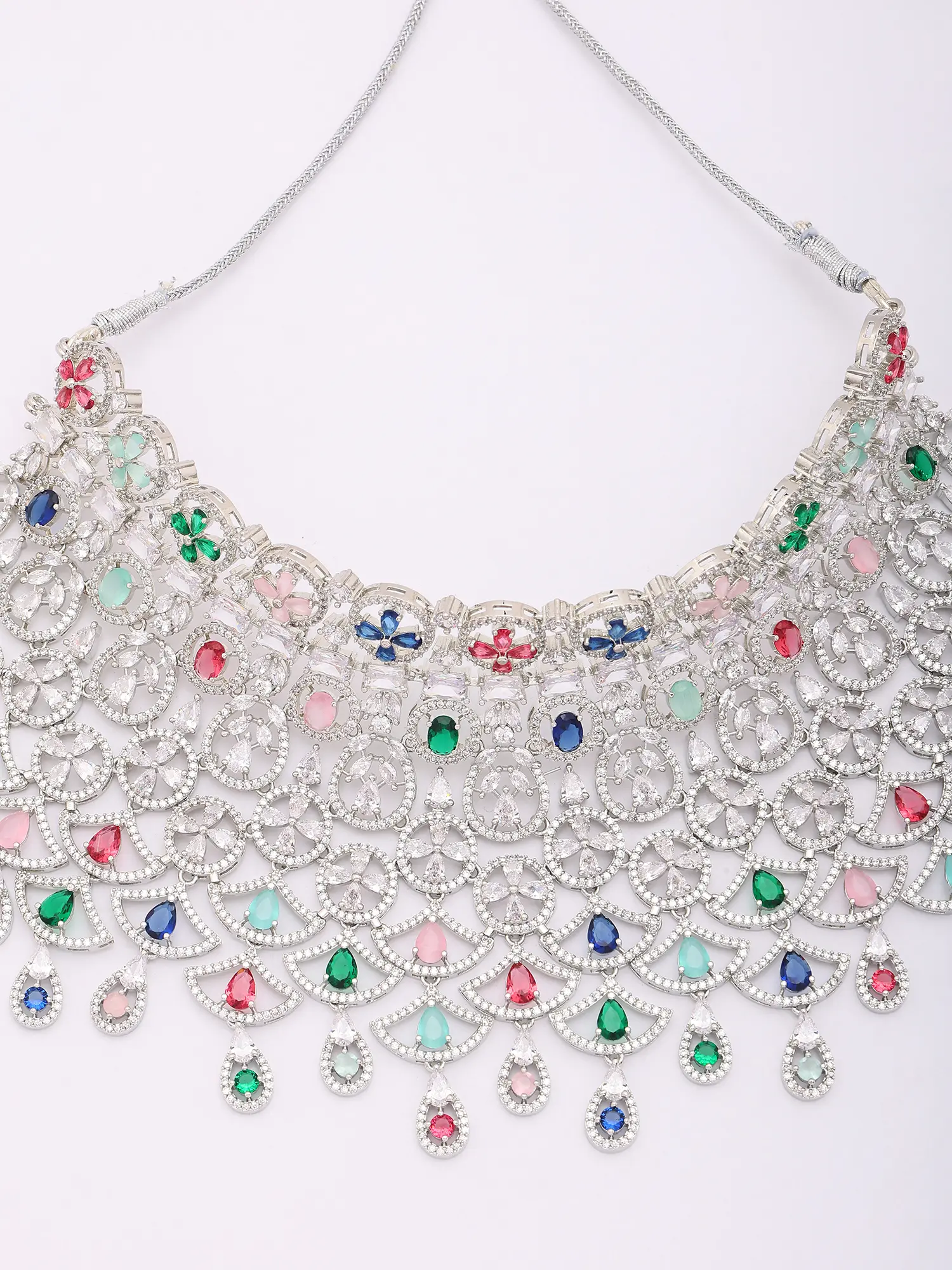 Bridal Necklace Set with Teardrop American Diamonds and Colorful Gemstones