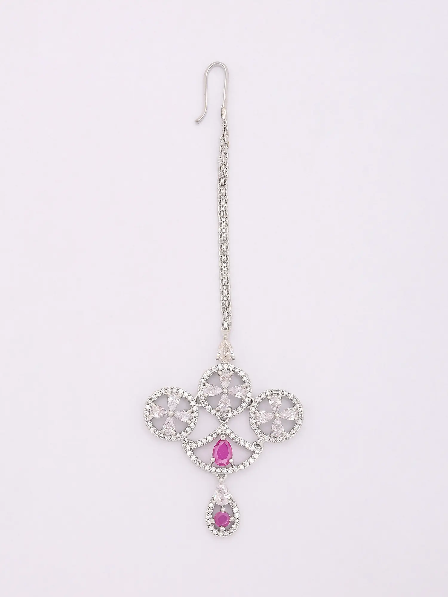 Teardrop American Diamond Bridal Necklace Set with Maang Tikka