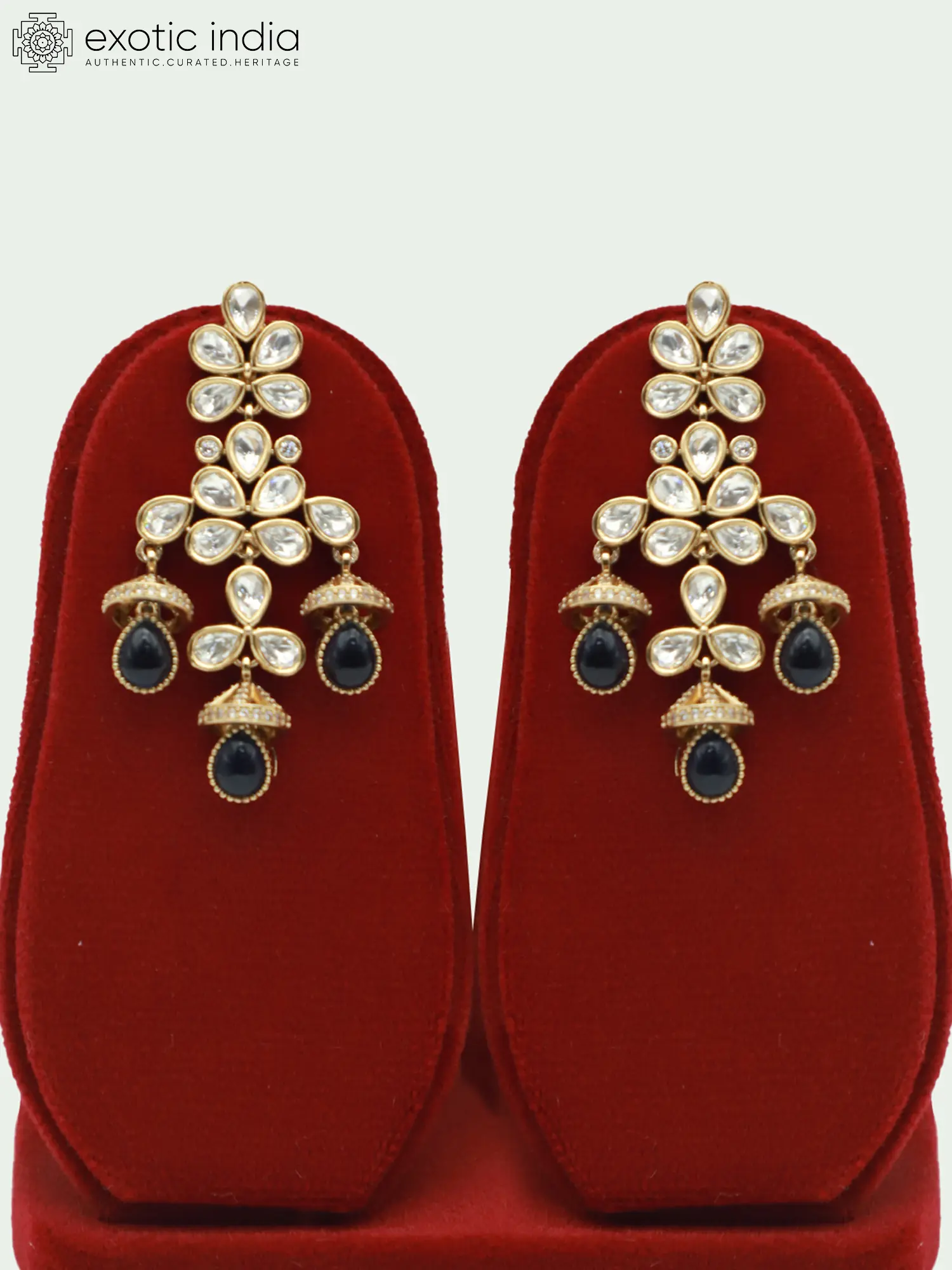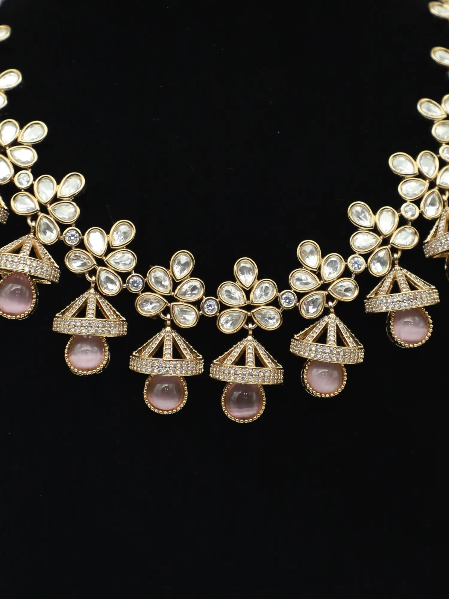 Stunning Floral Design Stone Studded Moissanite Kundan With Monalisa Beads Necklace With Earrings