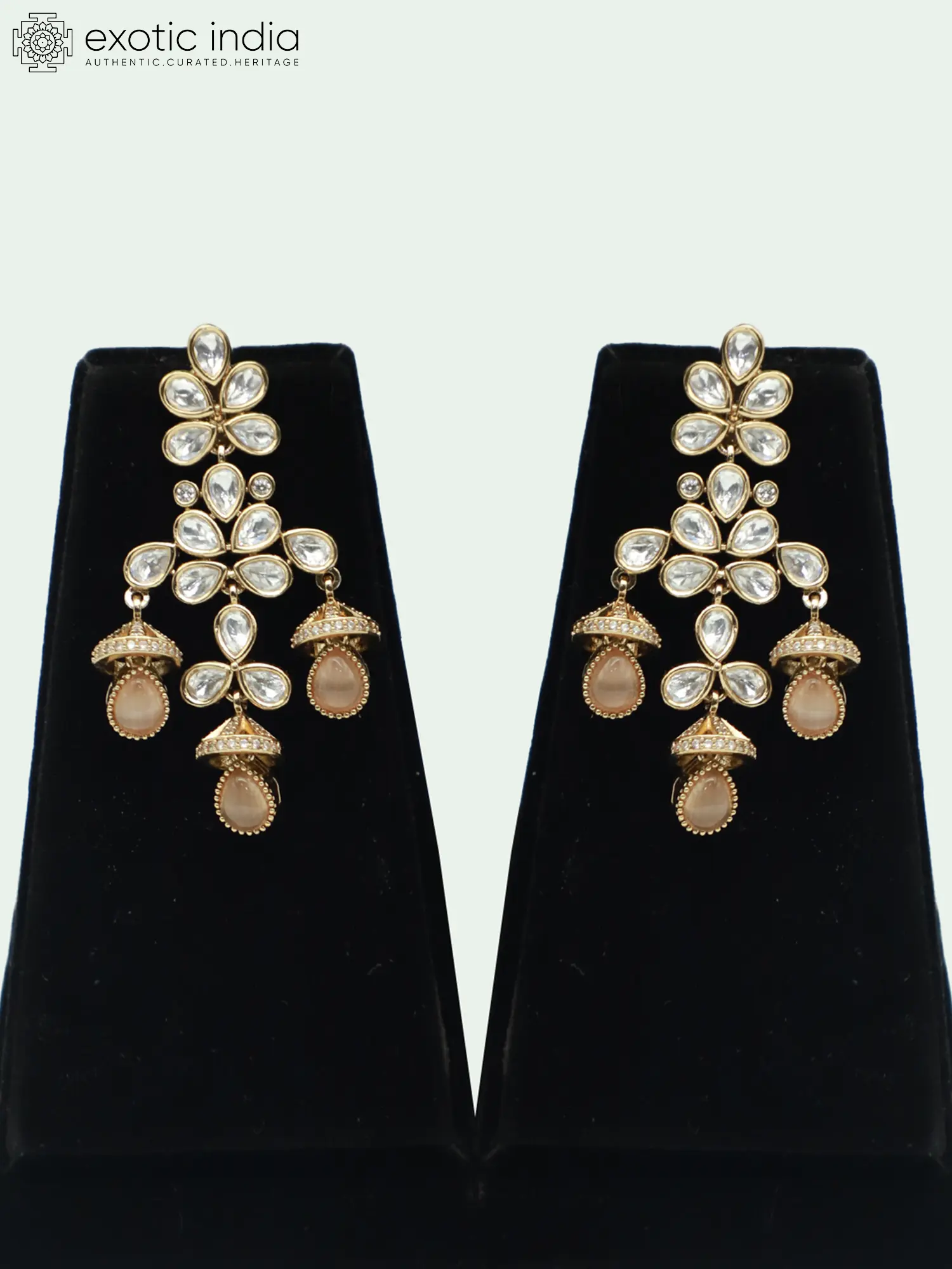 Stunning Floral Design Stone Studded Moissanite Kundan With Monalisa Beads Necklace With Earrings