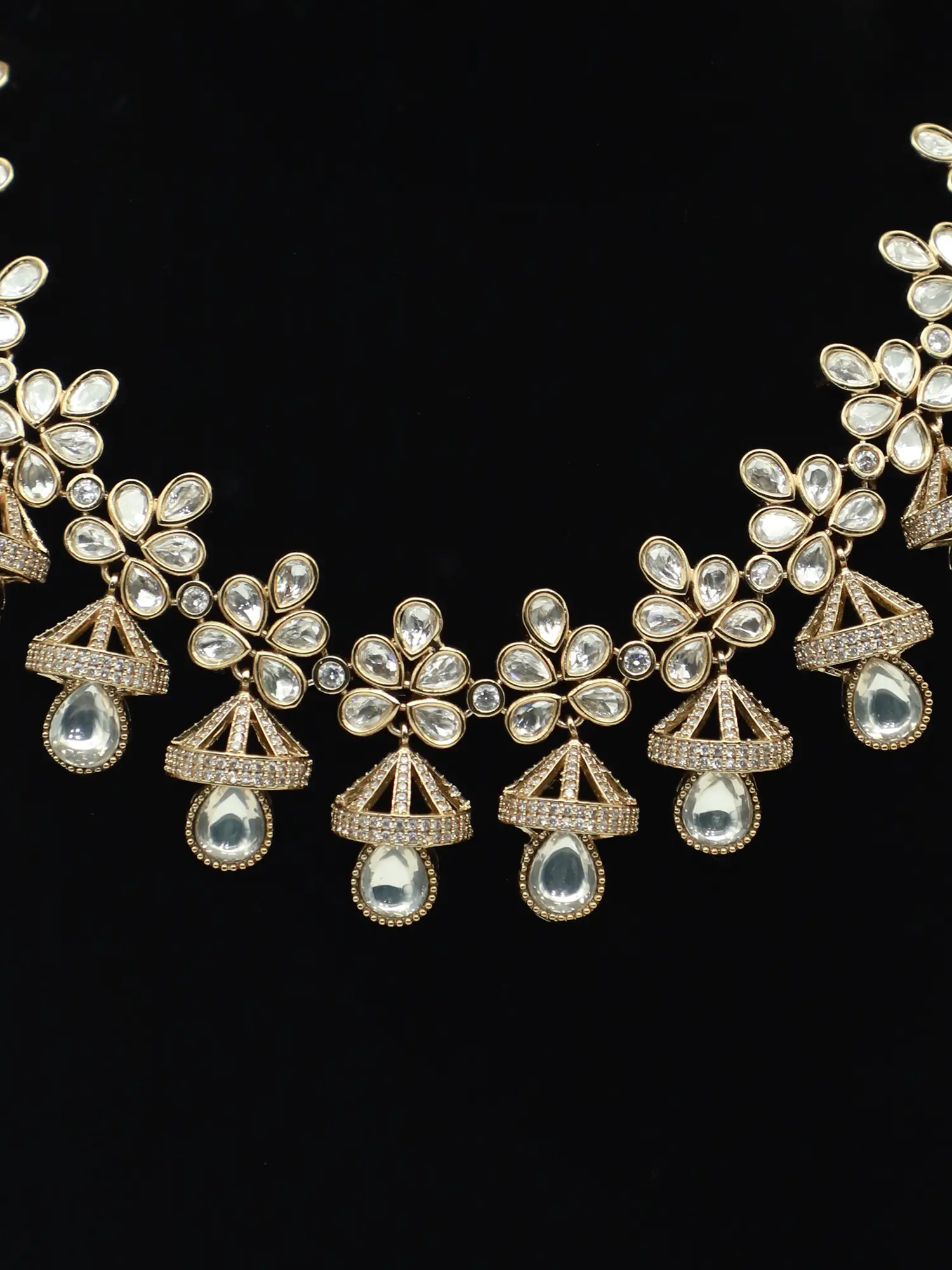 Moissanite Kundan Stone Studded Stunning Necklace With Matching Earrings