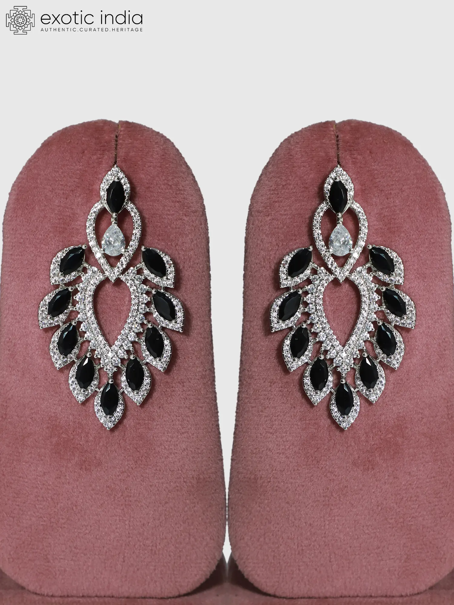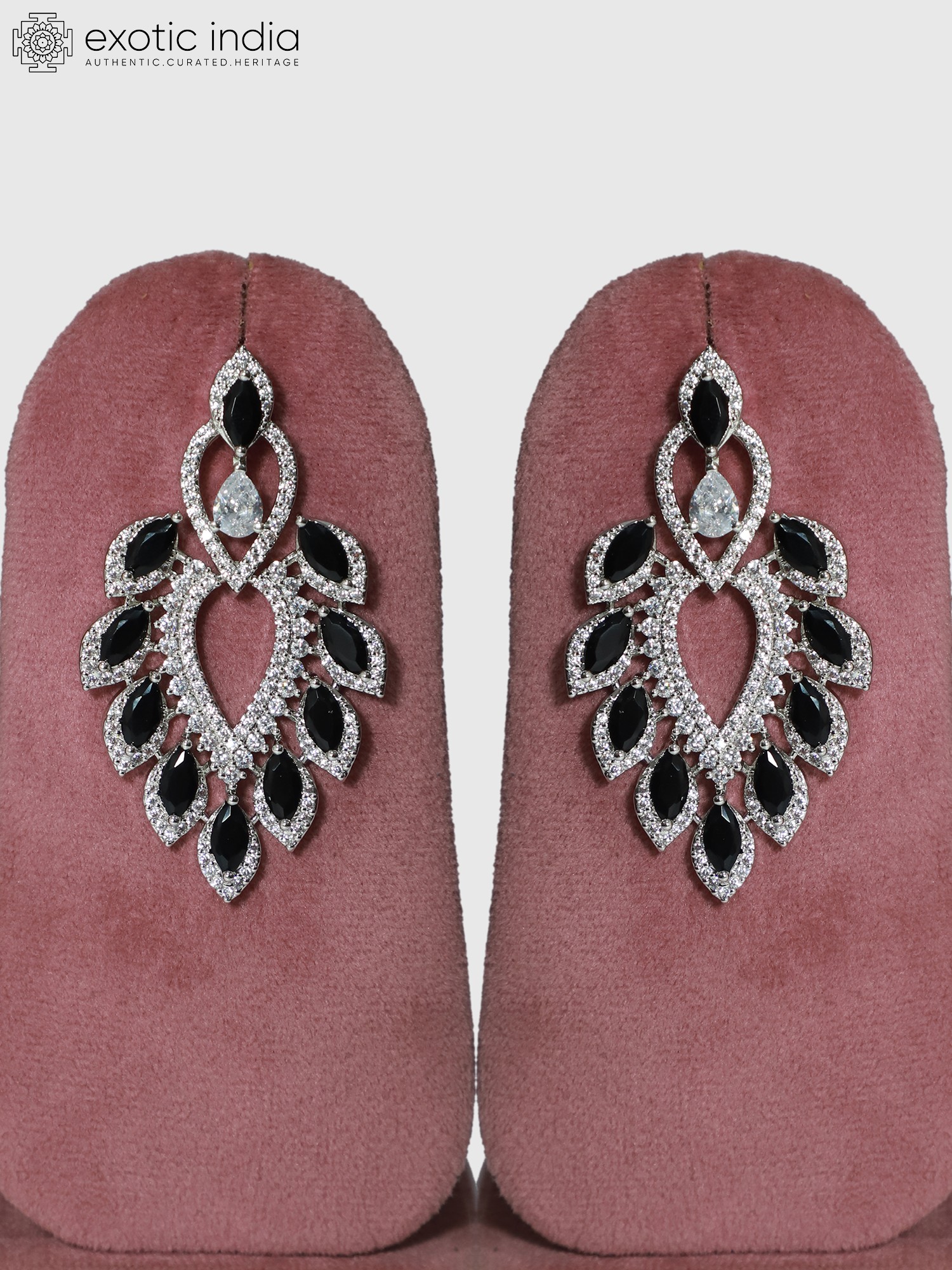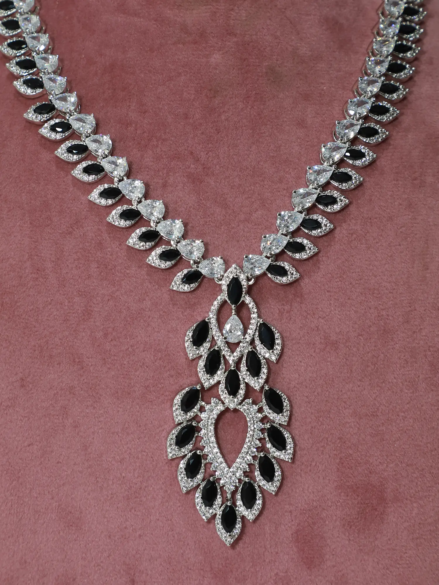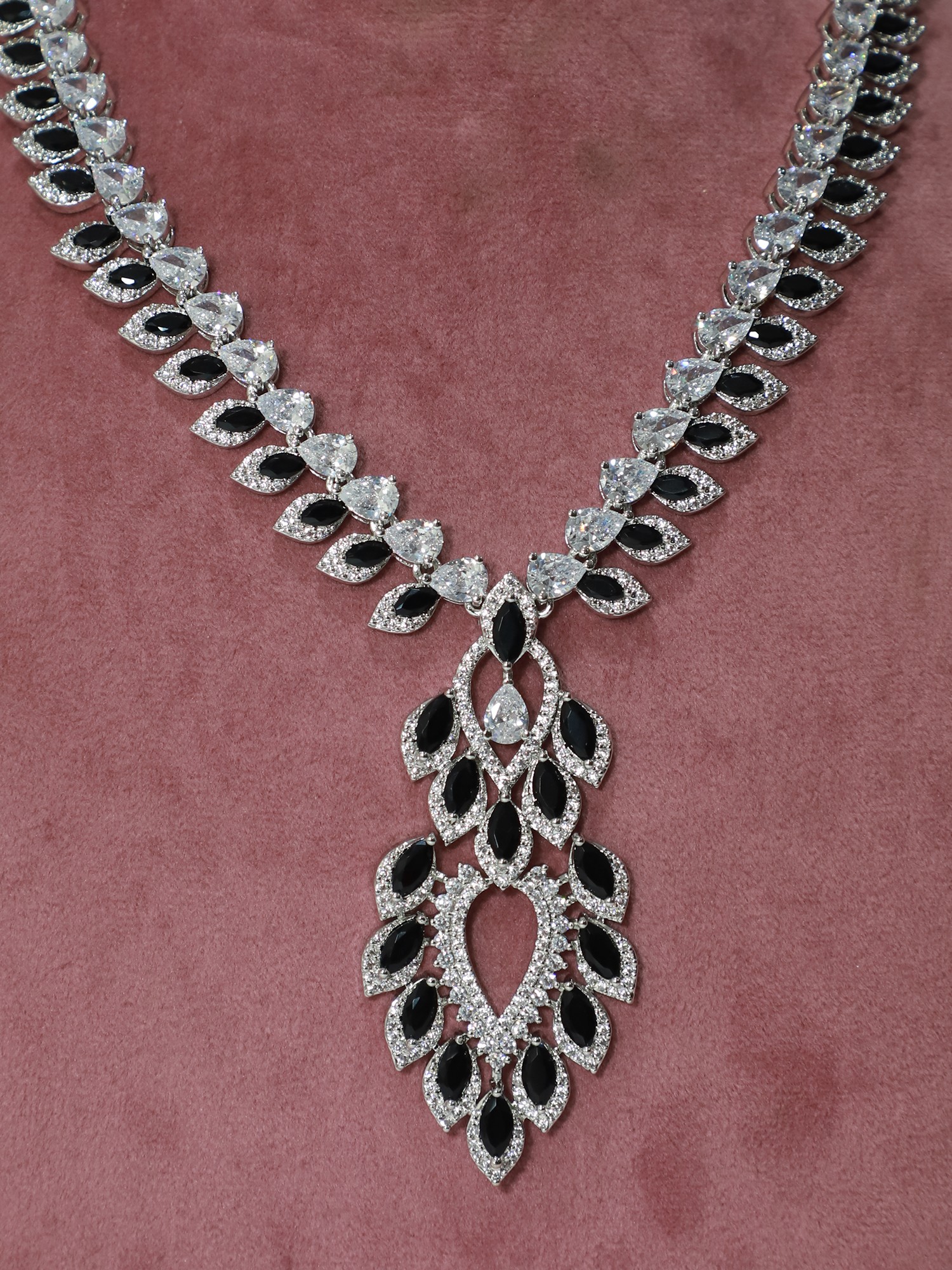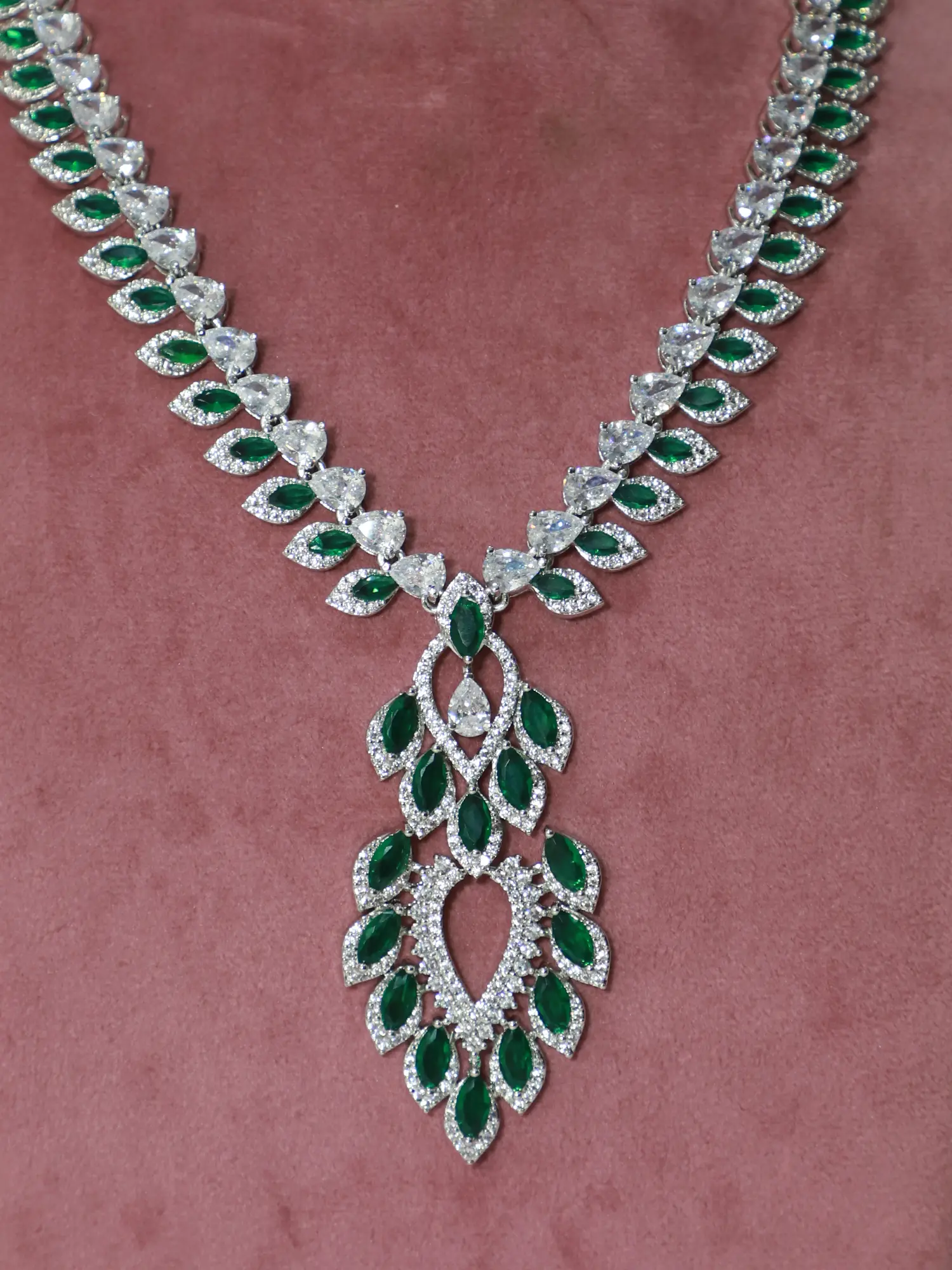 Stunning Floral Leaf Design Stone Studded American Diamond Necklace Set With Earrings