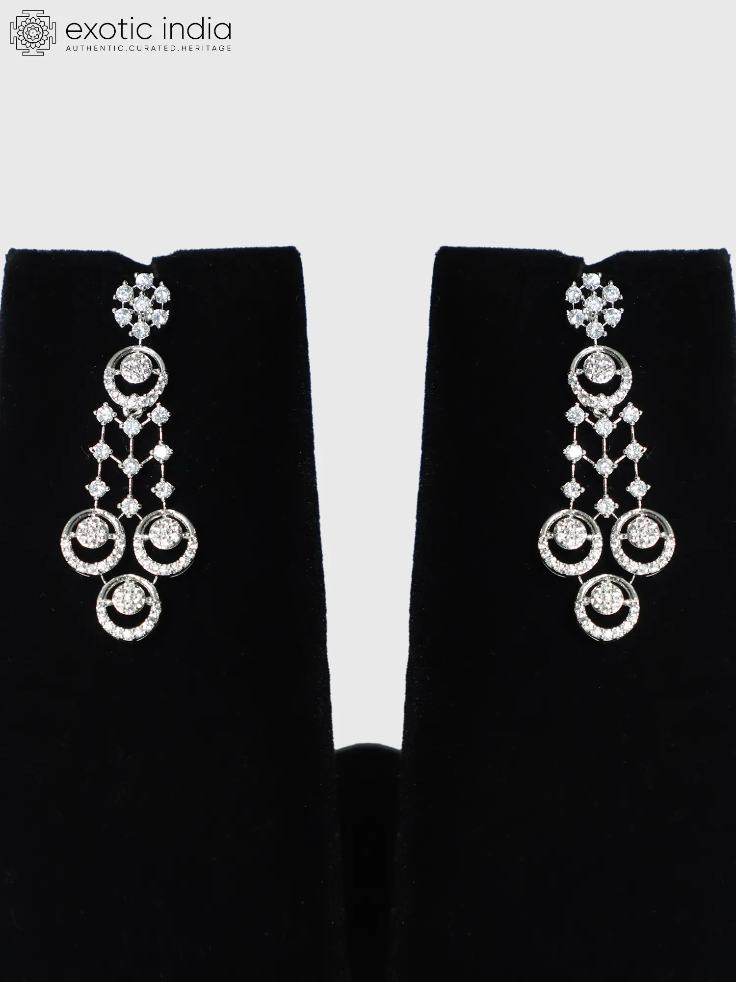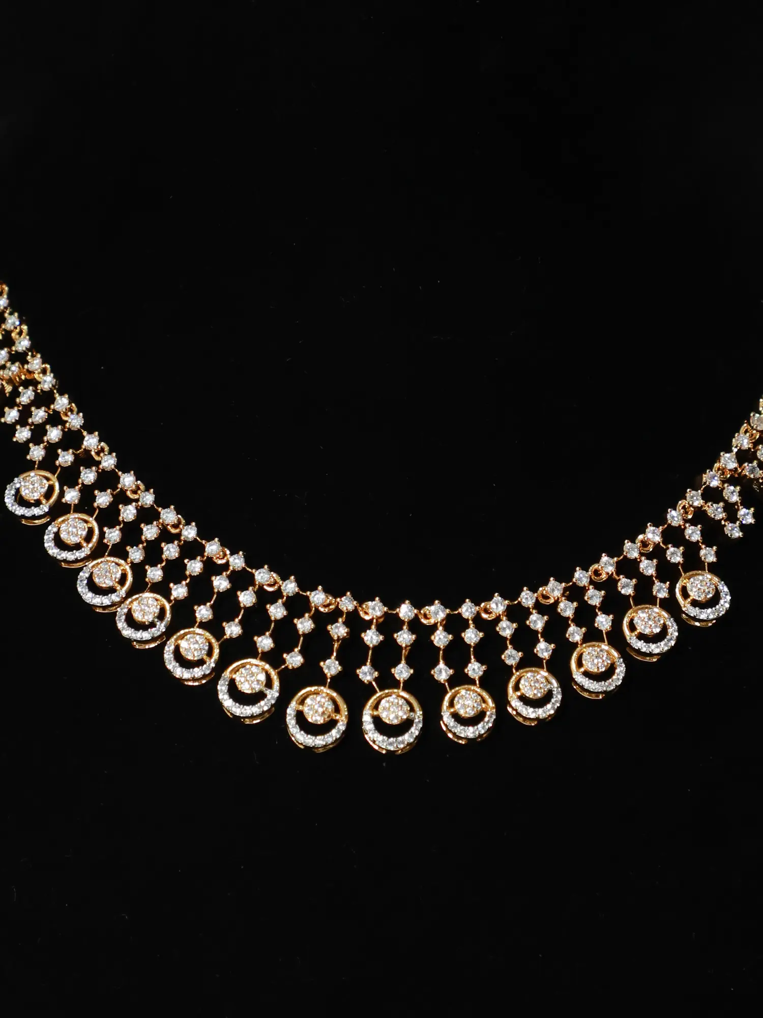 Elegant Floral Design Long American Diamond Necklace Set With Earrings