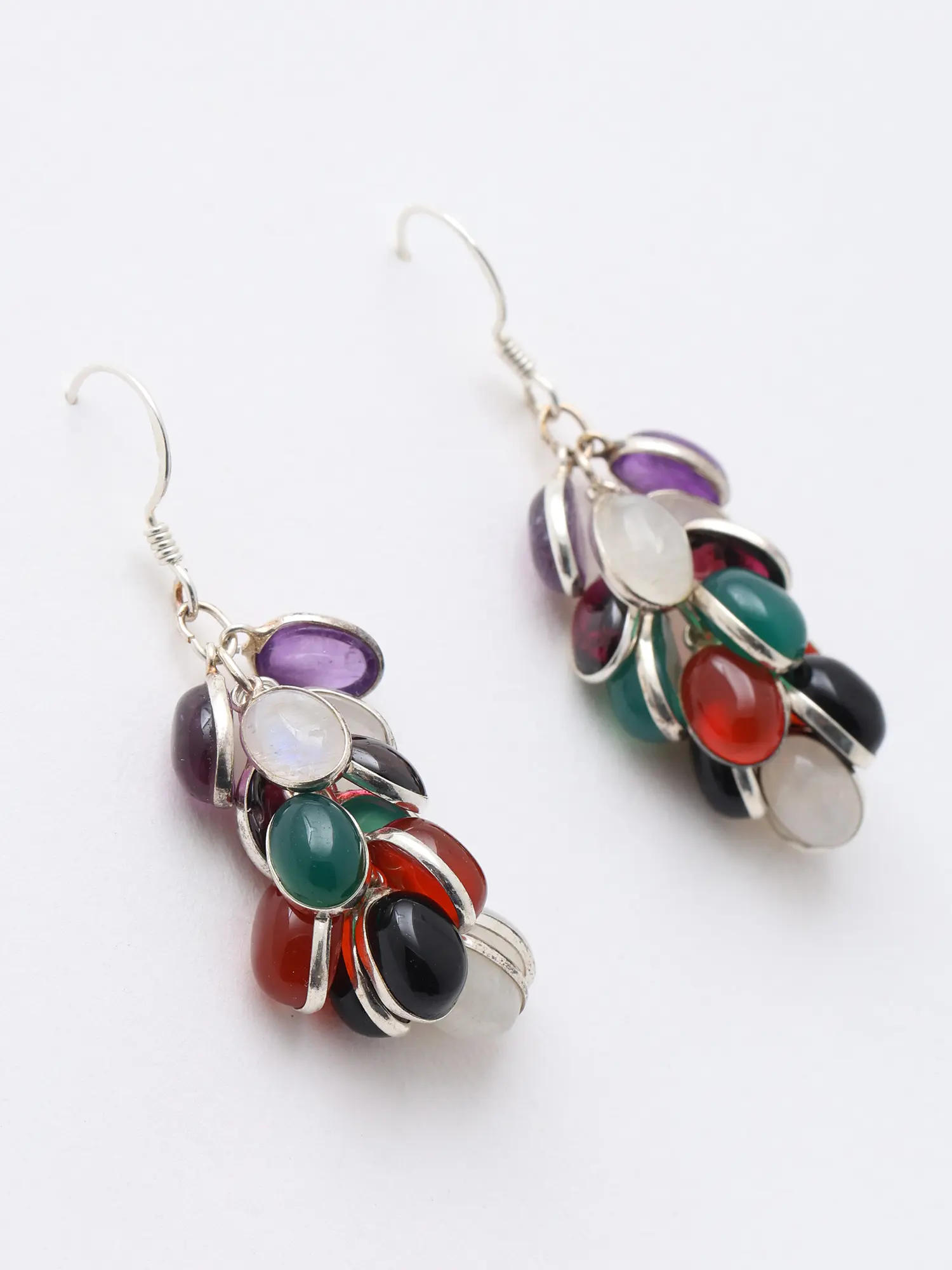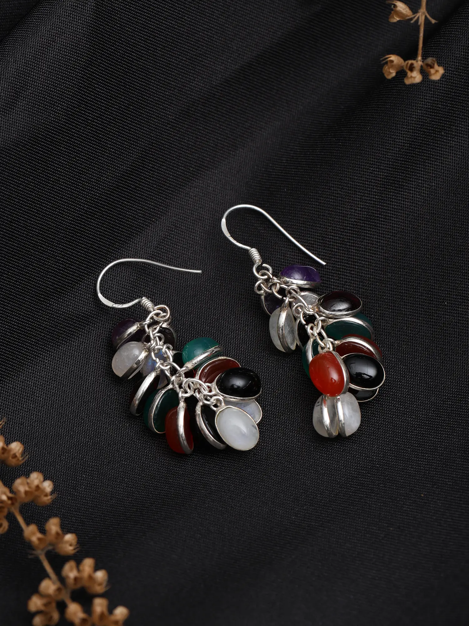 The multicolored gemstone stone in these stylish sterling silver earrings will add style to your look. This jewelry exudes style and allure because of the gemstone's multicolor and exquisite shape. These sterling silver earrings are the ideal blend of a more muted design and a classy, colorful burst. Admire the unique beauty of a gemstone expertly set in striking silver to infuse your ensemble with flair and subtle grace.