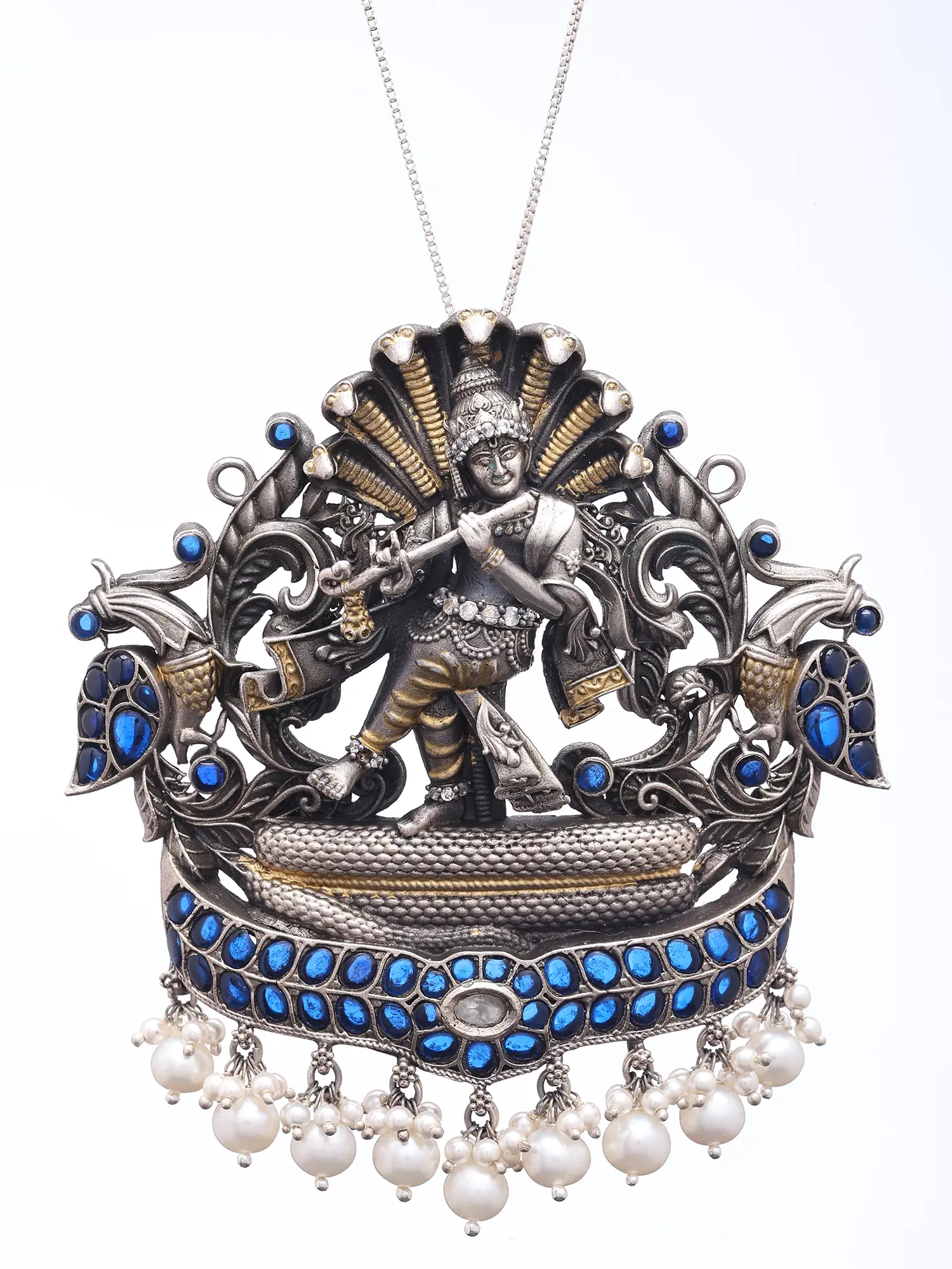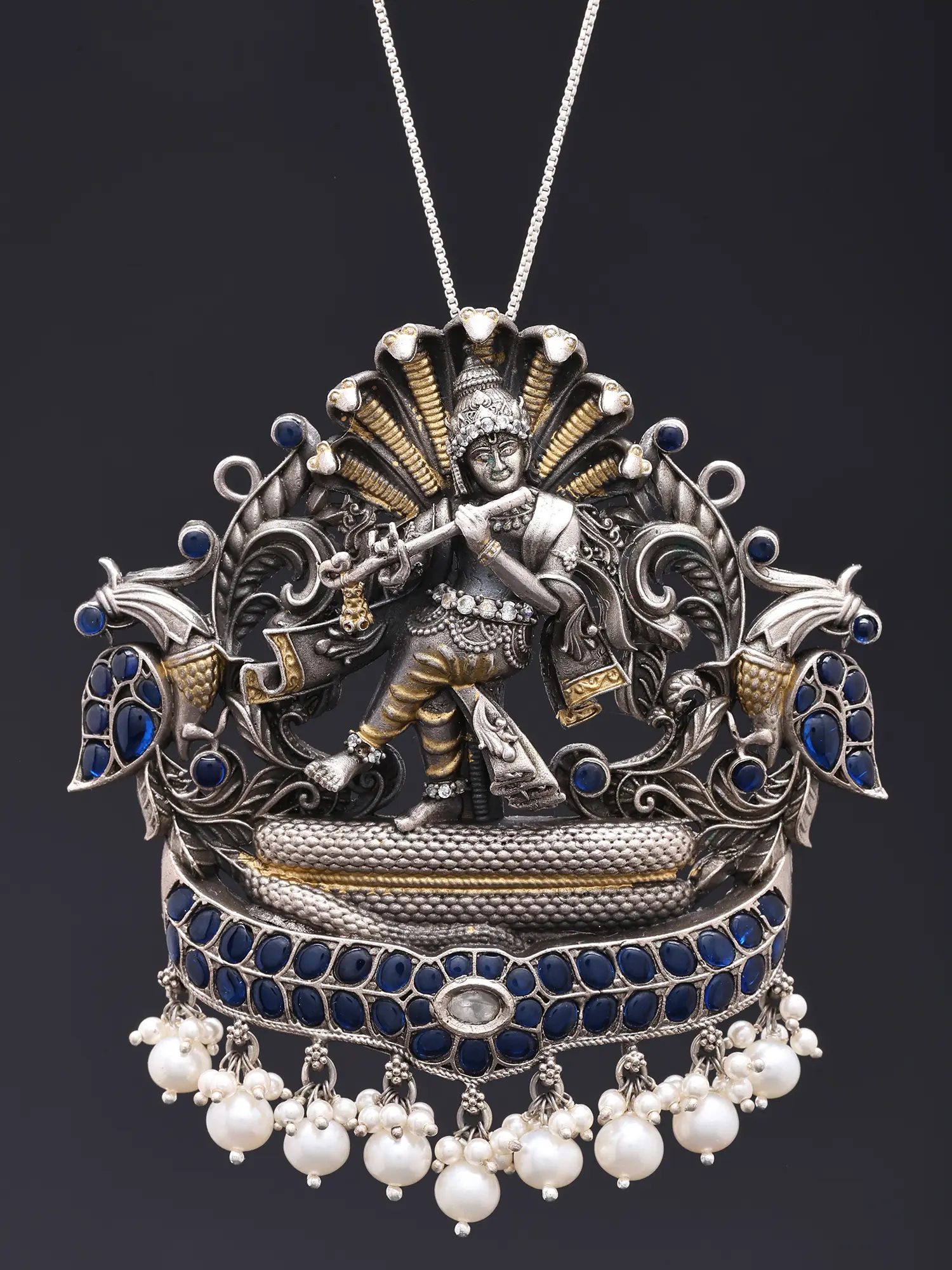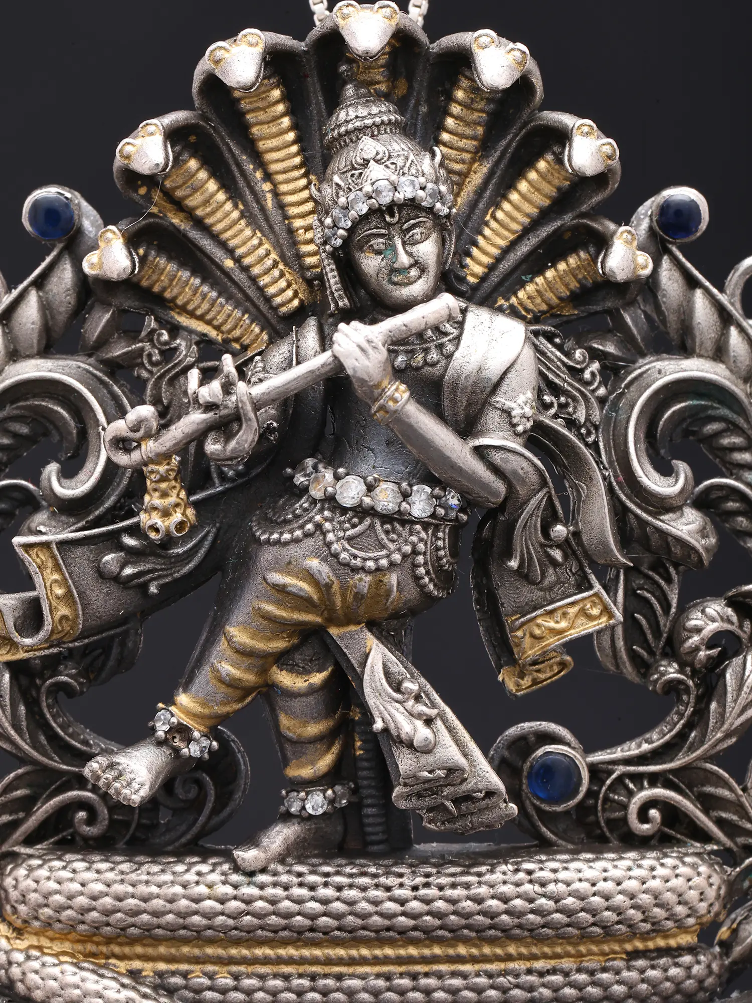 This composition draws inspiration from the beloved Hindu deity Krishna, specifically his legendary subjugation of the serpent Kaliya. This narrative symbolizes the triumph of righteousness over malevolence, a theme deeply embedded in spiritual traditions. Owning this pendant connects you to a rich cultural heritage and a story of divine intervention and cosmic balance.