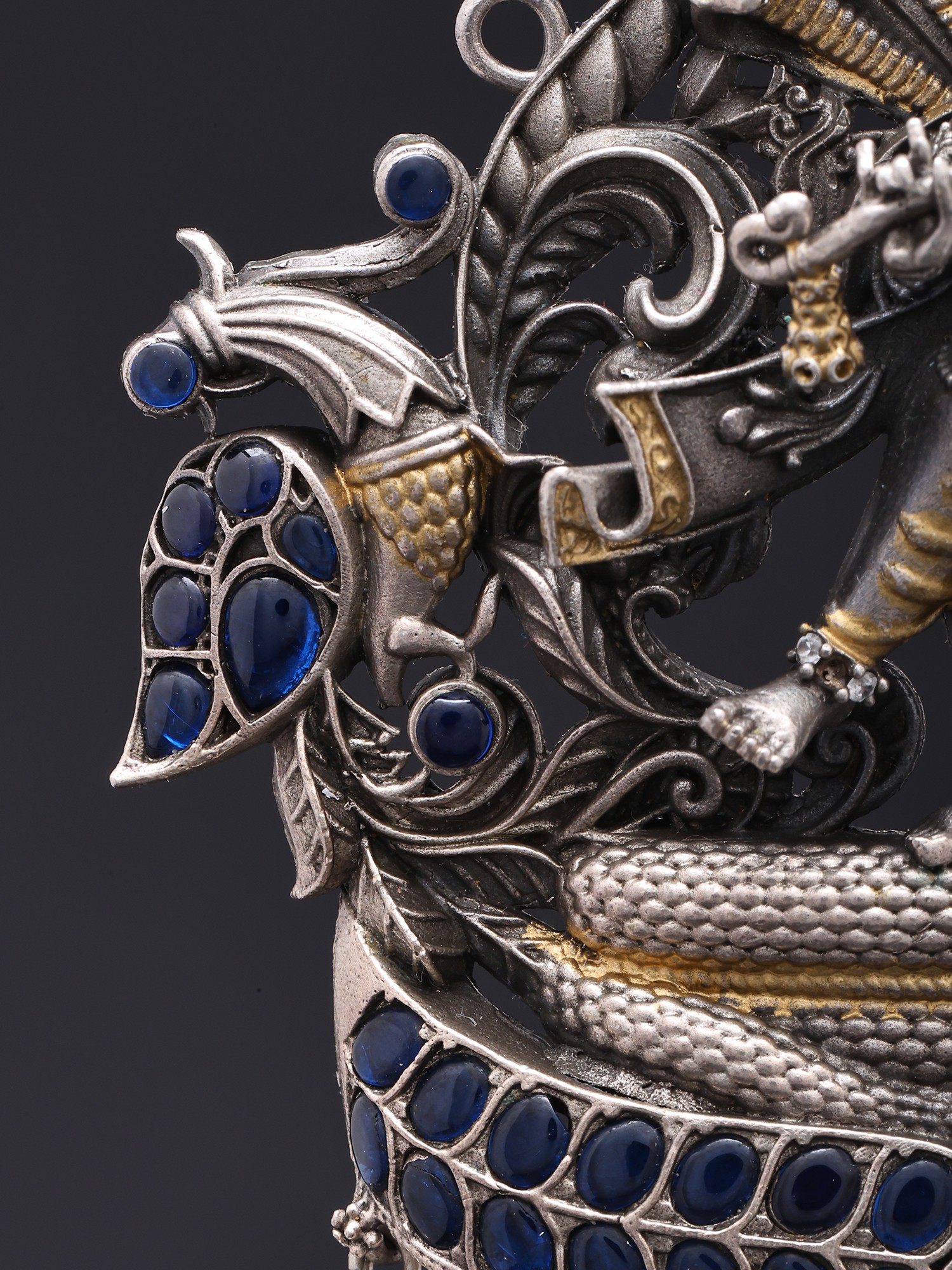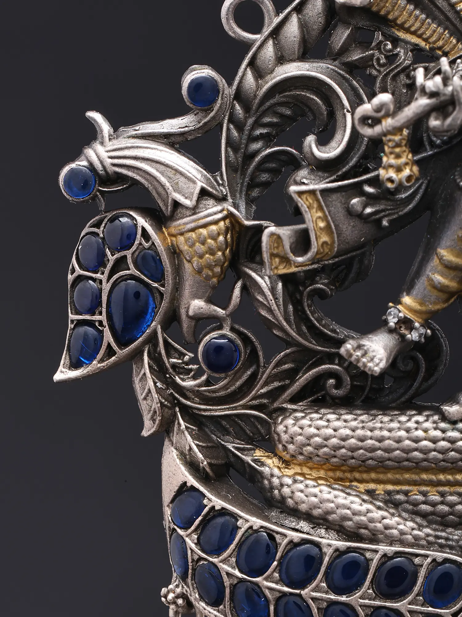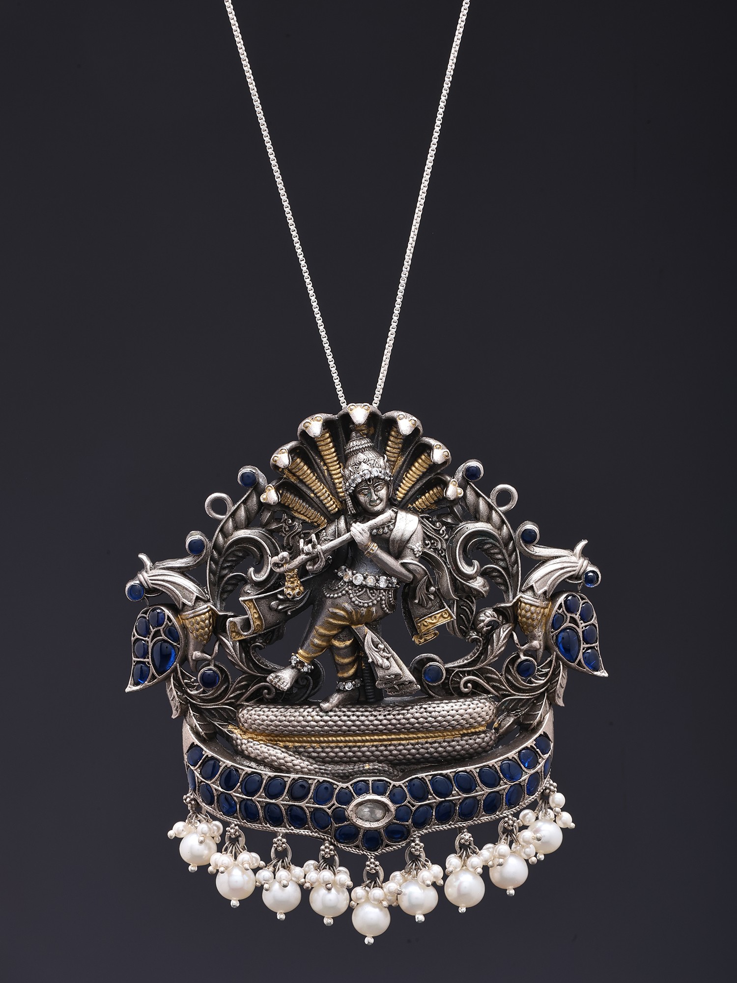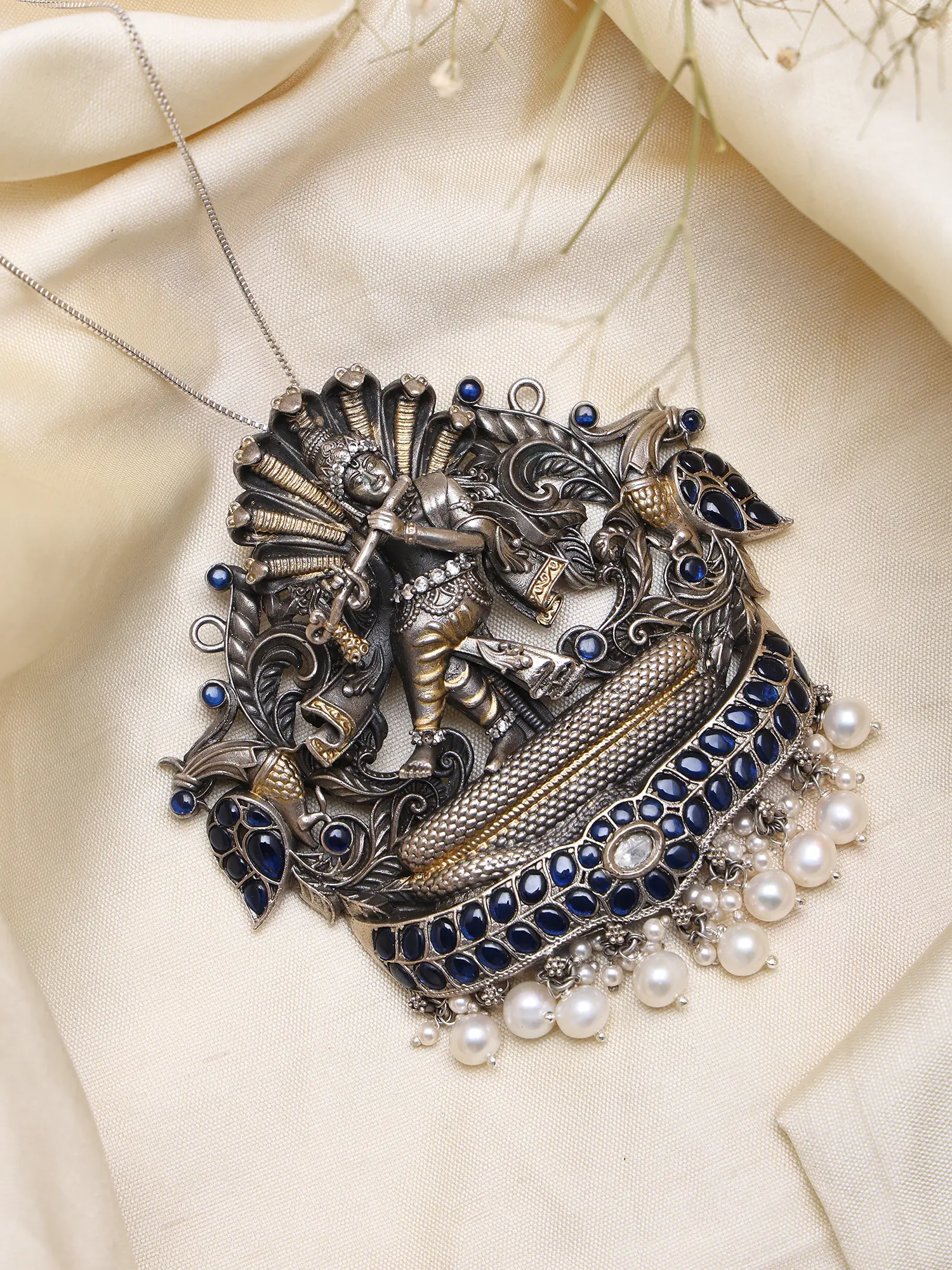 This composition draws inspiration from the beloved Hindu deity Krishna, specifically his legendary subjugation of the serpent Kaliya. This narrative symbolizes the triumph of righteousness over malevolence, a theme deeply embedded in spiritual traditions. Owning this pendant connects you to a rich cultural heritage and a story of divine intervention and cosmic balance.
