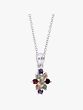 The pendant features a delightful mix of gemstones, each carefully selected for its brilliance and color. The precise arrangement creates a stunning visual effect, drawing the eye to the vibrant interplay of hues. These radiant gems include amethyst, peridot, and garnet, each contributing to the overall beauty of the pendant. The different colors enhance the floral motif, adding depth and character. Feel free to let your personal preference guide you - this pendant adds a pop of color to any outfit.
