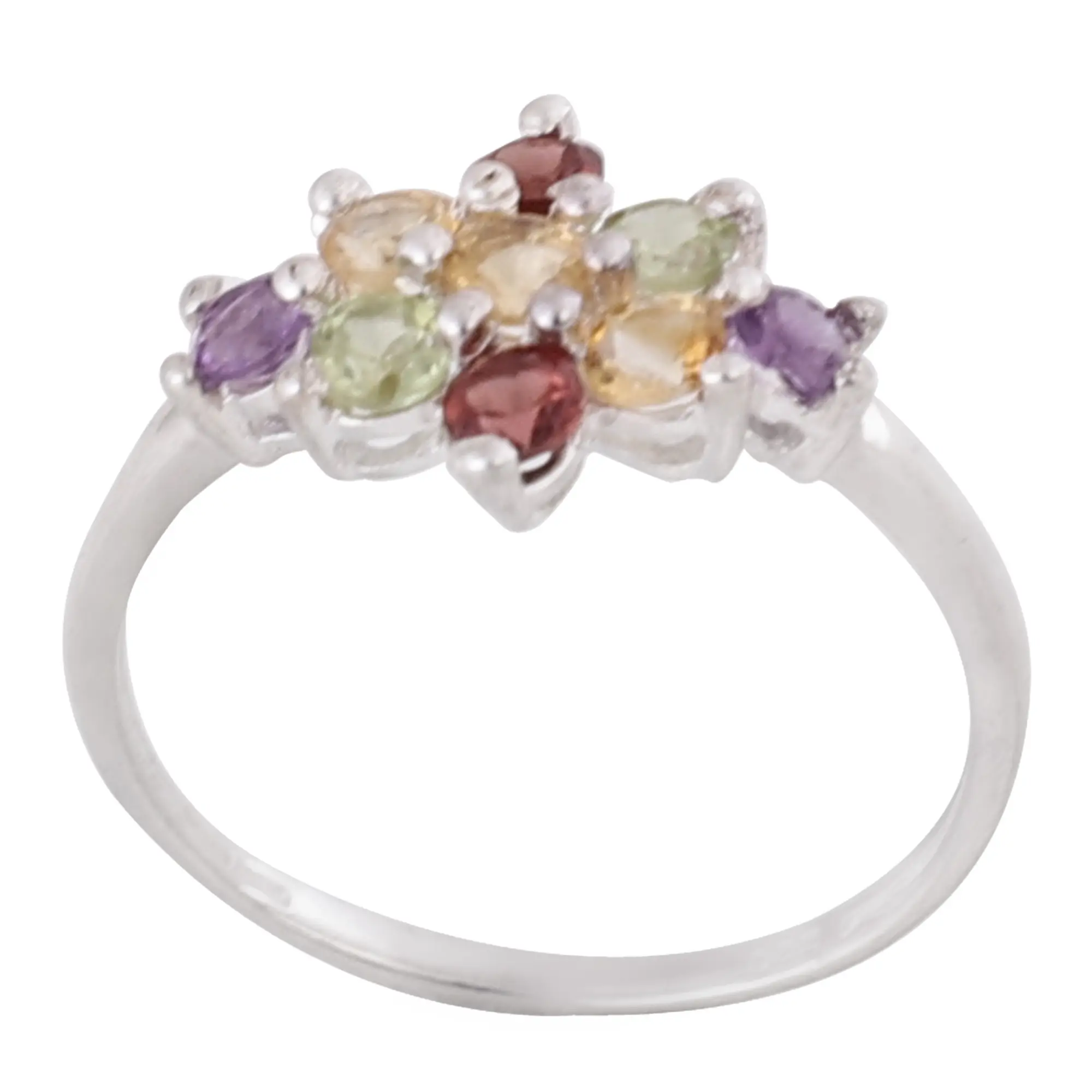 Elevate your elegance without a superfine sterling silver ring, adorned with a splendid array of multiple gemstones. Meticulously crafted, this ring seamlessly blends fine craftsmanship with the vibrant hues of assorted gemstones. The intricate design showcases a symphony of color, creating a dazzling and harmonious display.