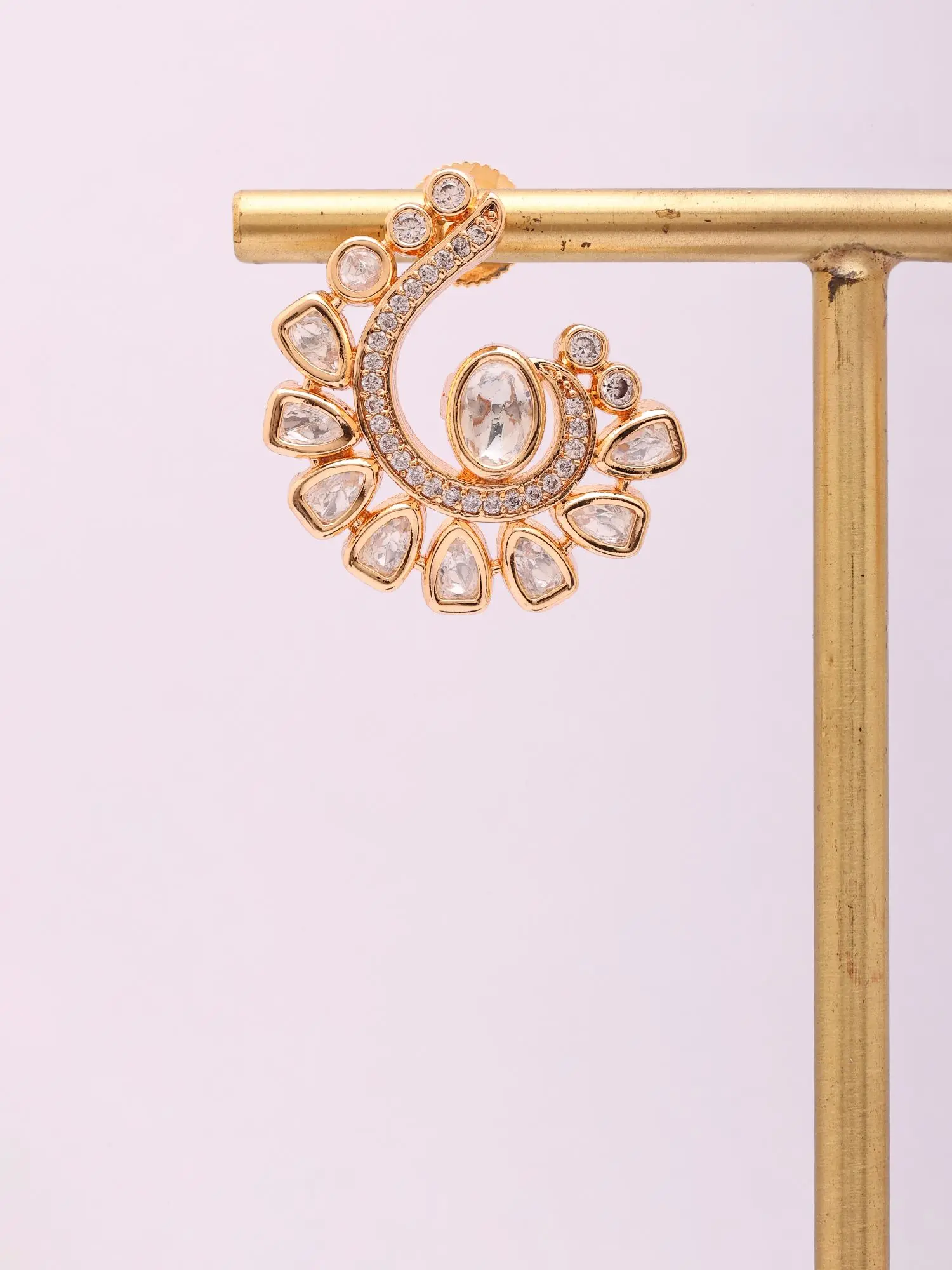 Crafted from lustrous brass, each piece is a labor of love, meticulously shaped and adorned by skilled artisans. The intricate swirl design is brought to life with a cascade of luminous stones, reflecting a dedication to quality and a passion for enduring beauty. You'll appreciate the substantial feel and the flawless finish, indicative of true artisanal craftsmanship.