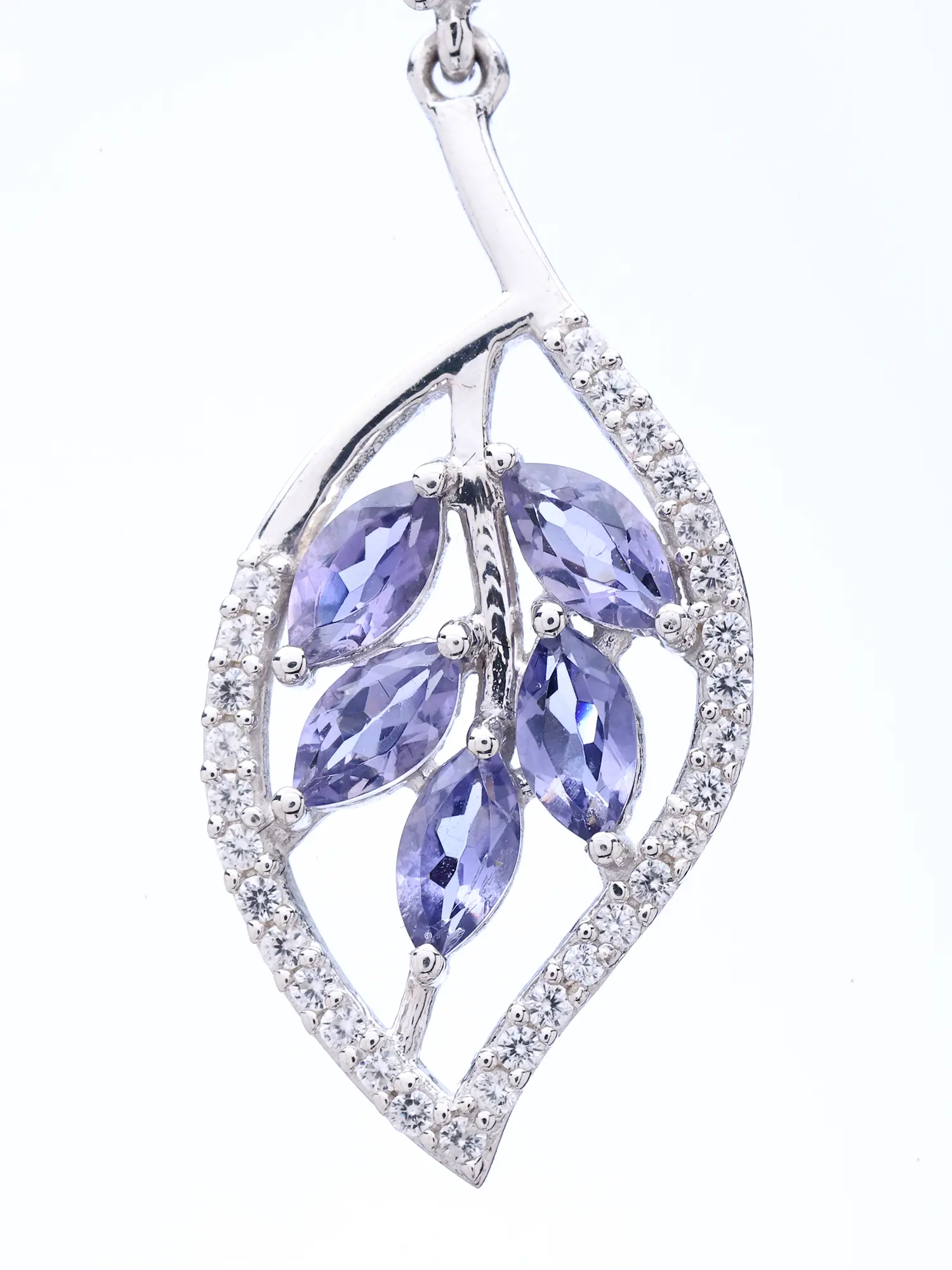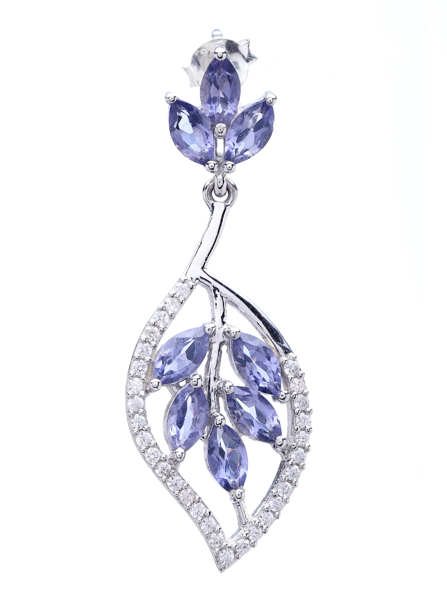 Tanzanite Leaf Vine Drop Earrings with Cubic Zirconia