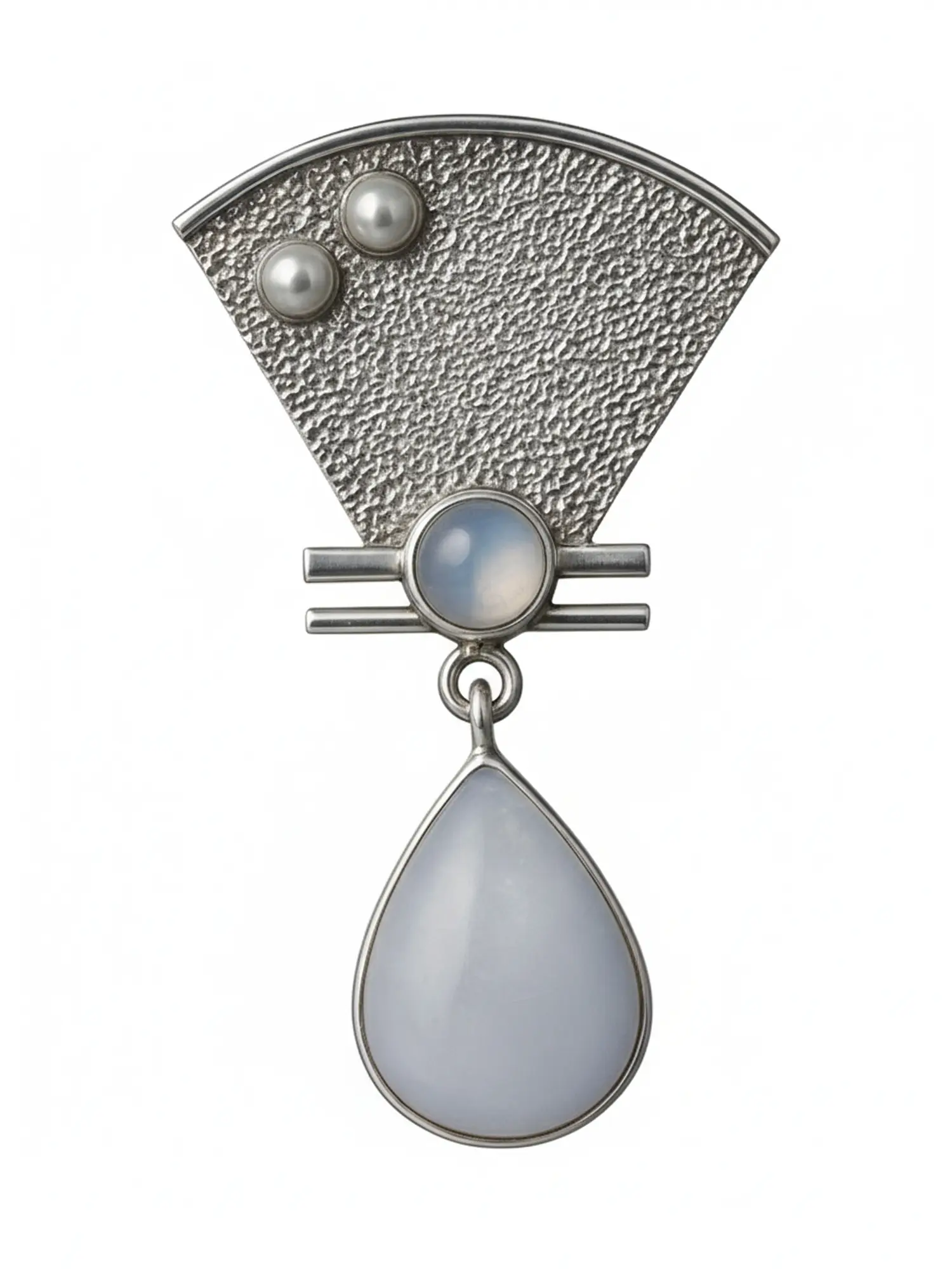 Exotic India presents this beautiful pendant embellished with Moonstone and resting on Sterling Silver for the many benefits that these two materials have. Moonstone has been in spiritual use for over 2,000 years in India to channel the mysterious qualities of the moon, specifically intuition, lucid dreams and the natural rhythms of Nature. Moonstone can be used by any individual wanting to dive into a deeper relationship with their own soul and learn what hidden secrets lie there waiting to be revealed. Silver contains and nurtures healthy energies it is given, thus, if attached to a necklace or mala, this beautiful pendant will rest above Anahata, the heart chakra, and serve to guard and protect your sacred emotions. Order our Tear-Drop Moonstone Embellished Pendant with Triangular Spacer now and be nourished by this wonderful symbol of compassion and intuition.
