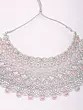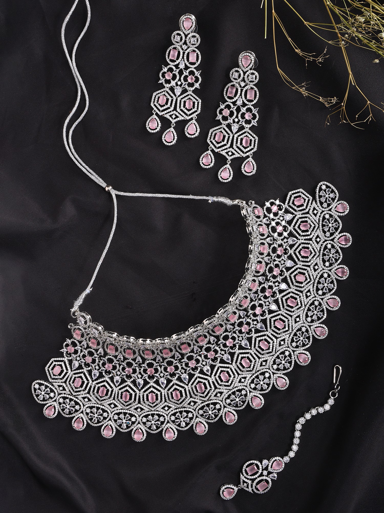 Statement Jewelry Set: Necklace, Earrings & Mangtika with Pink Stones