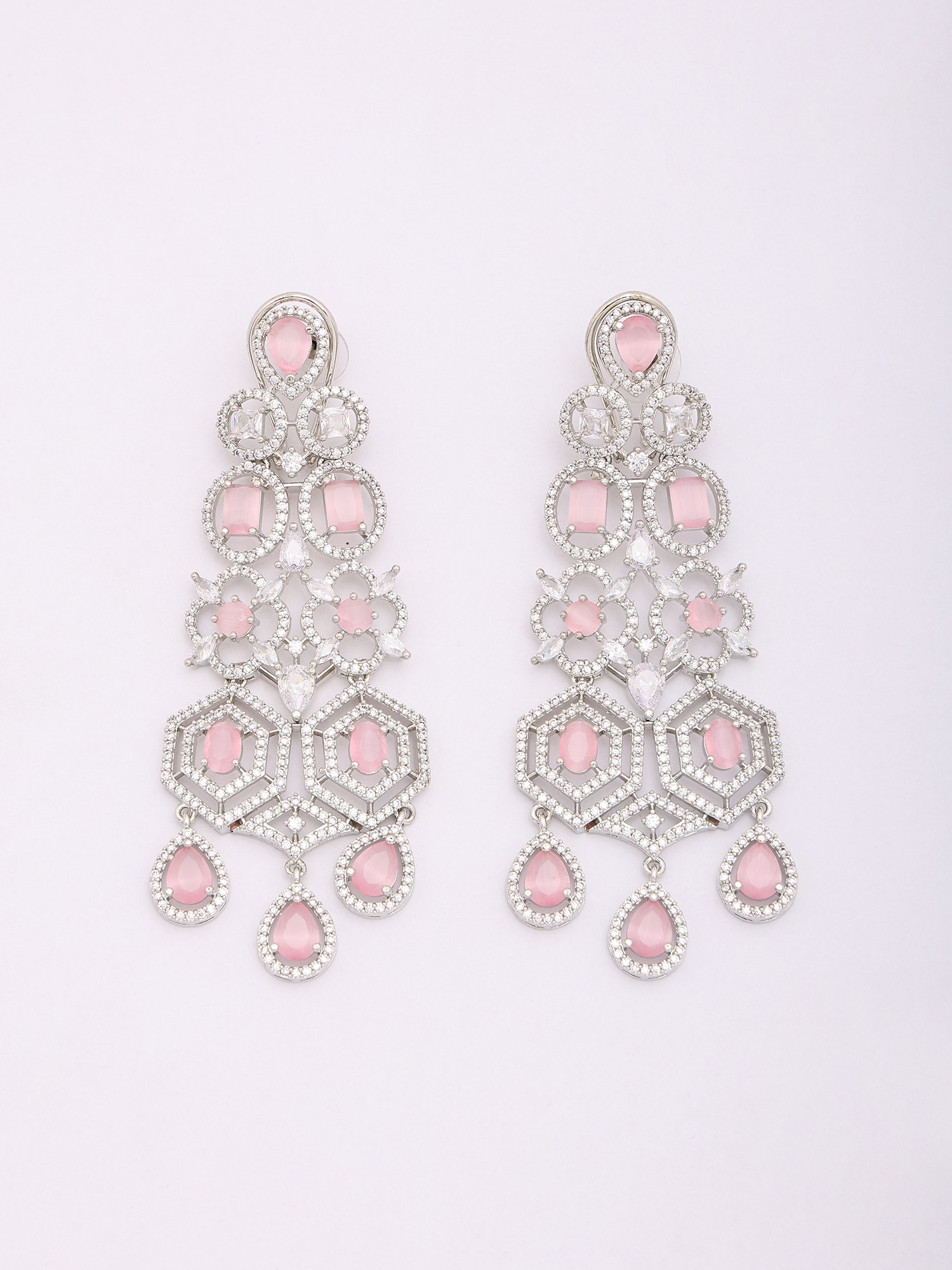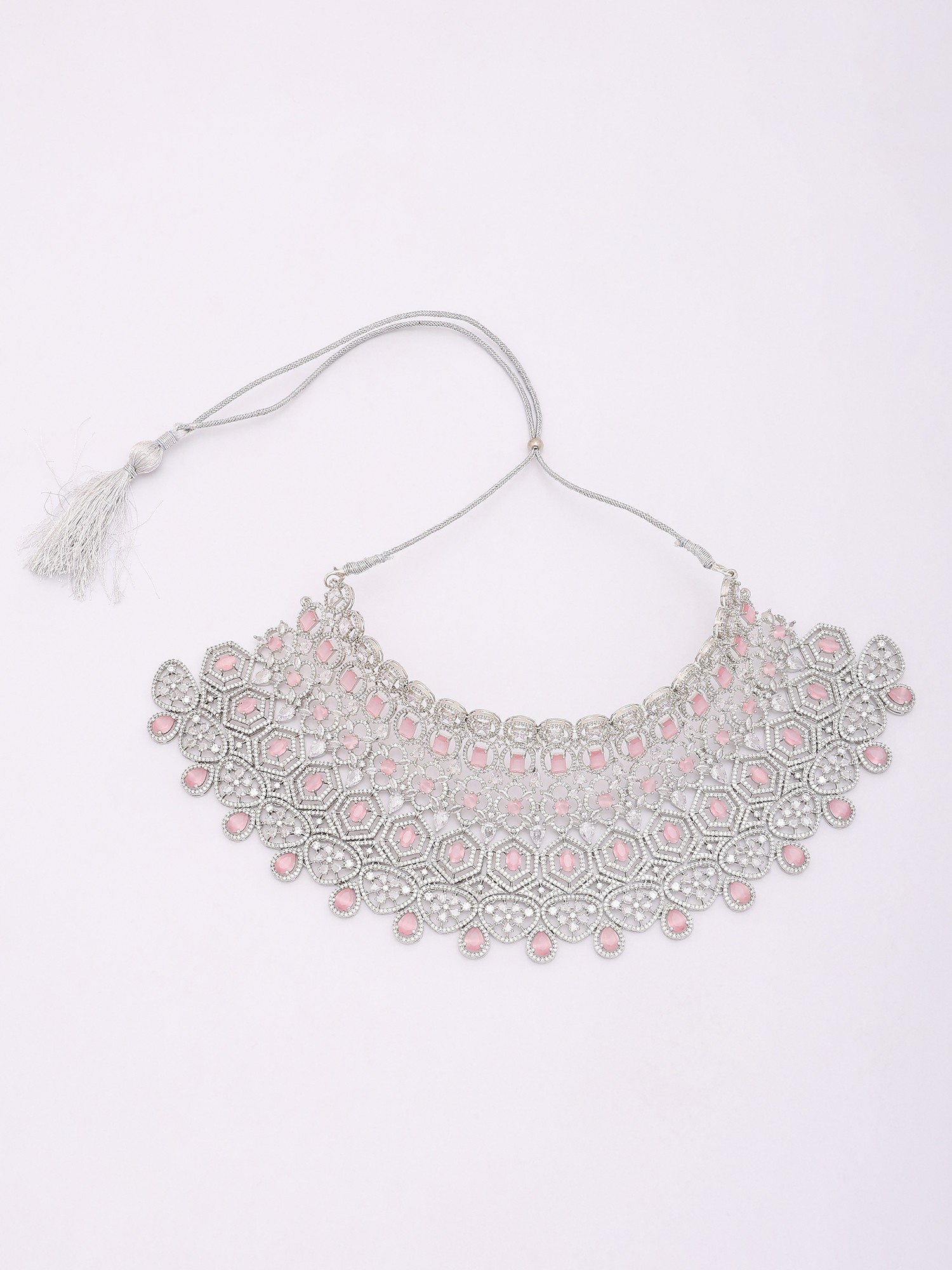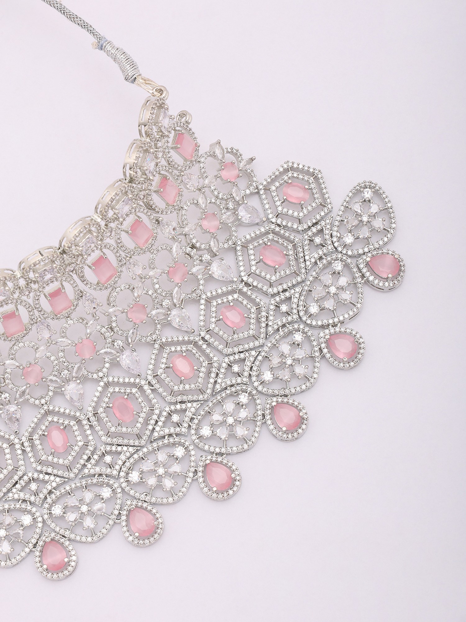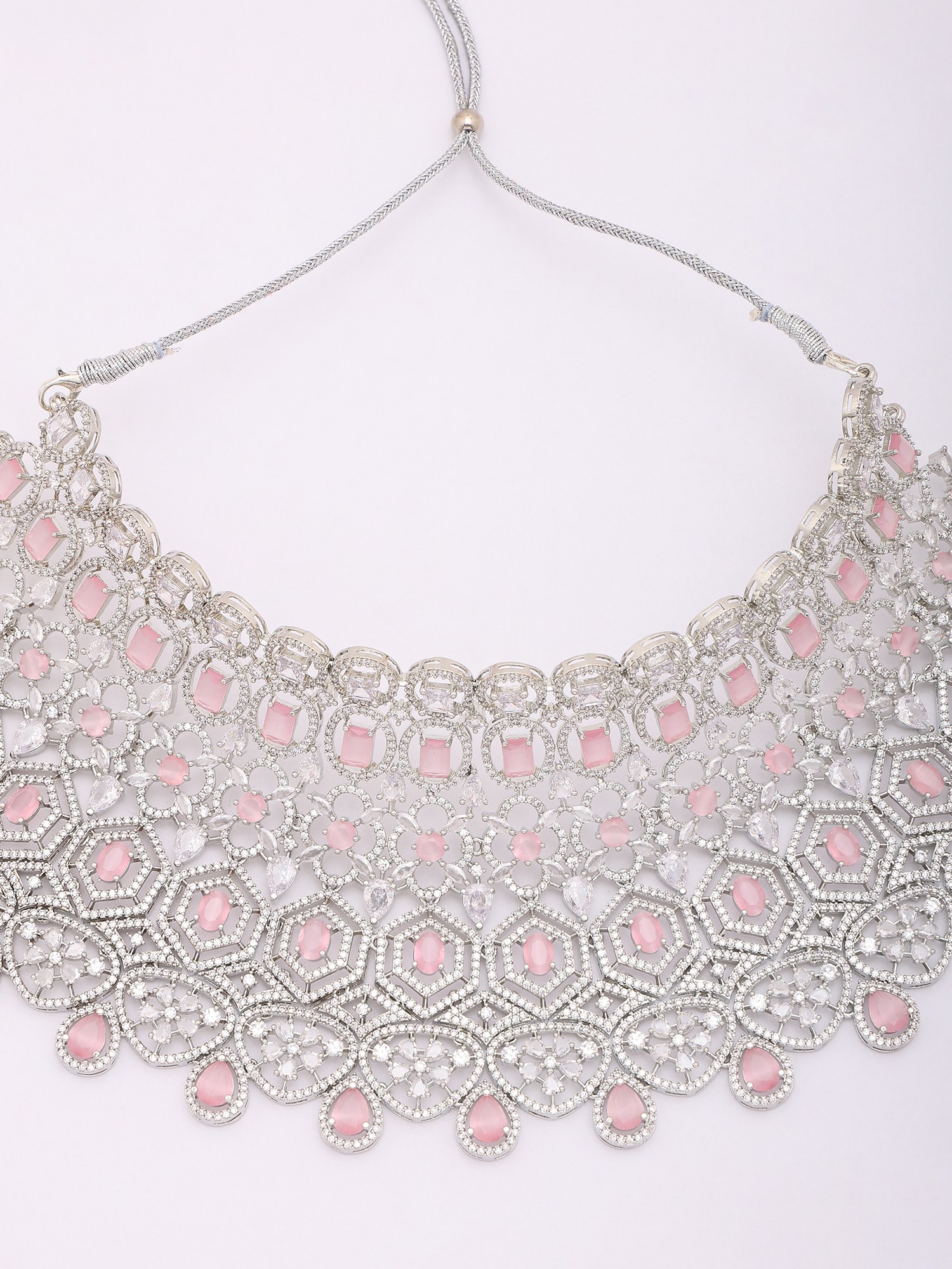 Sparkling Diamond Necklace Set with Blush Pink Stone Drop Earrings