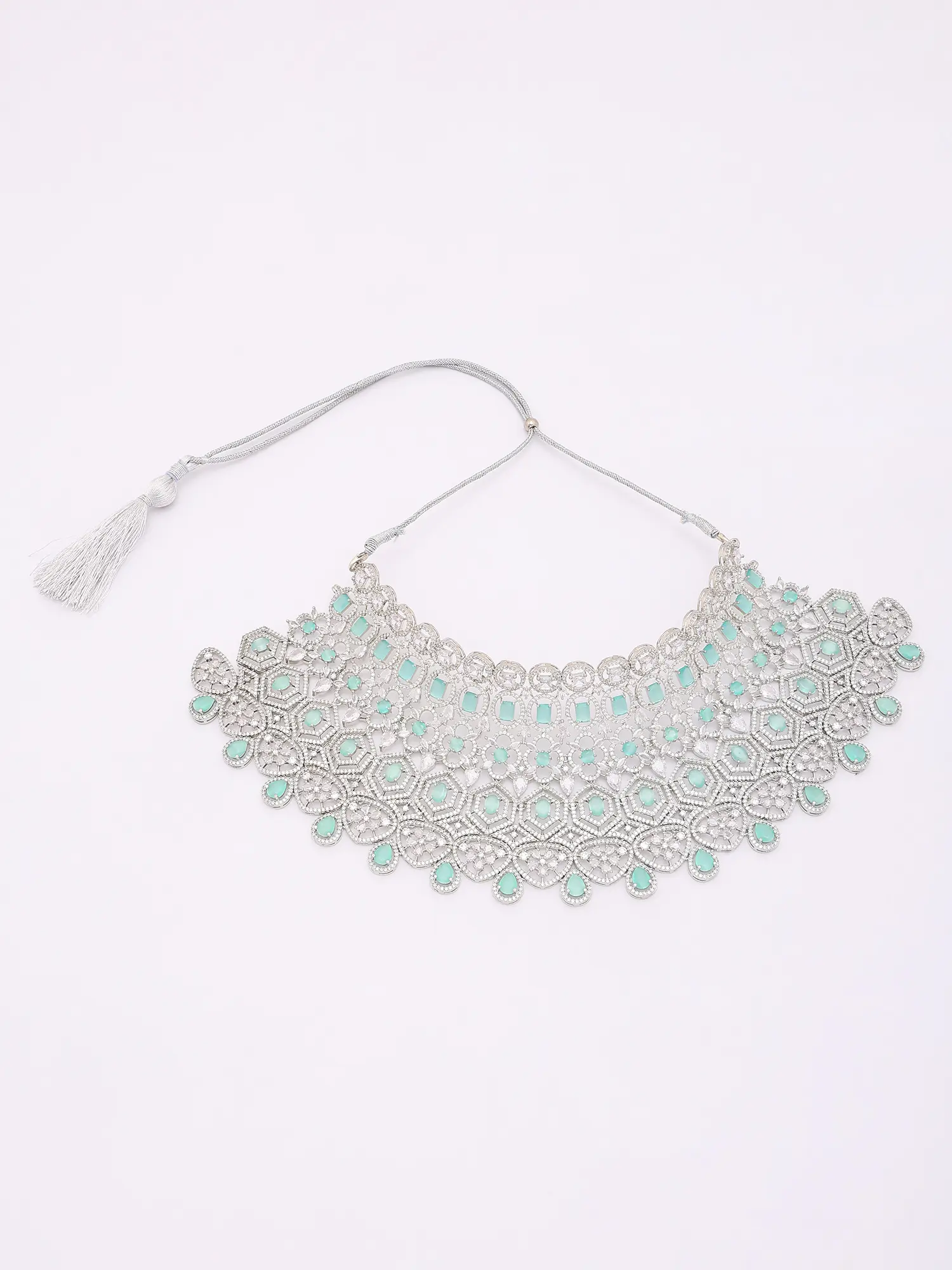 Bridal Necklace Set with Teardrop American Diamonds and Colorful Gemstones