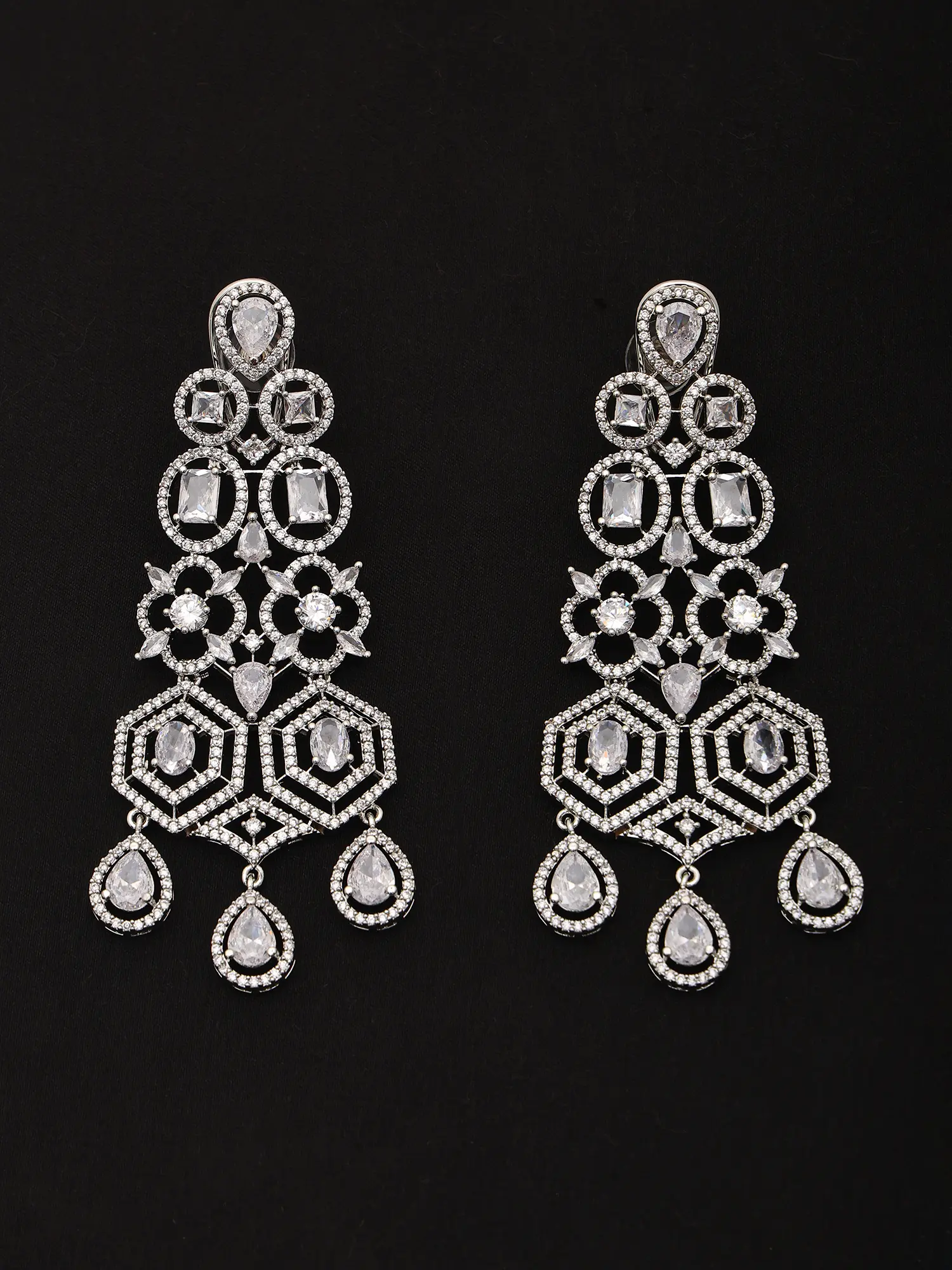 Features a striking teardrop design accented with brilliant American diamonds.